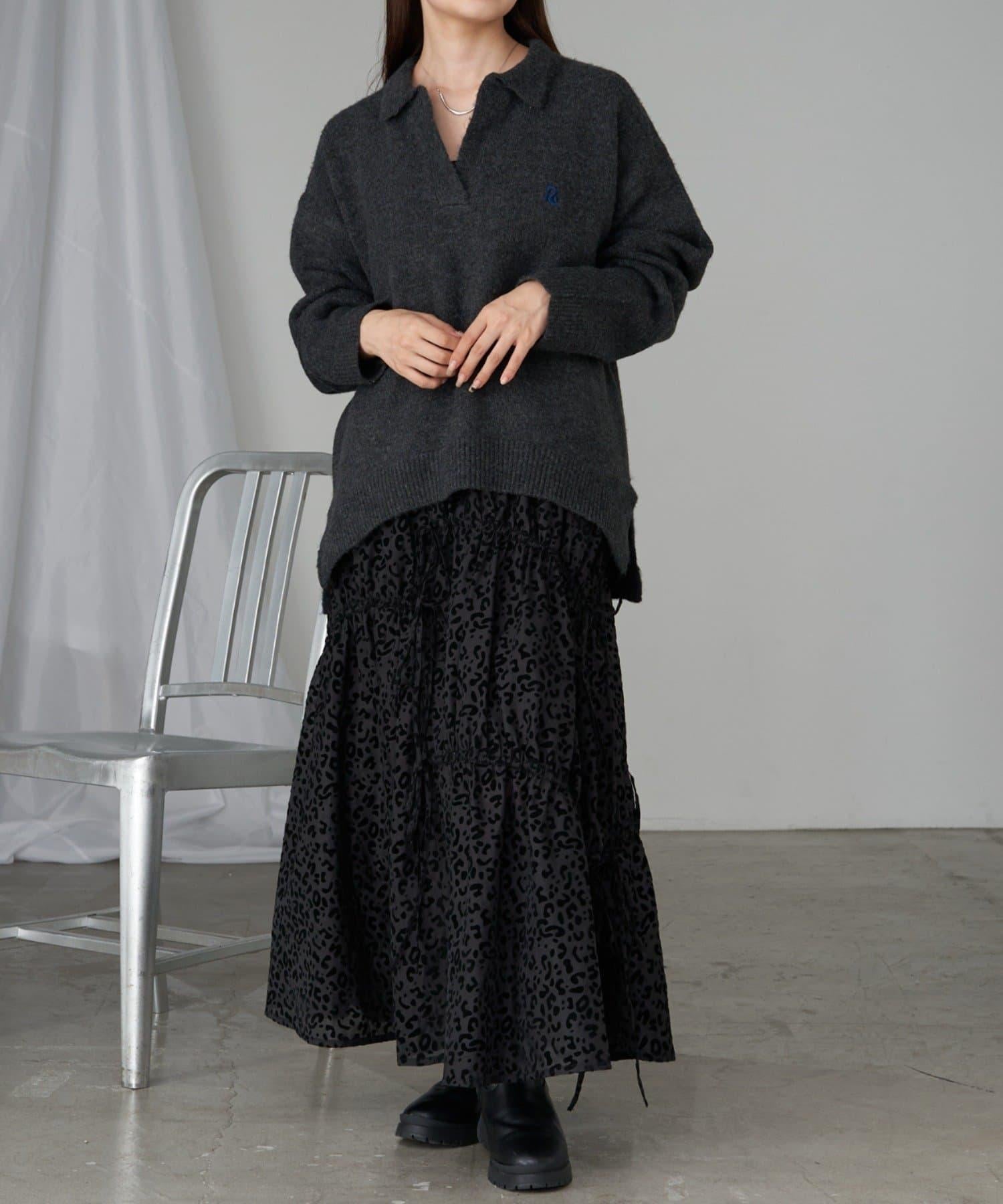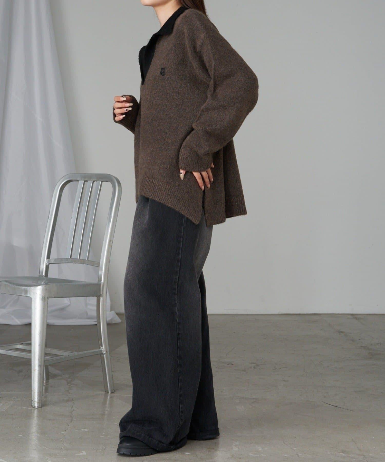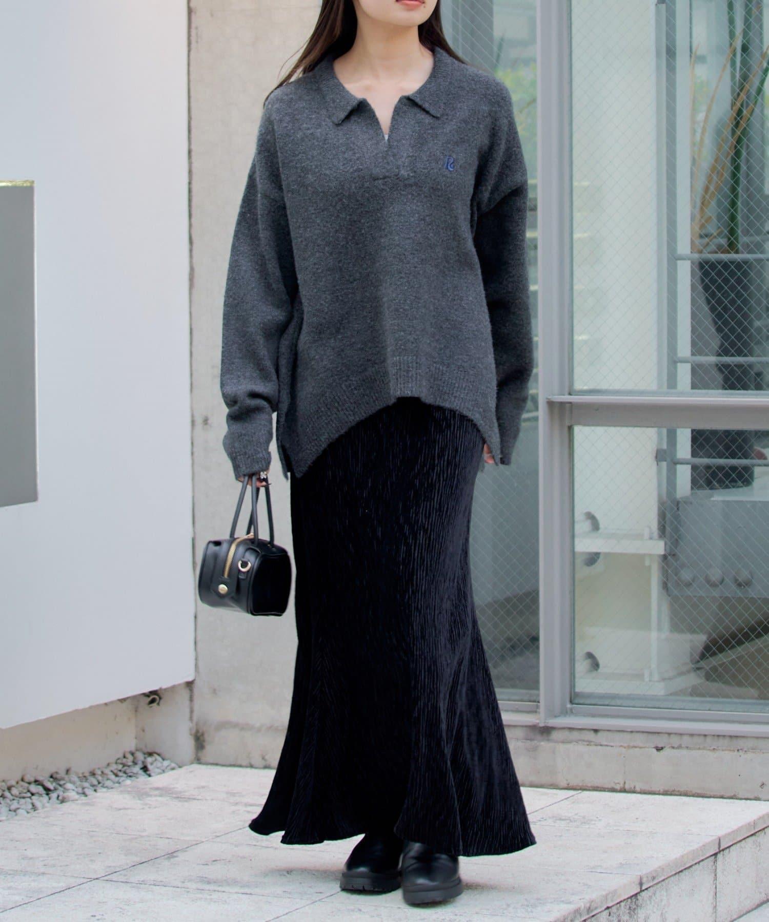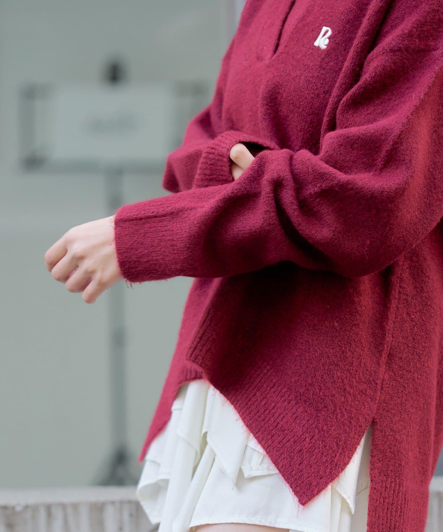 【RAY CASSIN】V領翻領刺繡針織衫 / 帶領針織衫