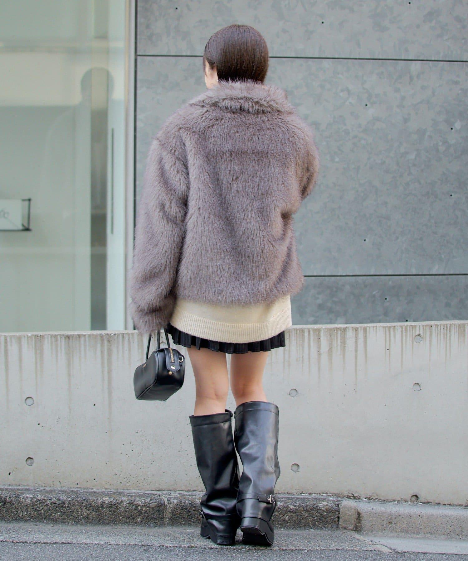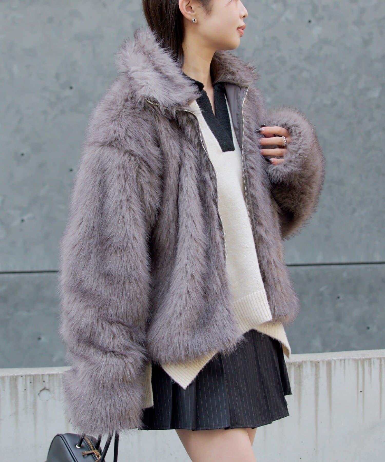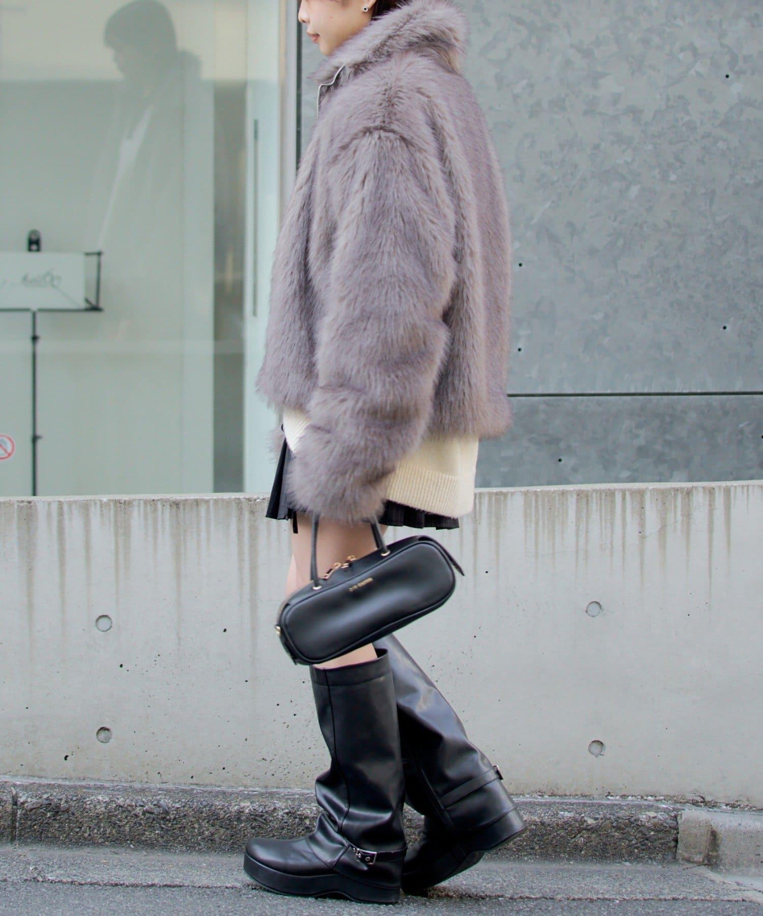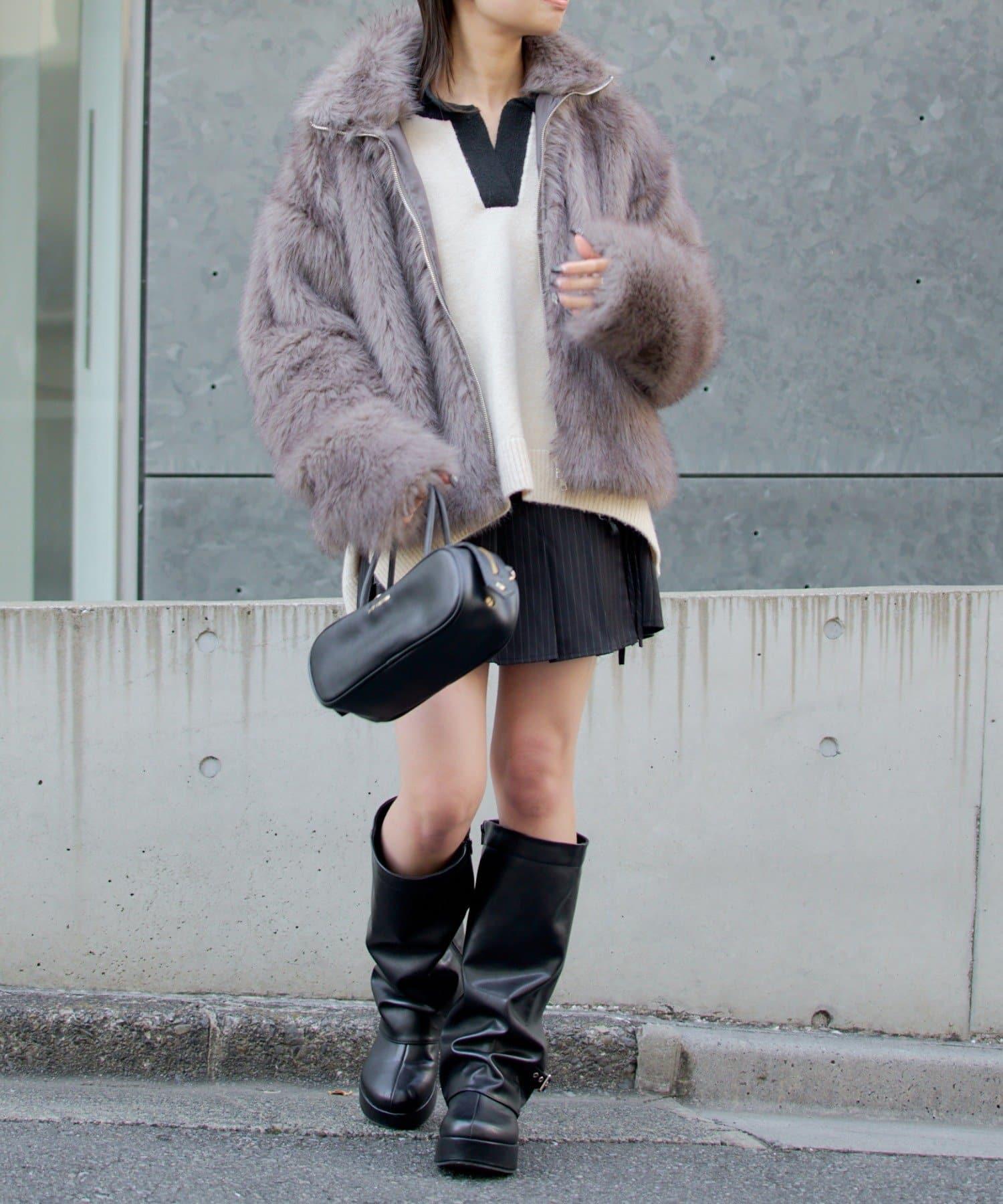 寬鬆的版型與迷你下裝搭配得恰到好處。
