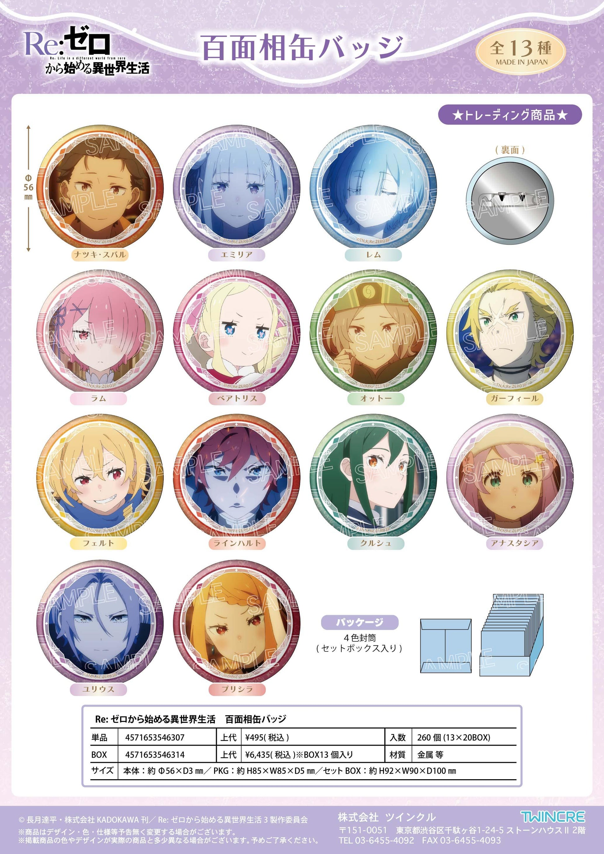 來自《Re:Zero kara Hajimeru Isekai Seikatsu》的一套 "Hyakumenso Can Badges"!