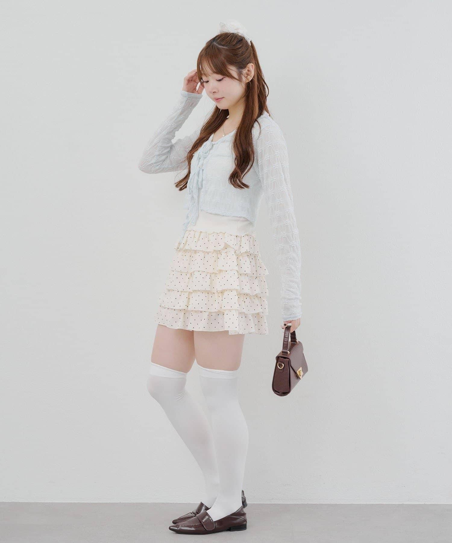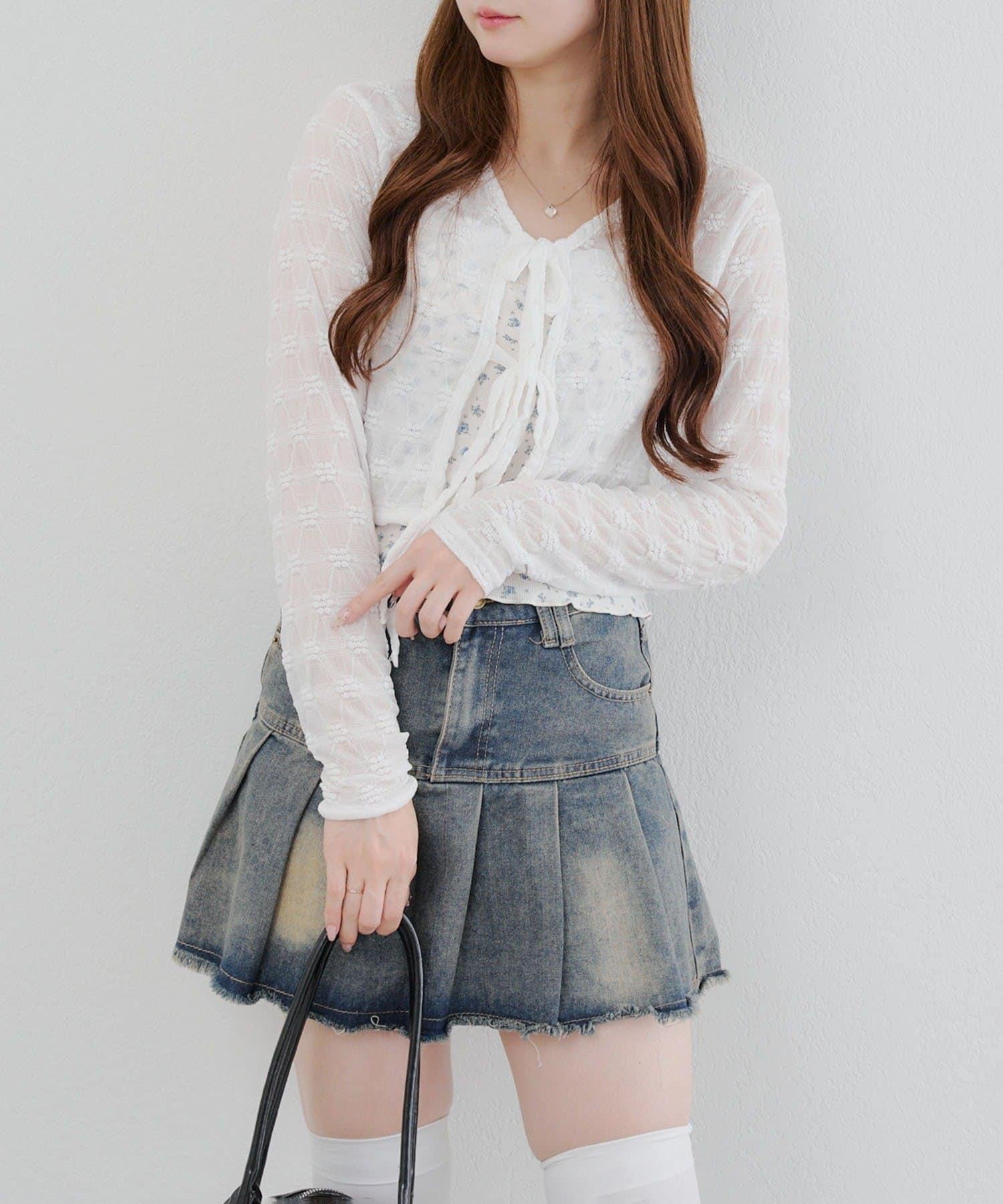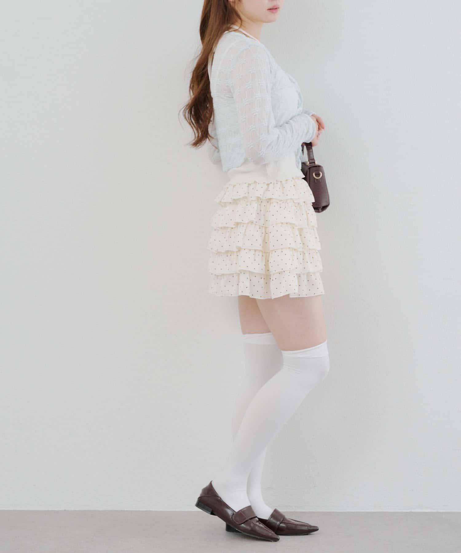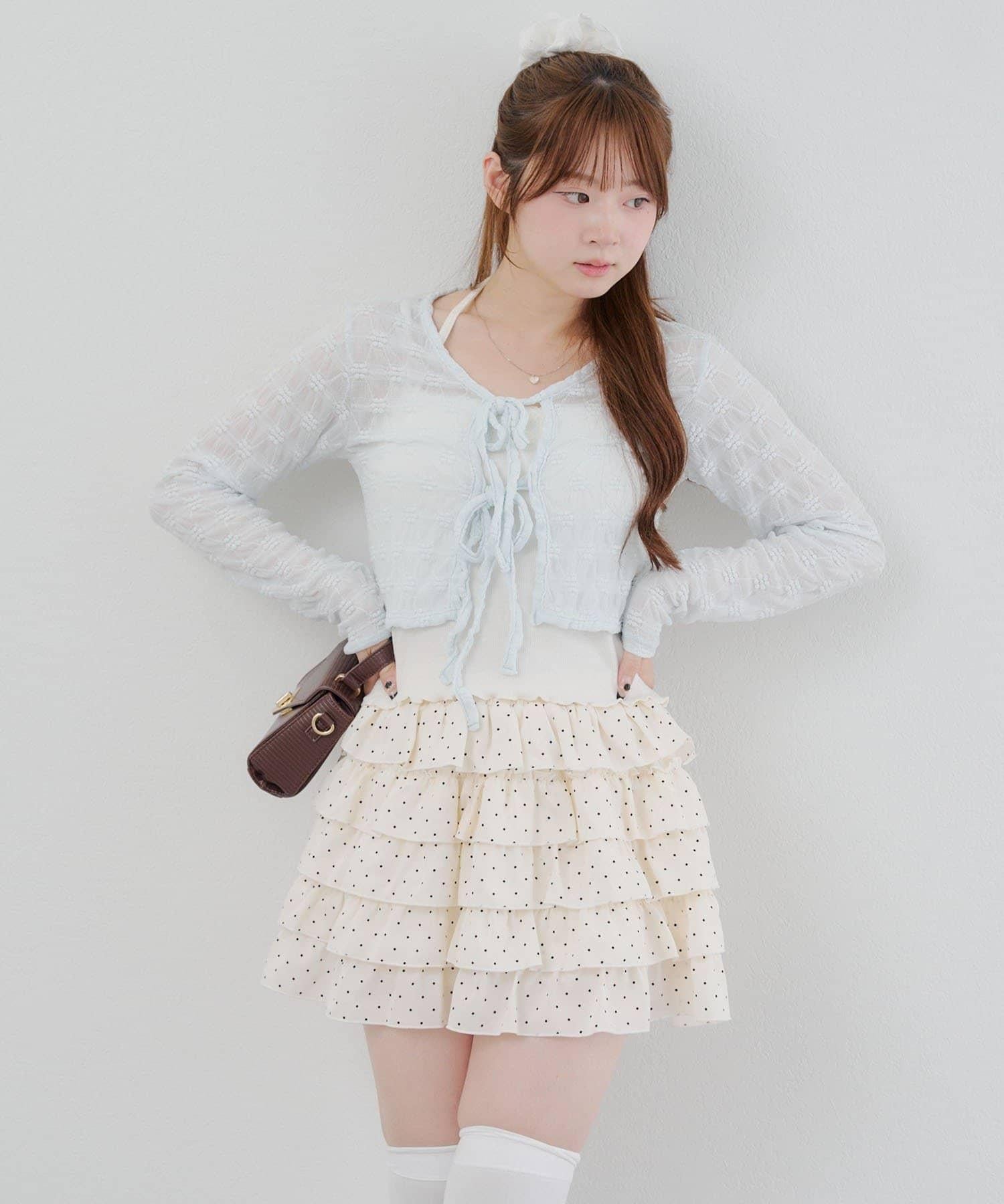 這款單品給人一種少女感,建議搭配牛仔短褲,打造韓式搭配造型。