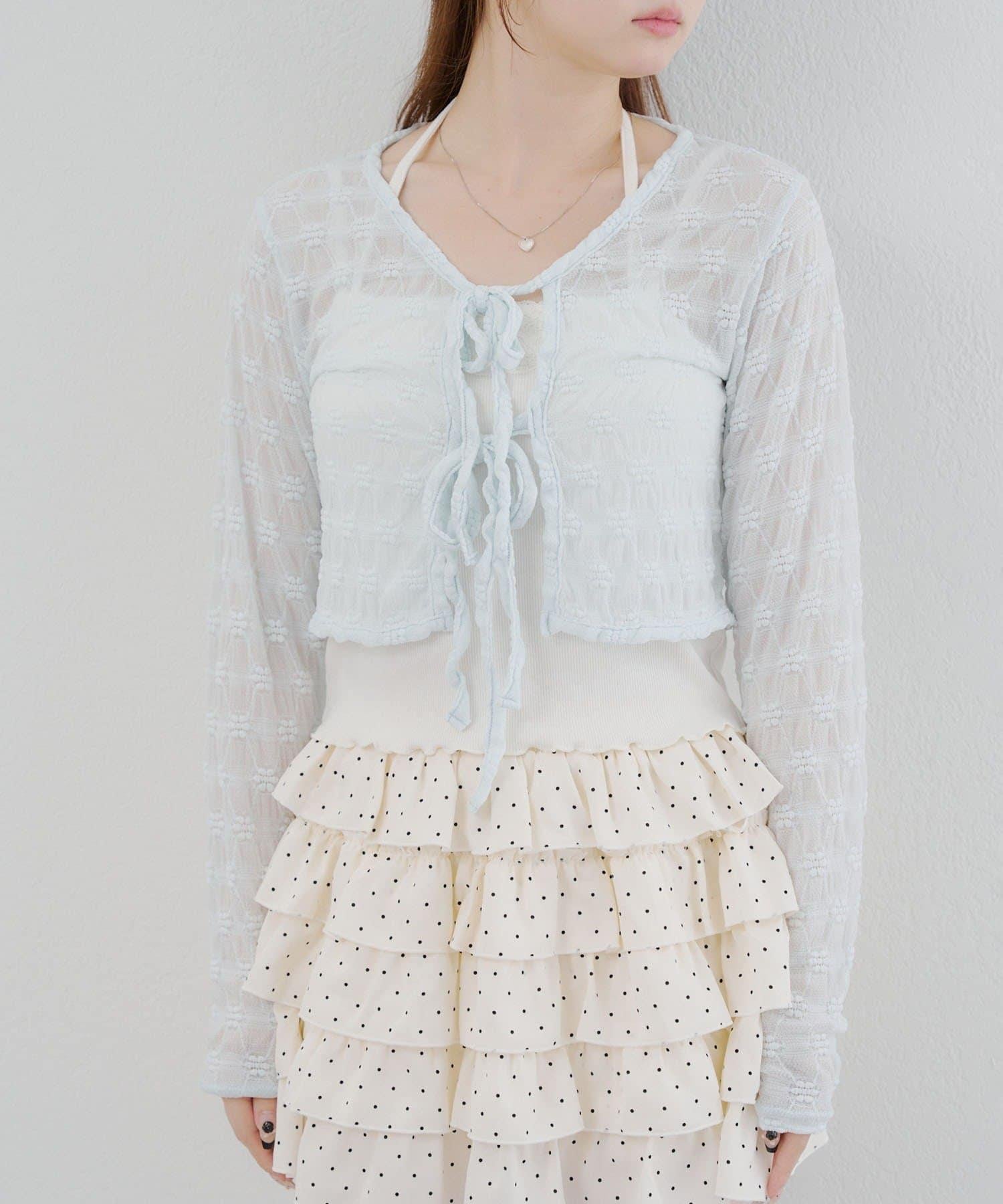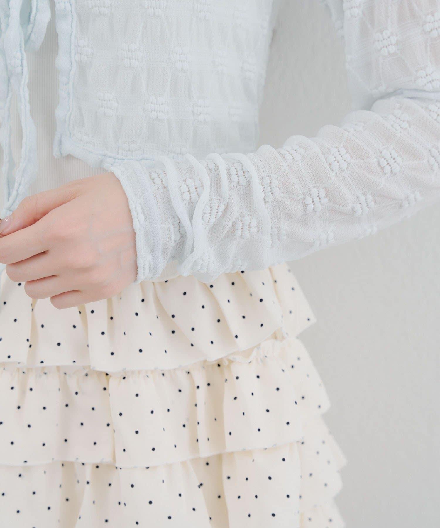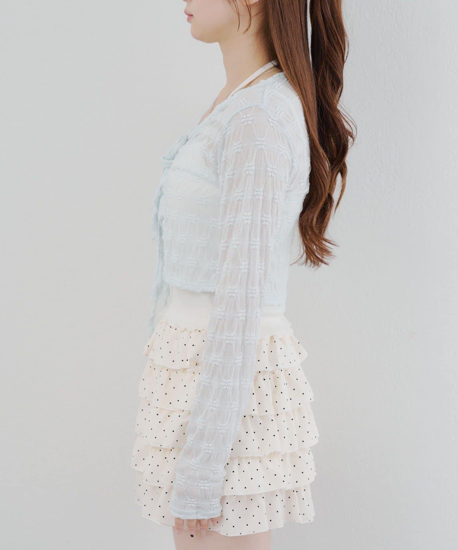 本季流行的 "蕾絲 "單品中的新款開襟衫。