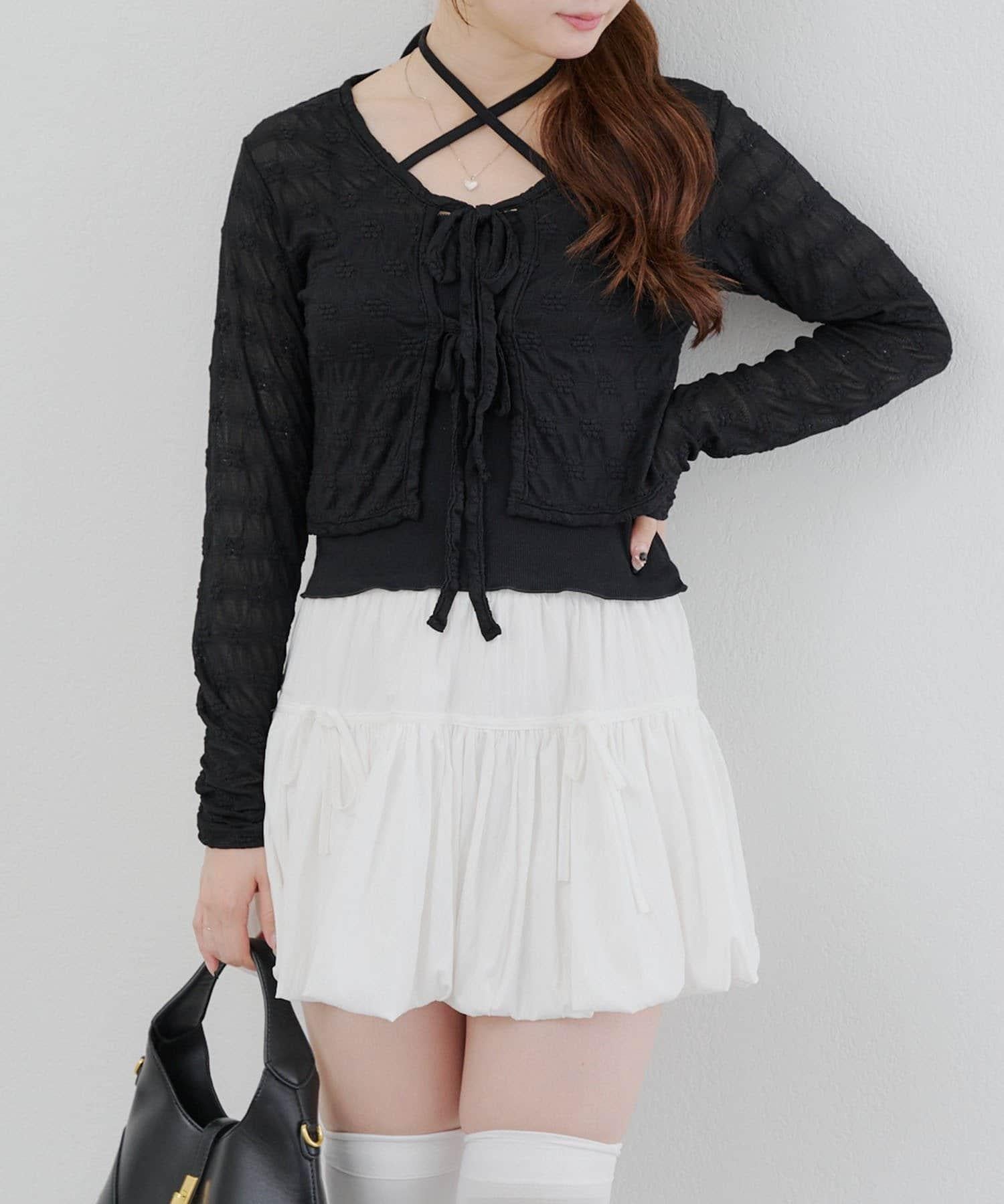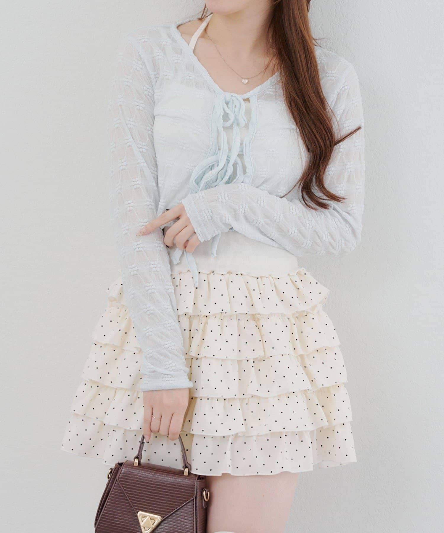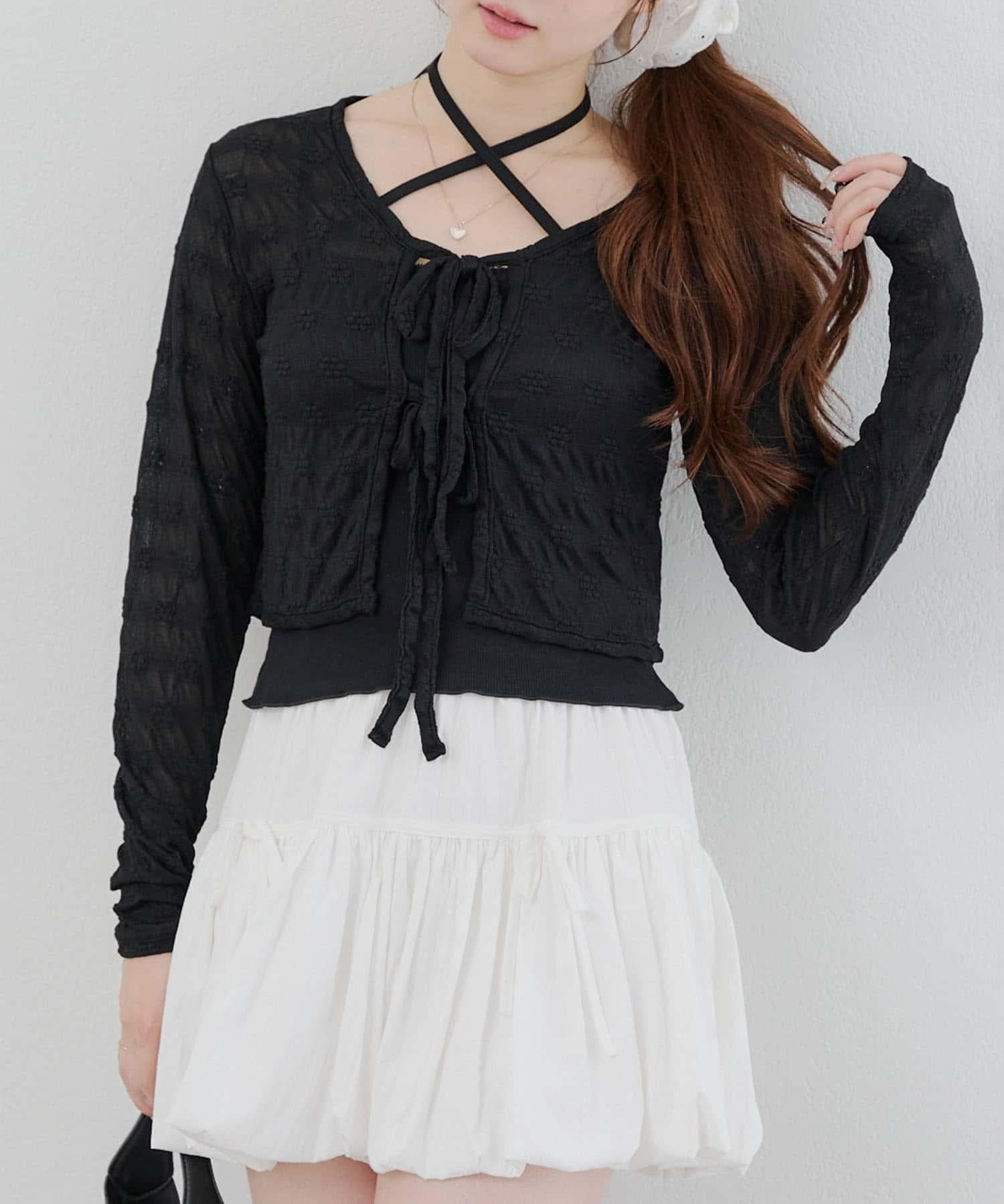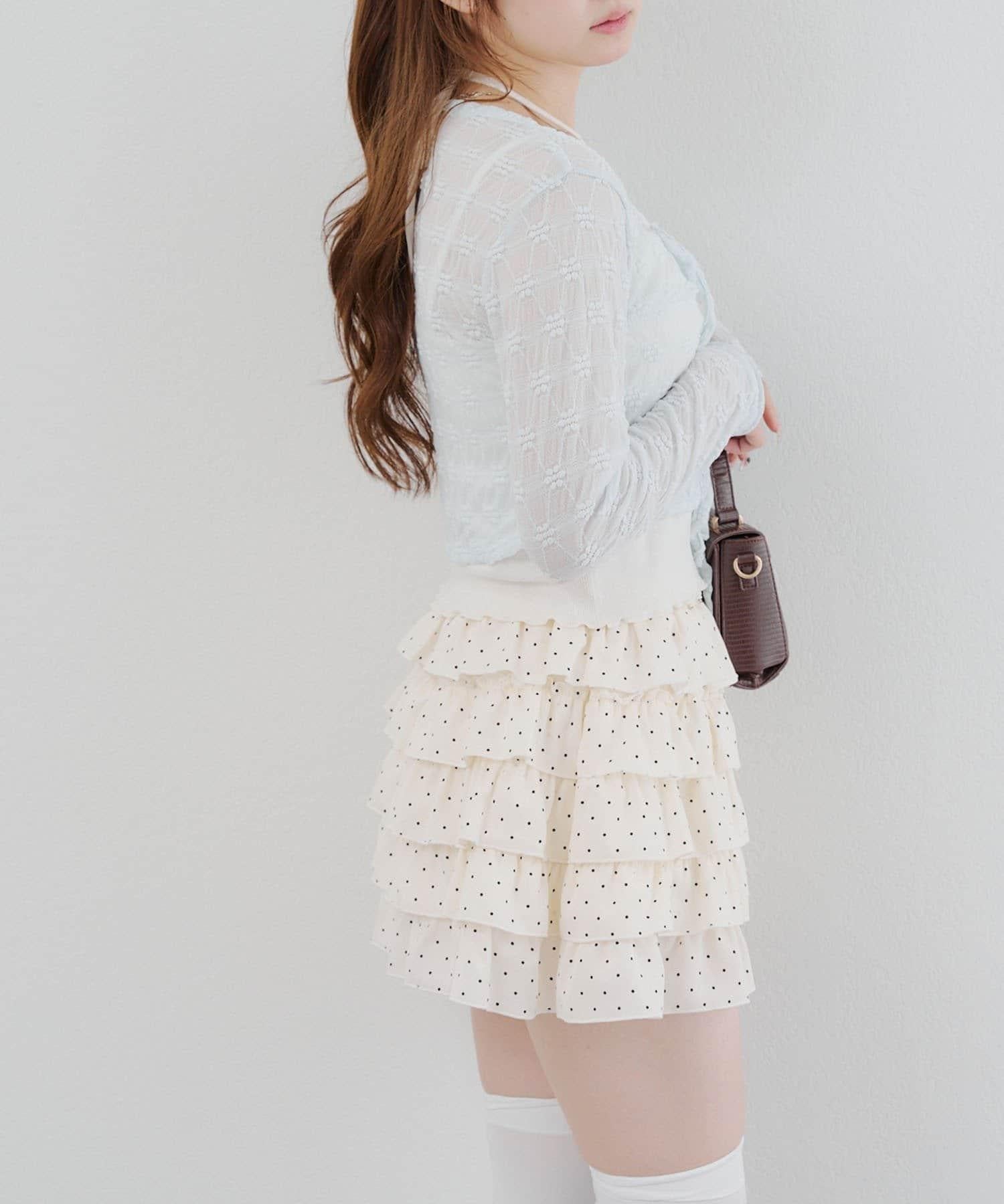 本季流行的 "蕾絲 "單品中的新款開襟衫。