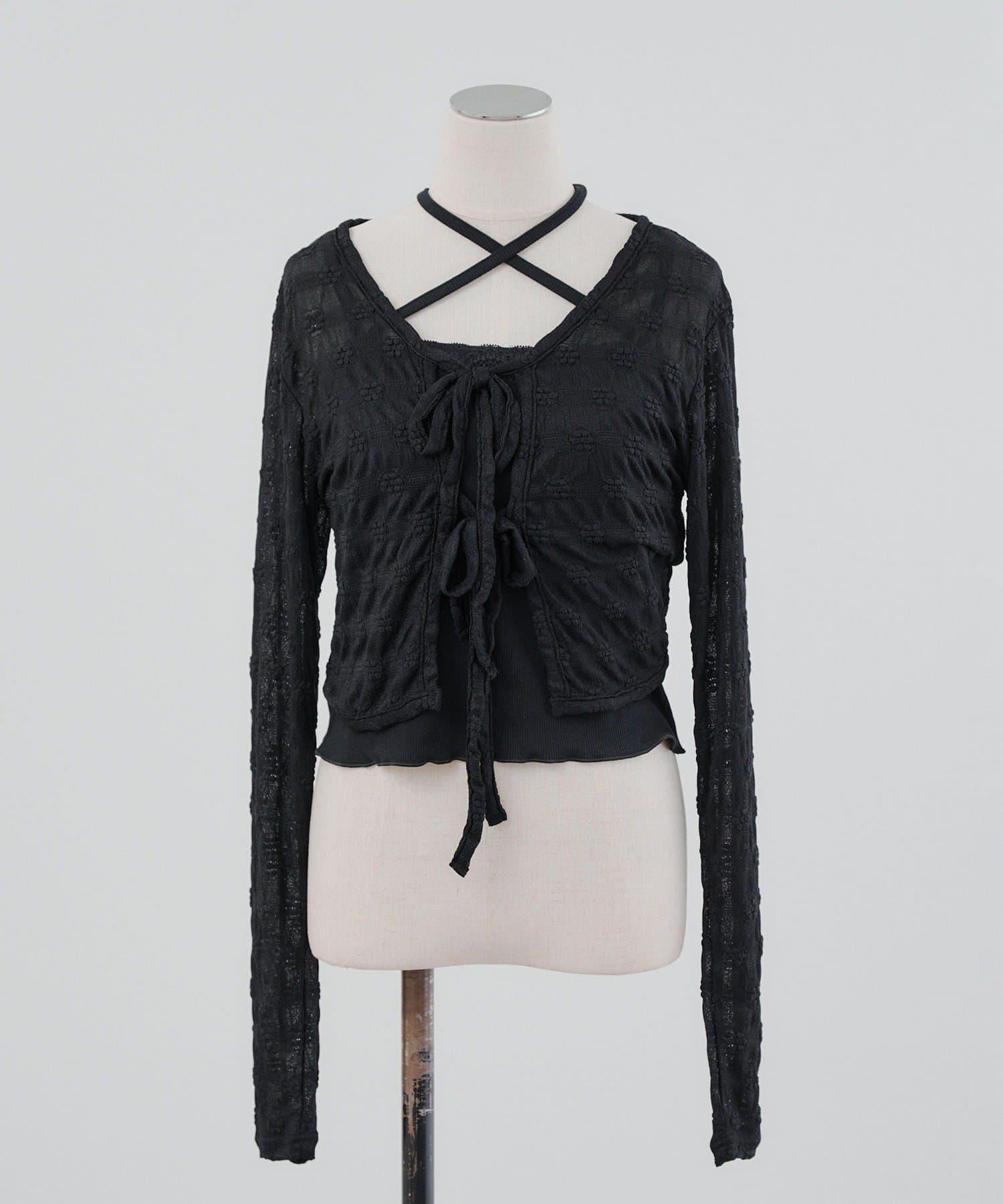 【@re.__mi23精選】蕾絲開衫+露肩背心套裝