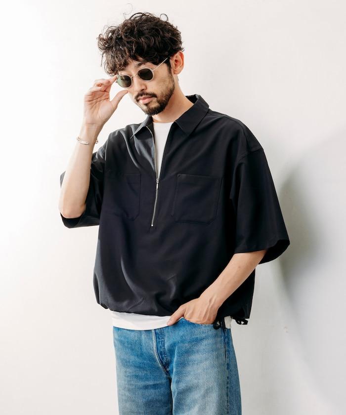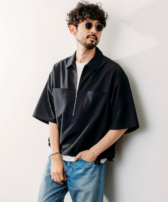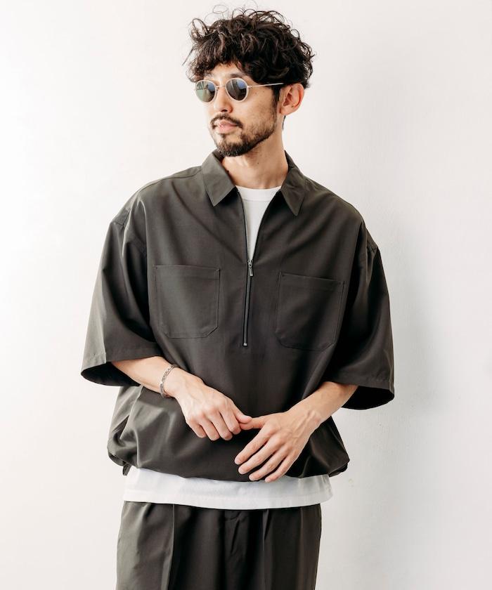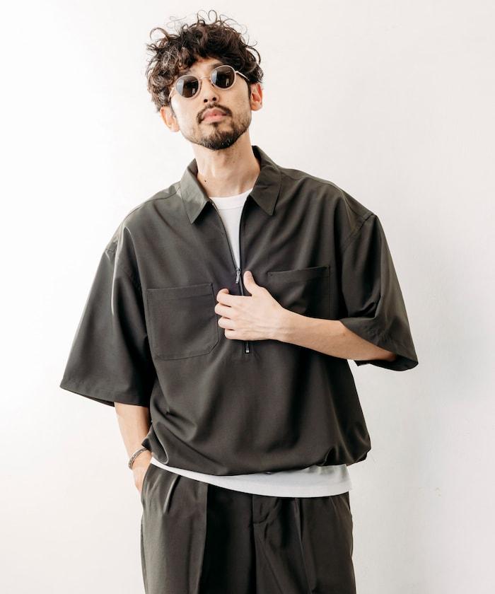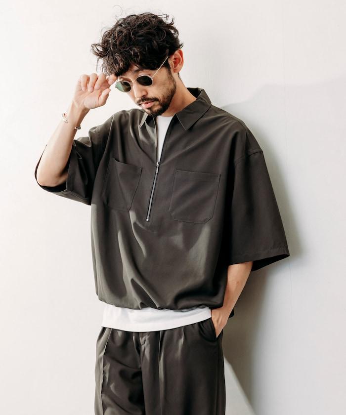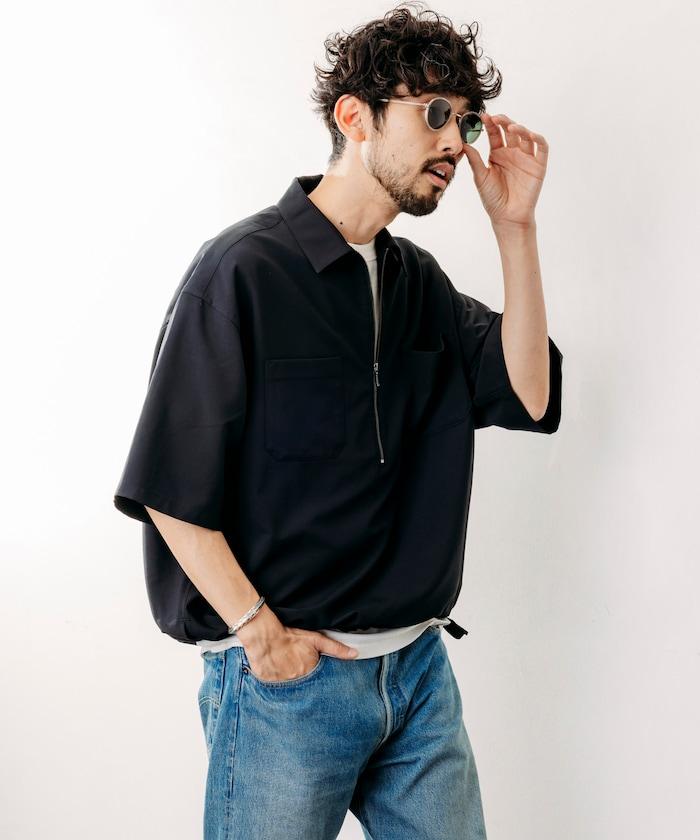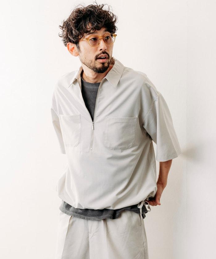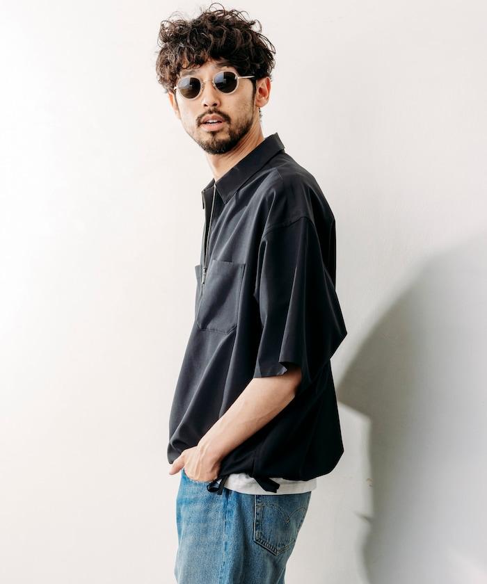 1007248900245: Reflax 功能性面料 寬鬆版型半拉鍊襯衫 短袖