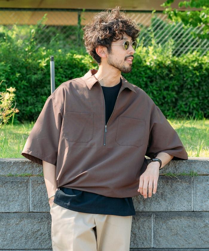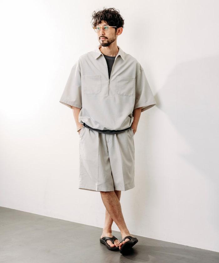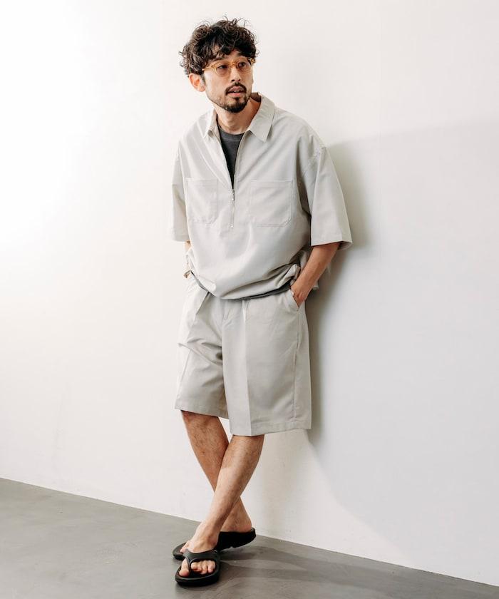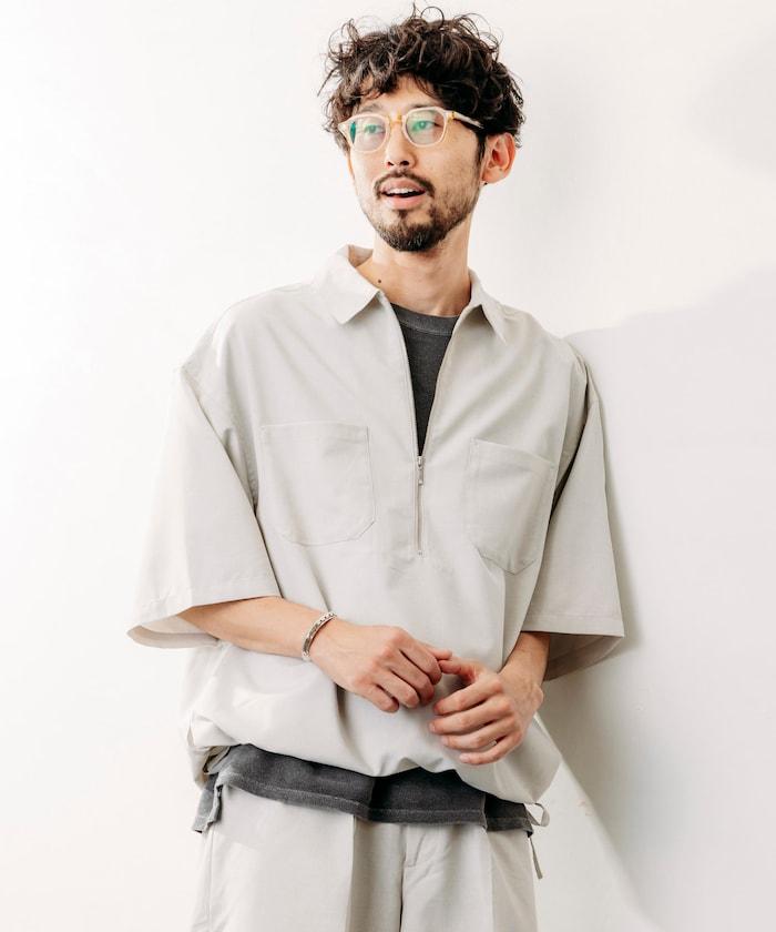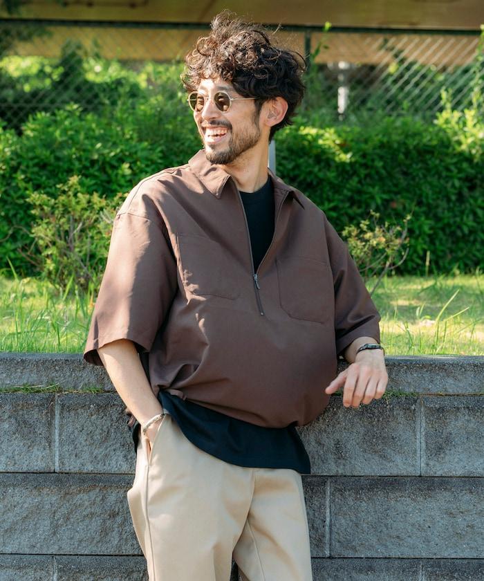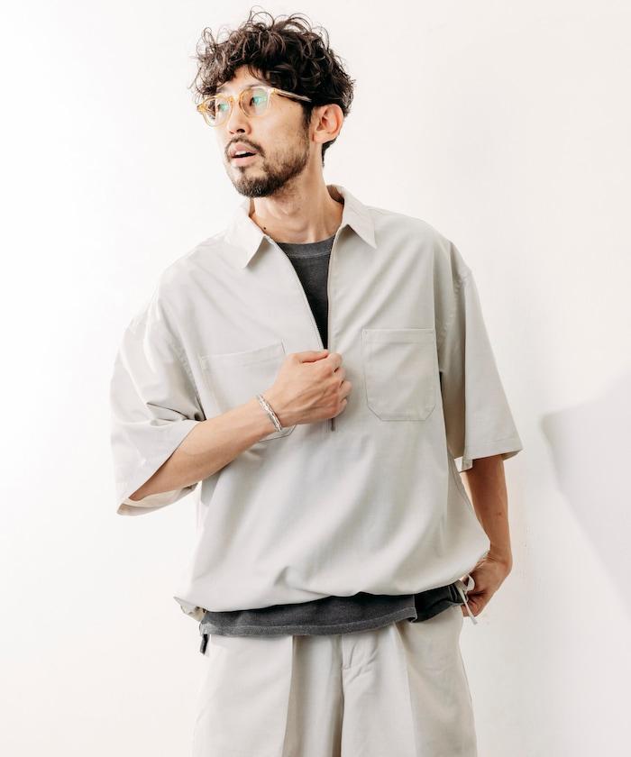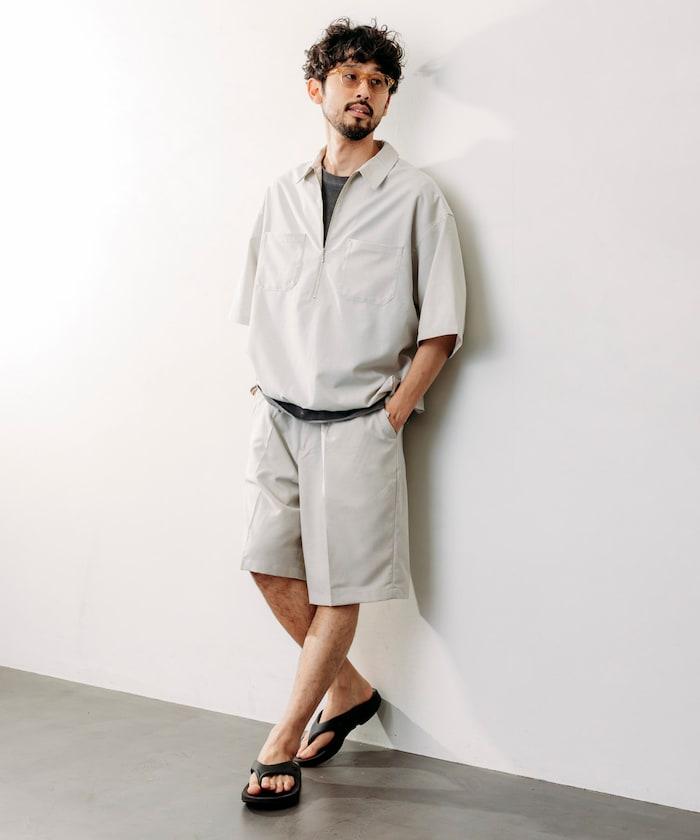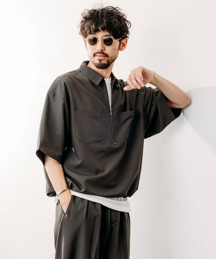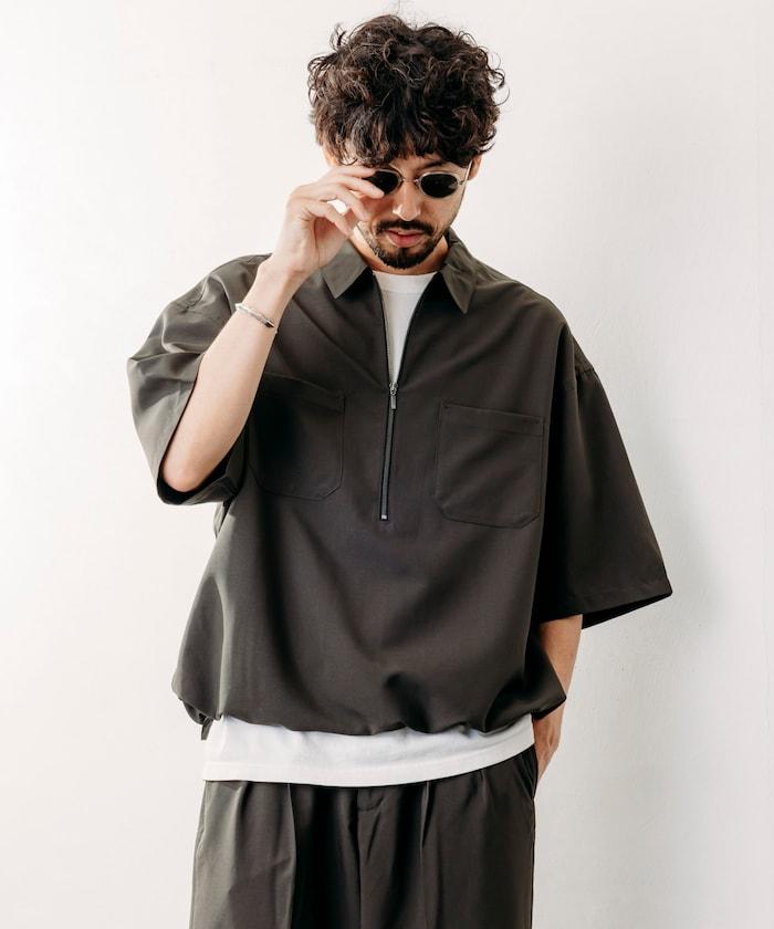 1007248900245: Reflax 功能性面料 寬鬆版型半拉鍊襯衫 短袖