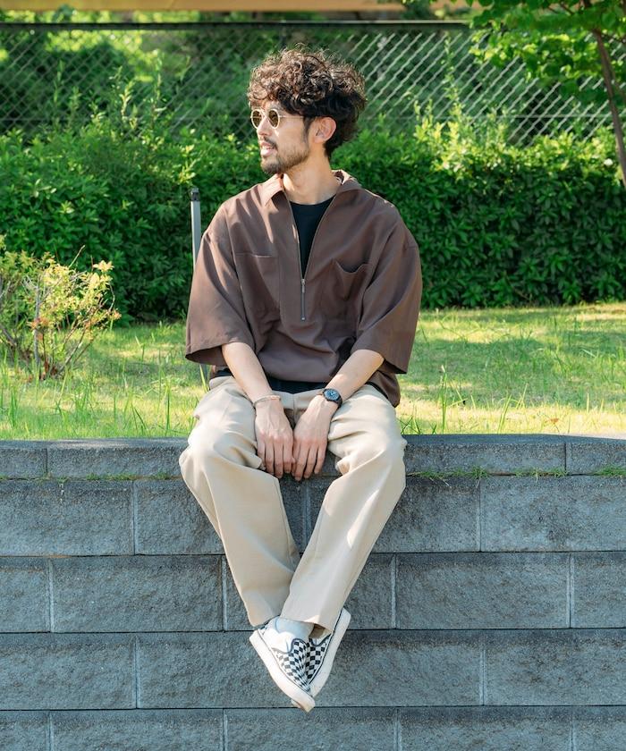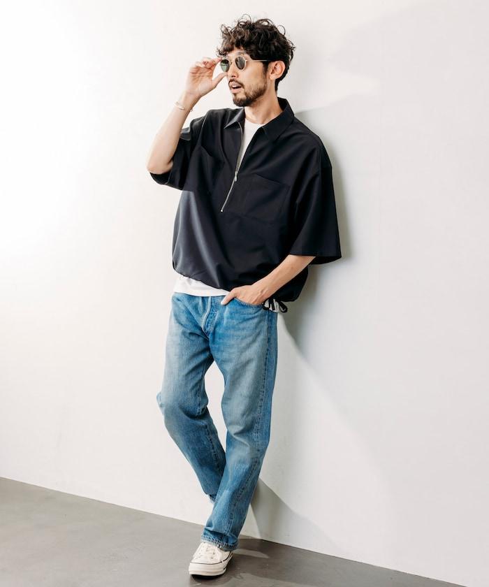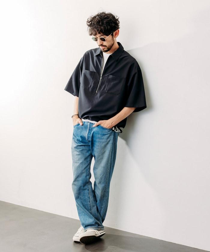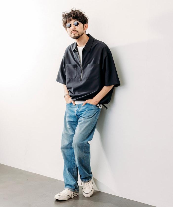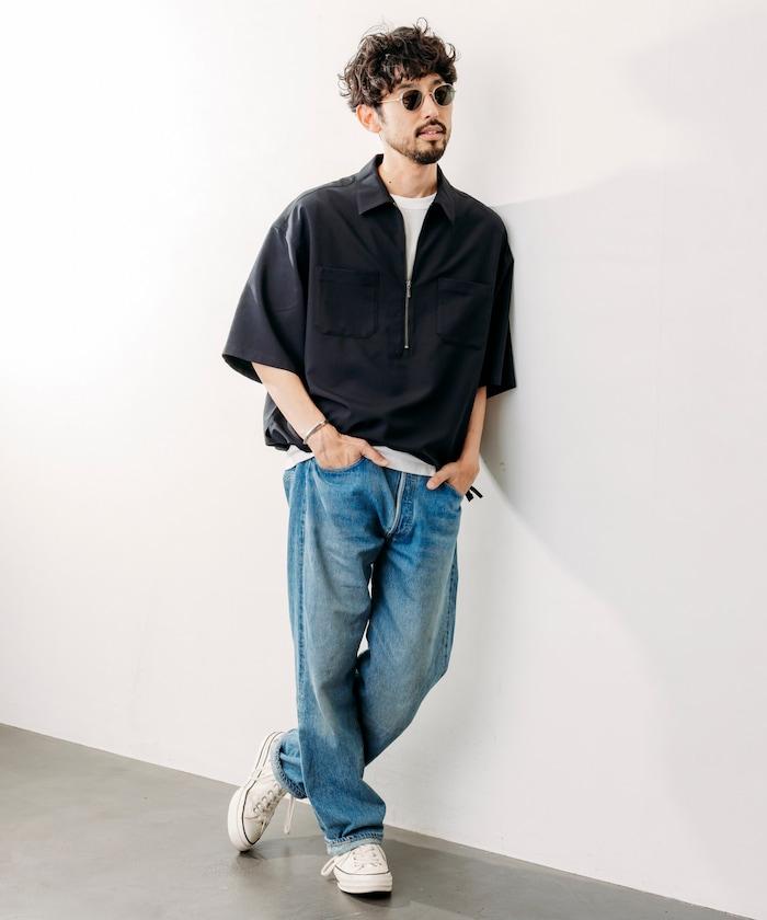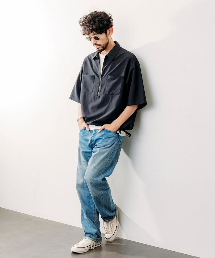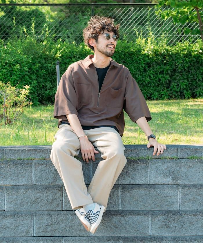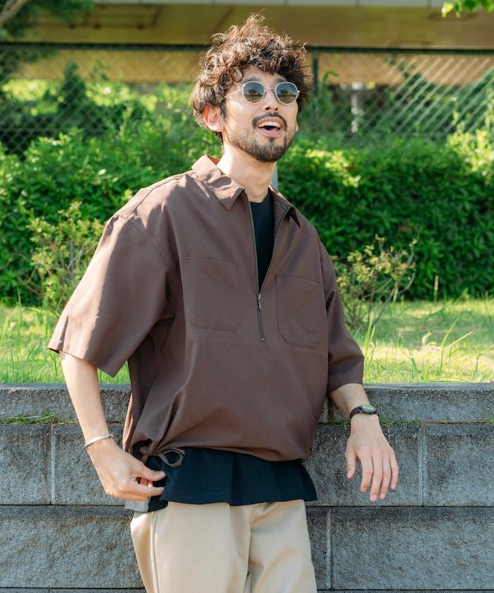 1007248900245: Reflax 功能性面料 寬鬆版型半拉鍊襯衫 短袖
