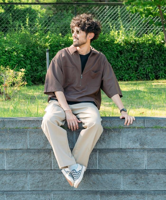 短袖半拉鍊襯衫由 Reflax 製成,這是一種別緻而輕薄的滌綸紗線,帶有類似大麻的結節,外觀寬鬆,手感乾爽。