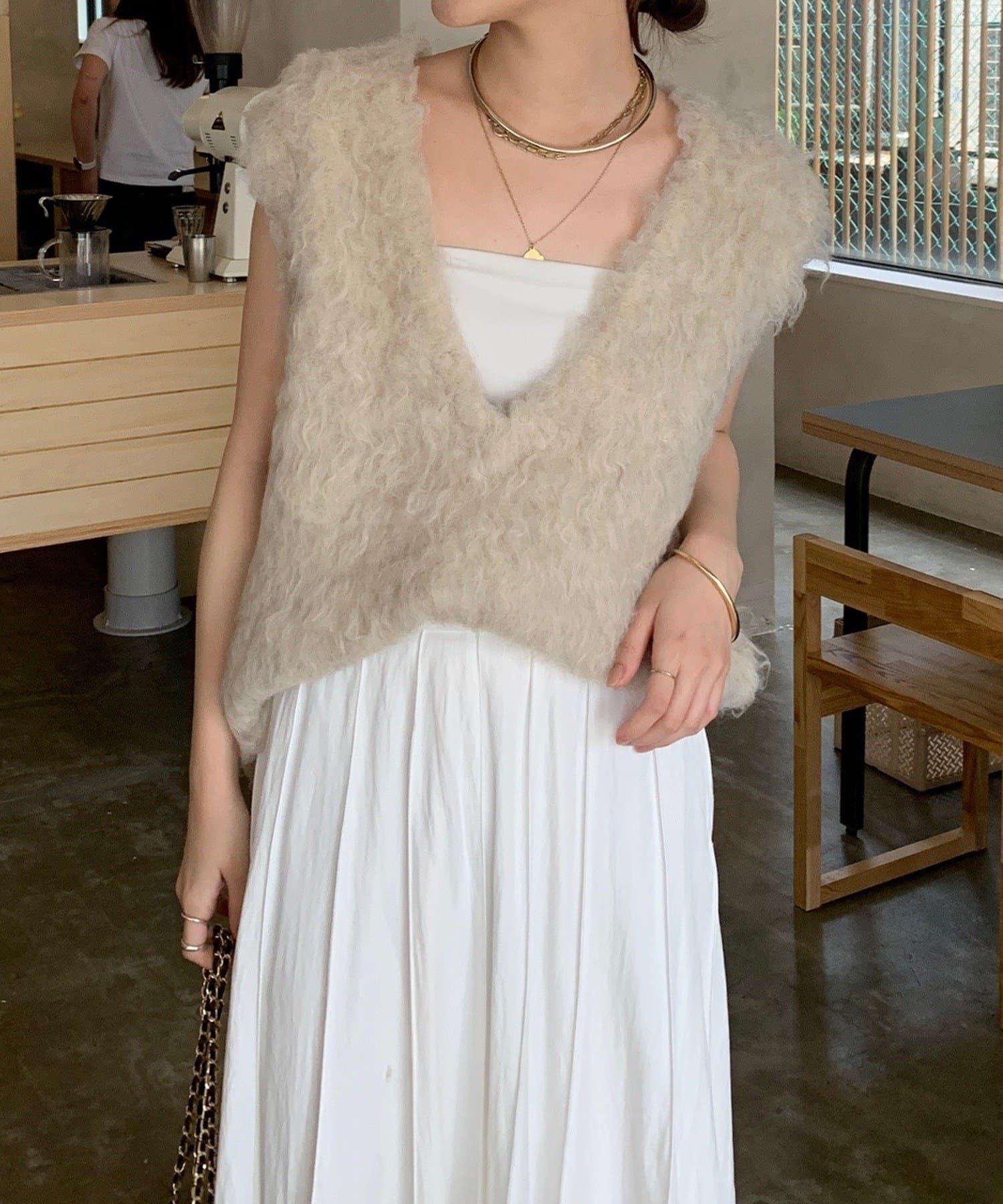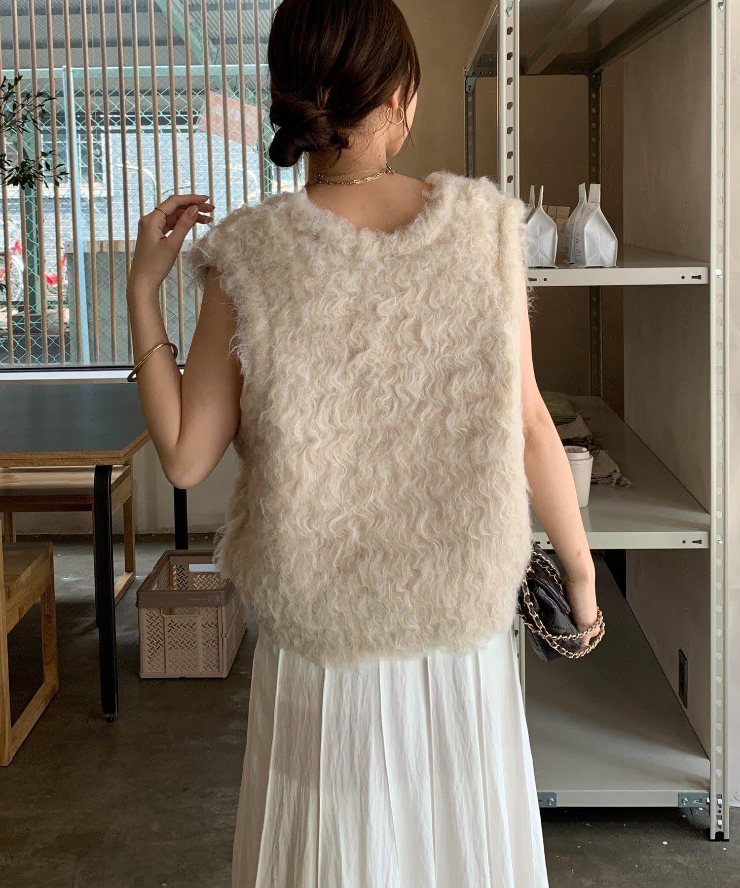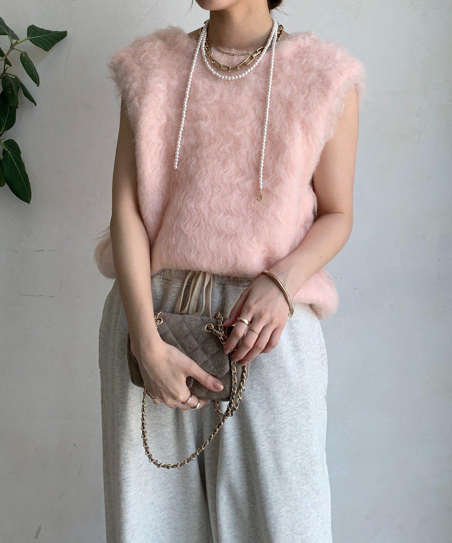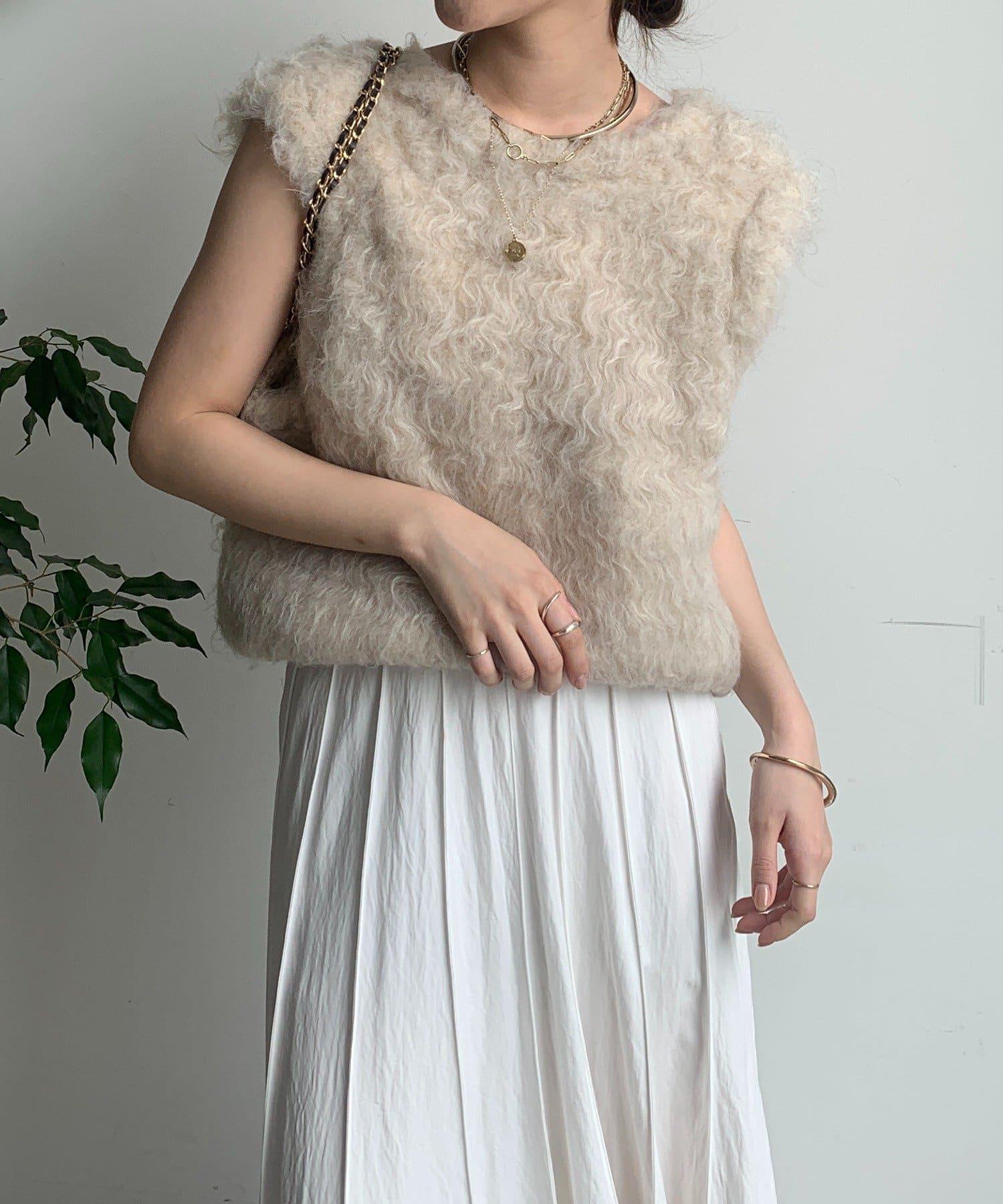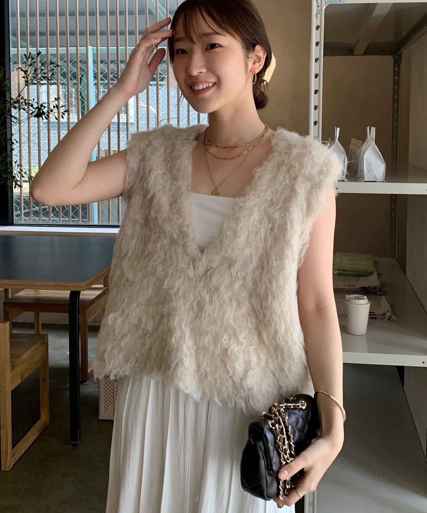 蓬鬆的絨毛材質與淺米色的混色搭配,給人一種更柔和、更女性化的印象。