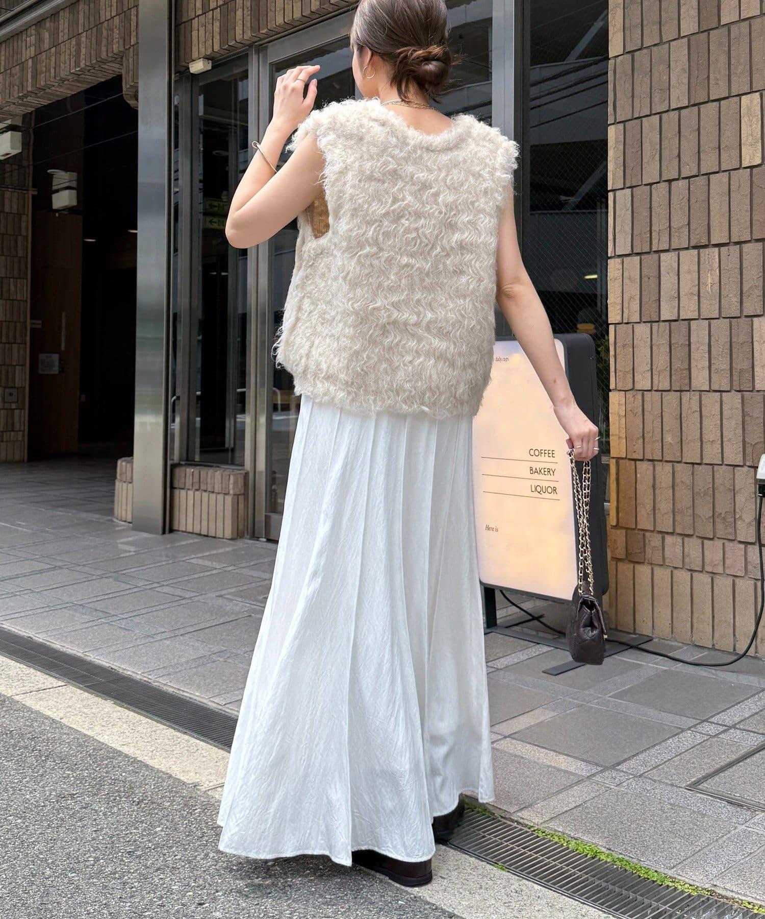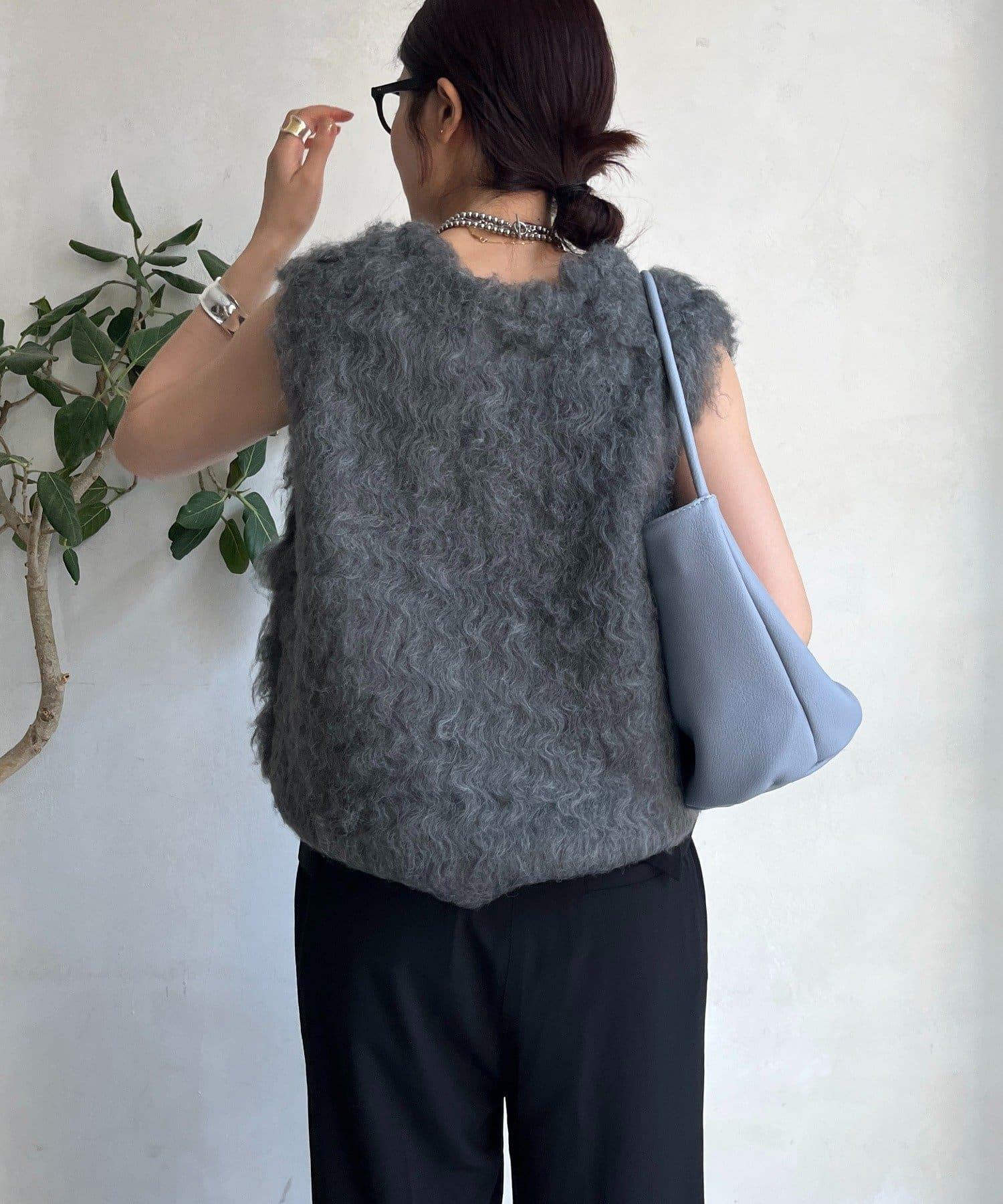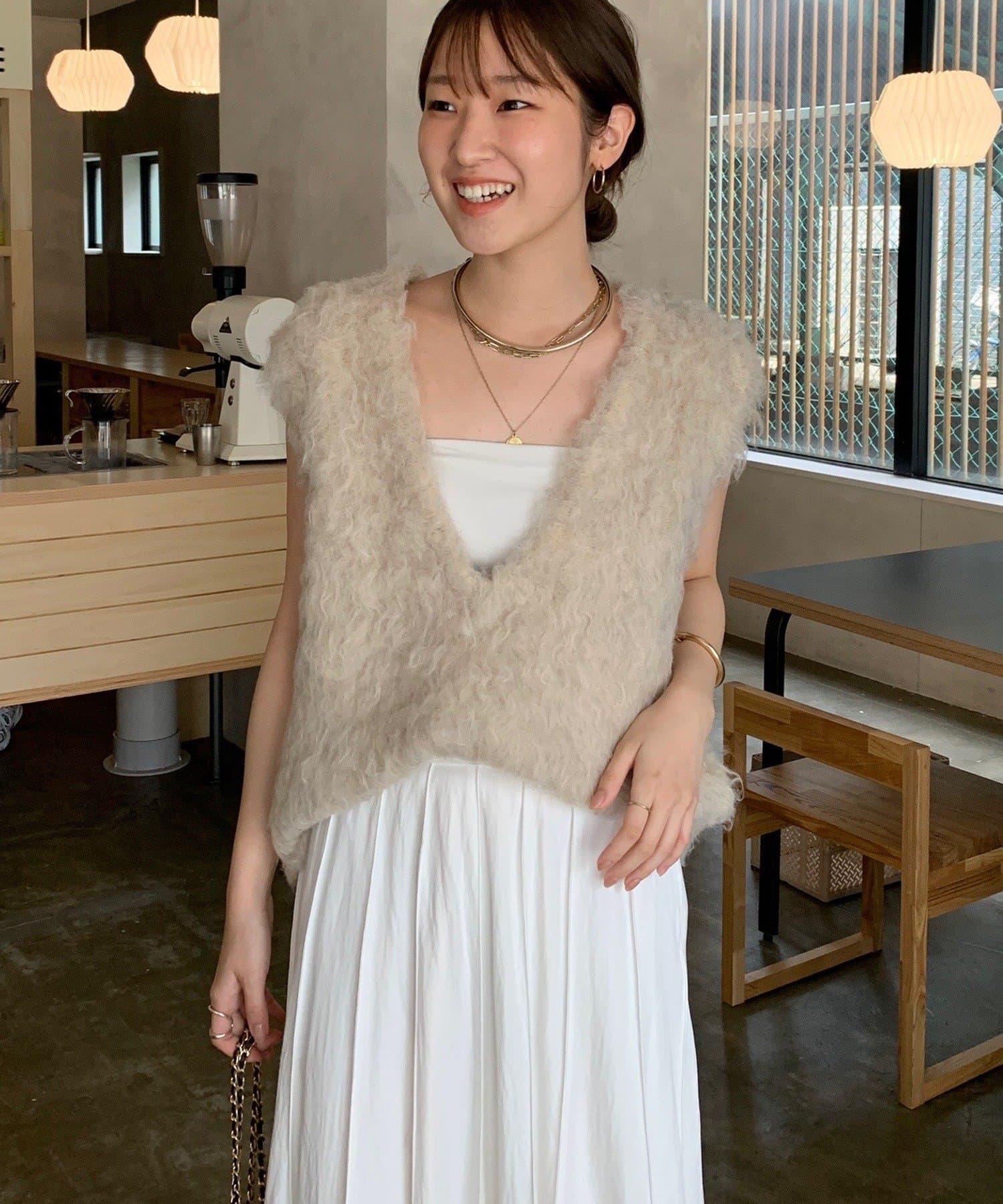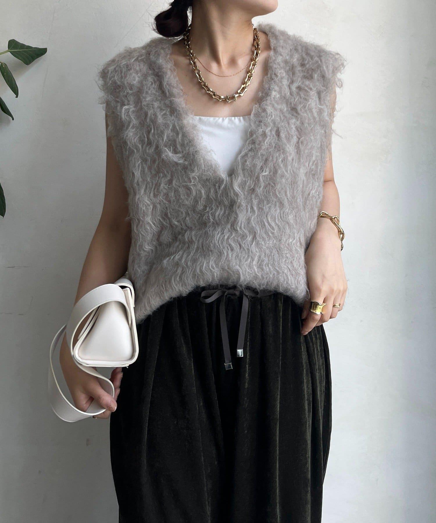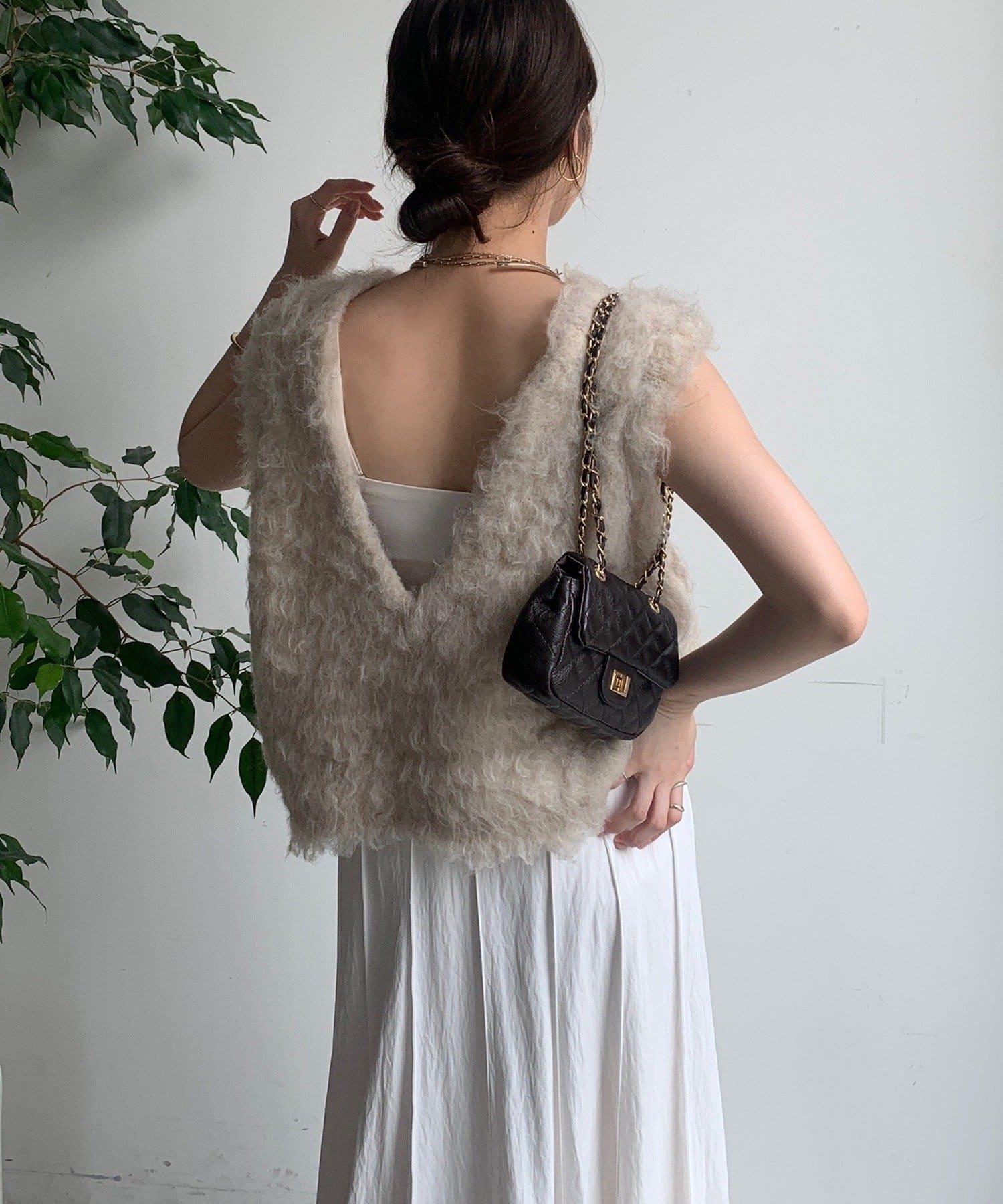 蓬鬆的絨毛材質與淺米色的混色搭配,給人一種更柔和、更女性化的印象。