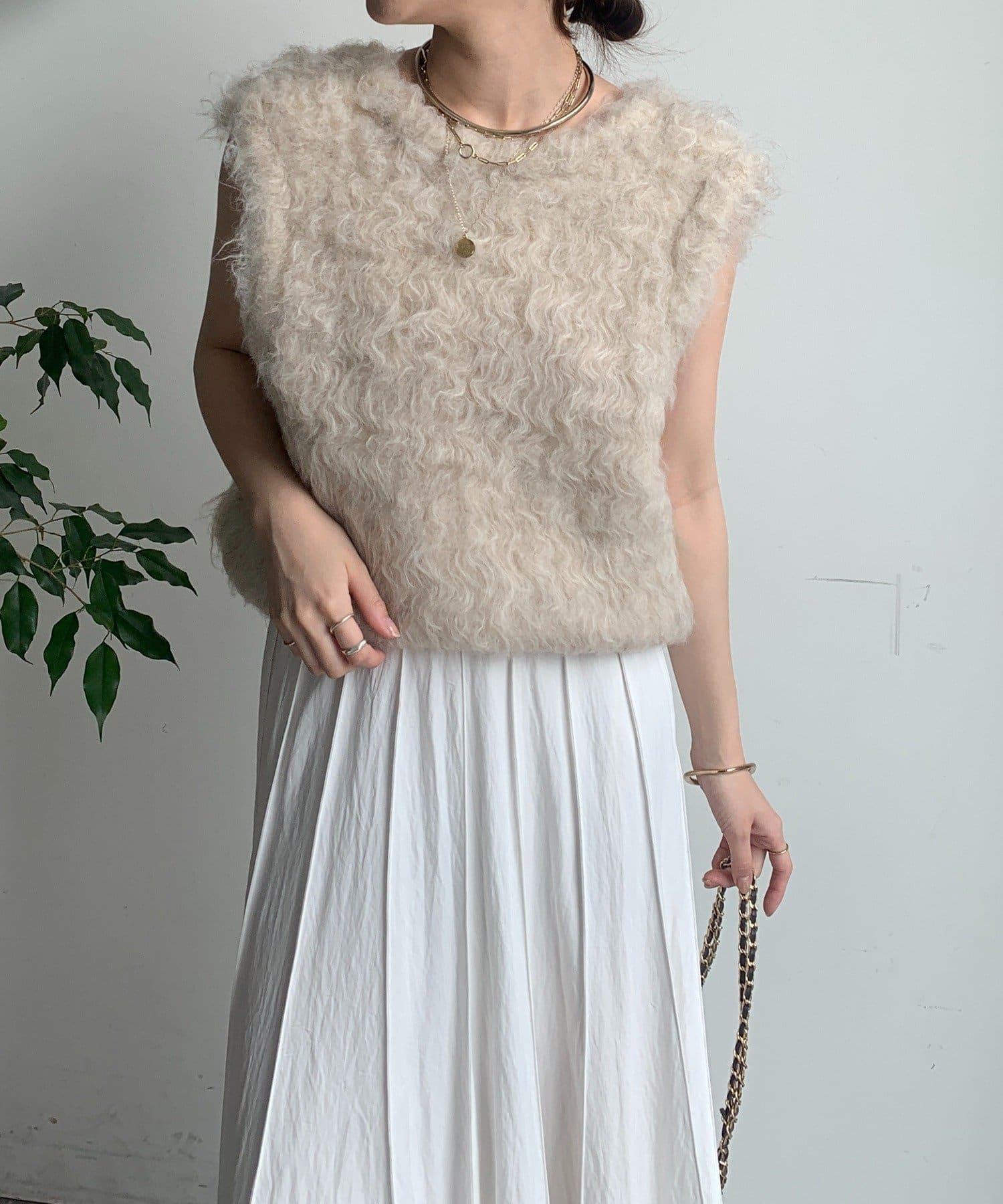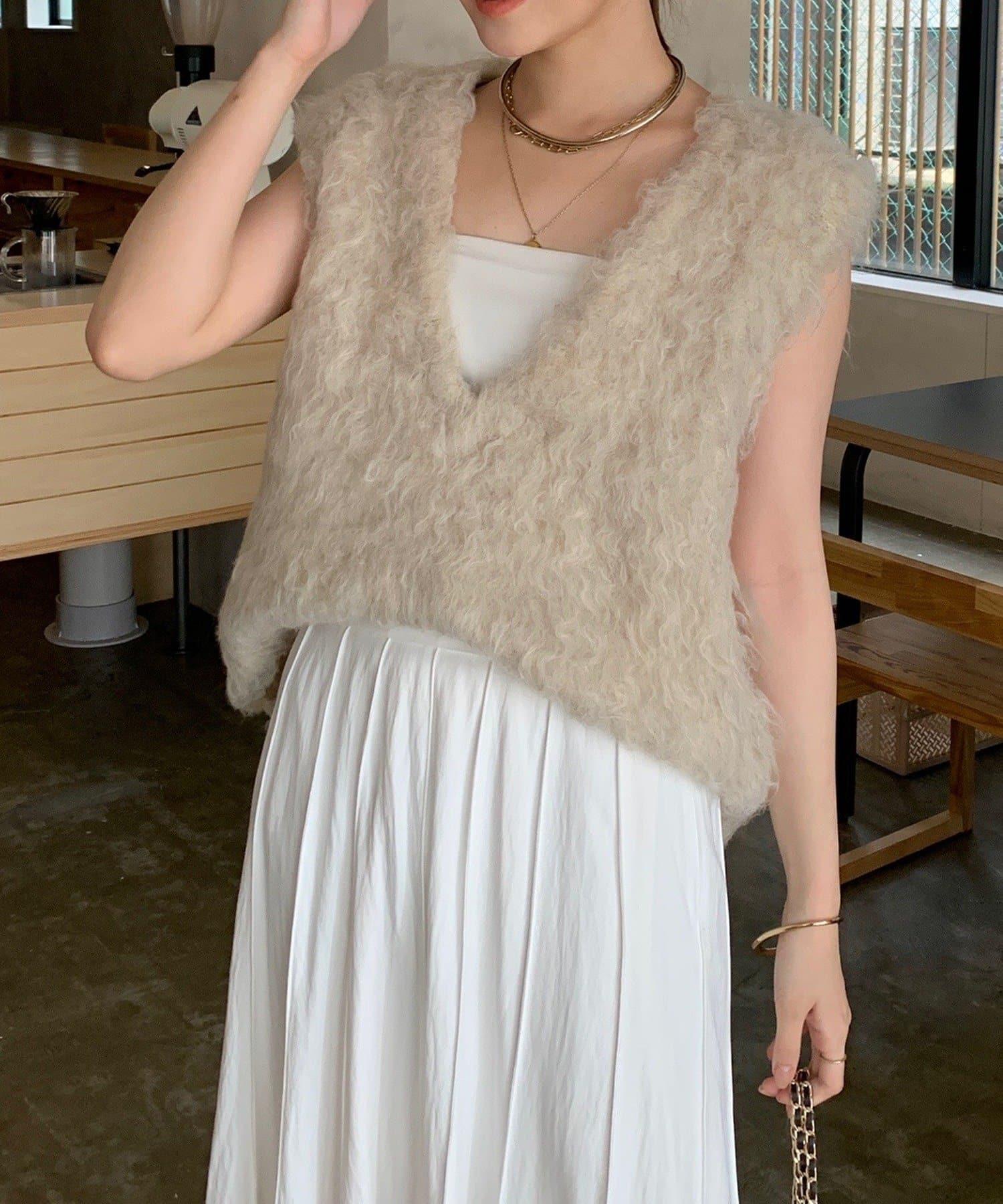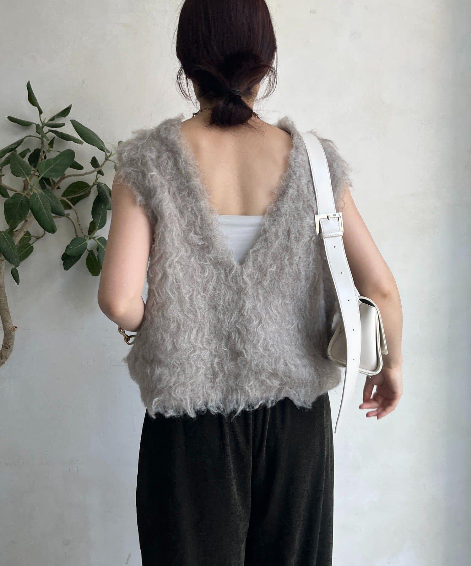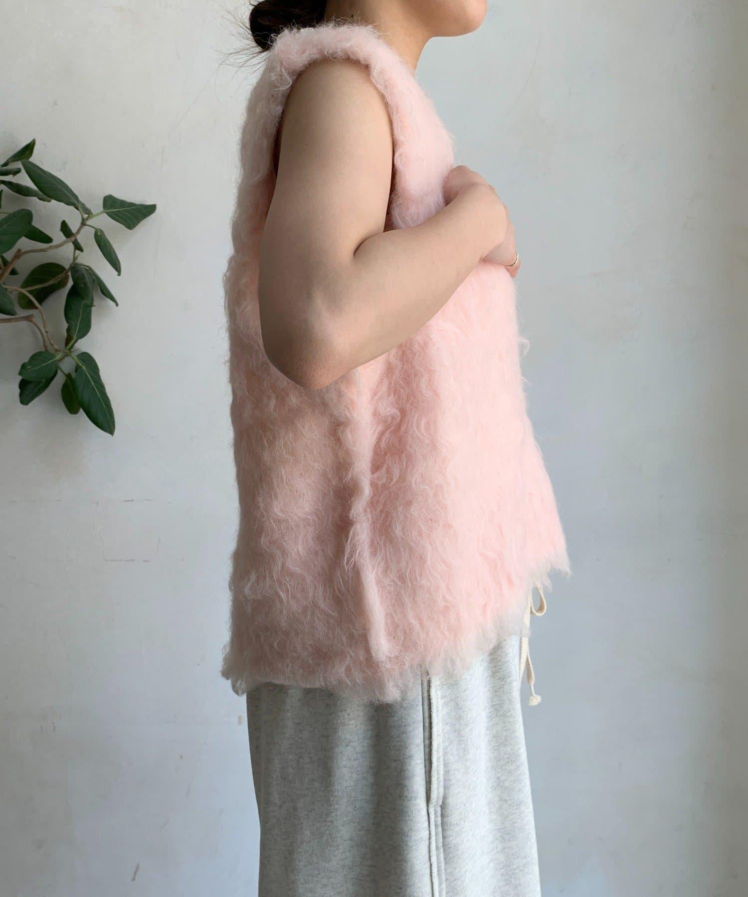蓬鬆的絨毛材質與淺米色的混色搭配,給人一種更柔和、更女性化的印象。