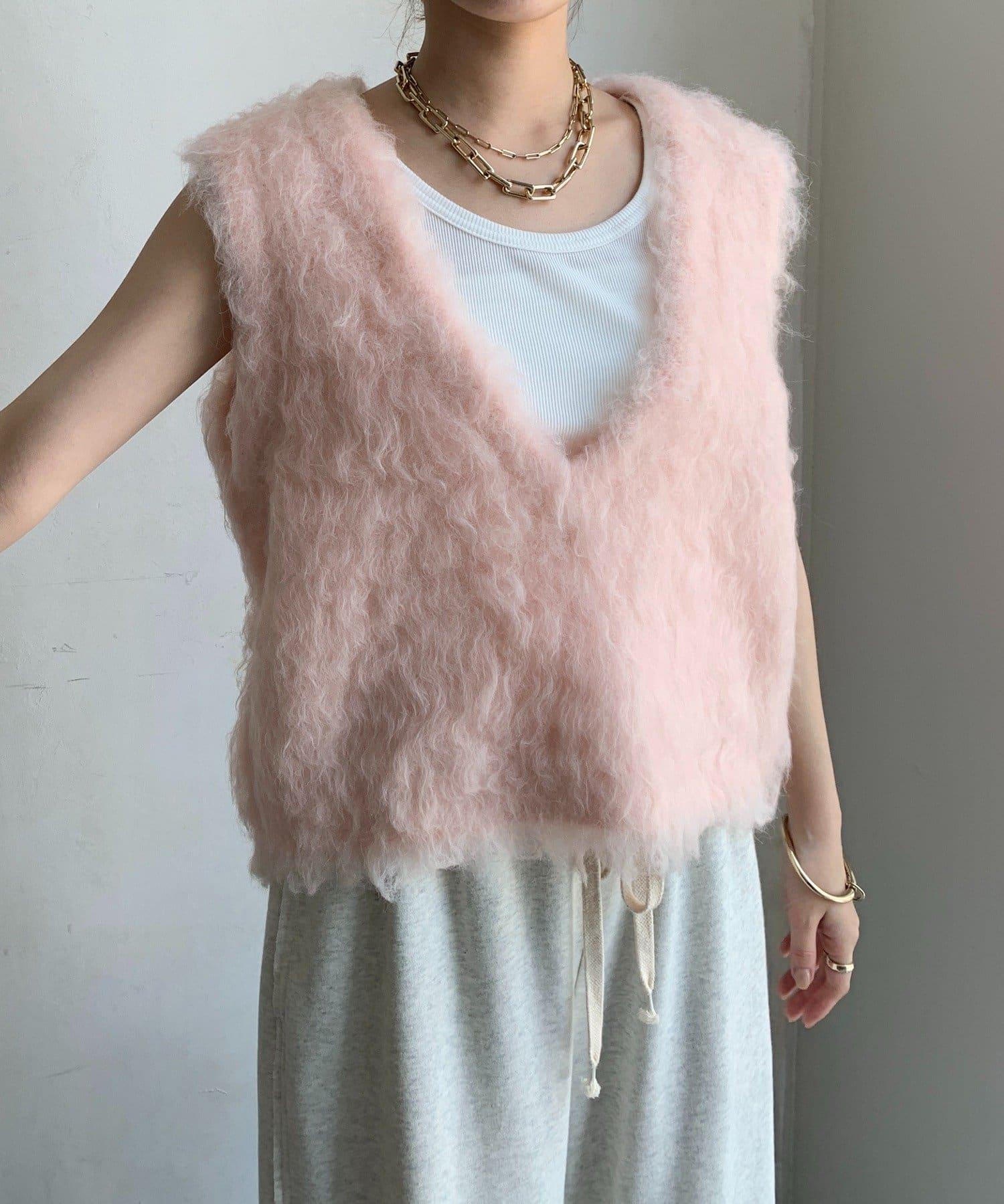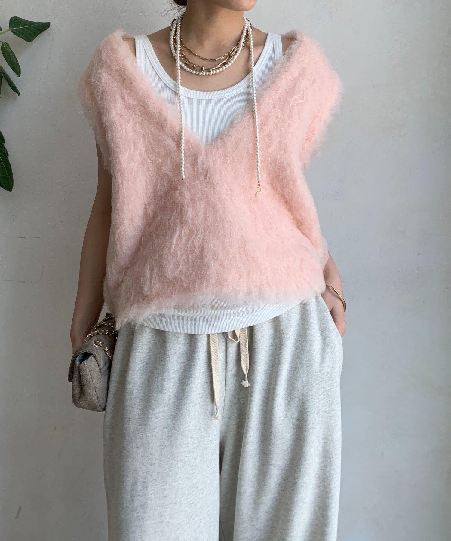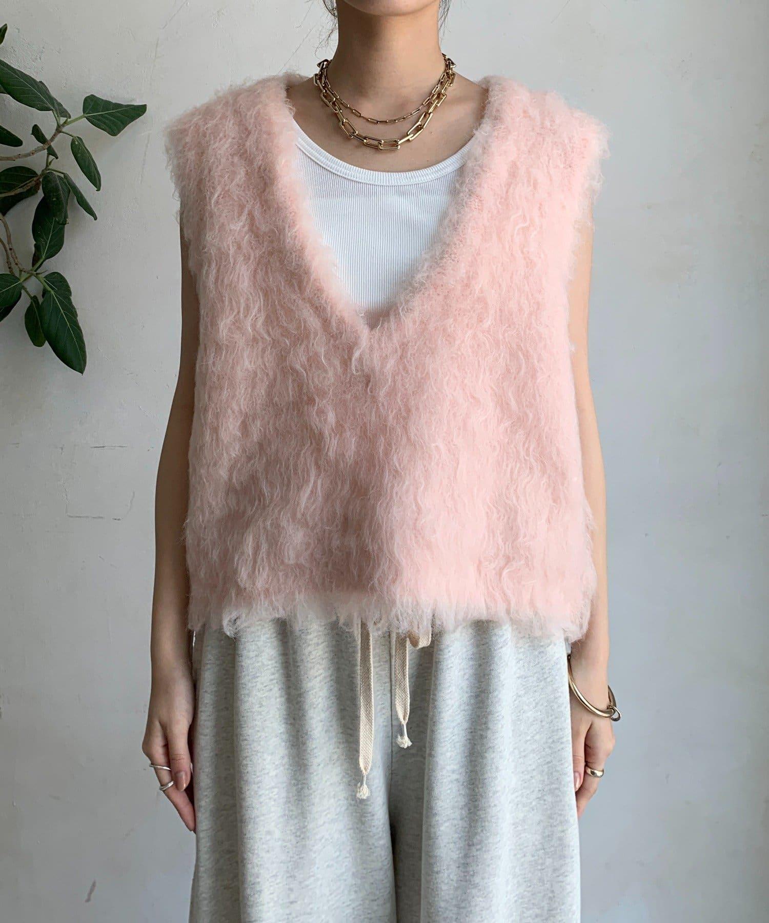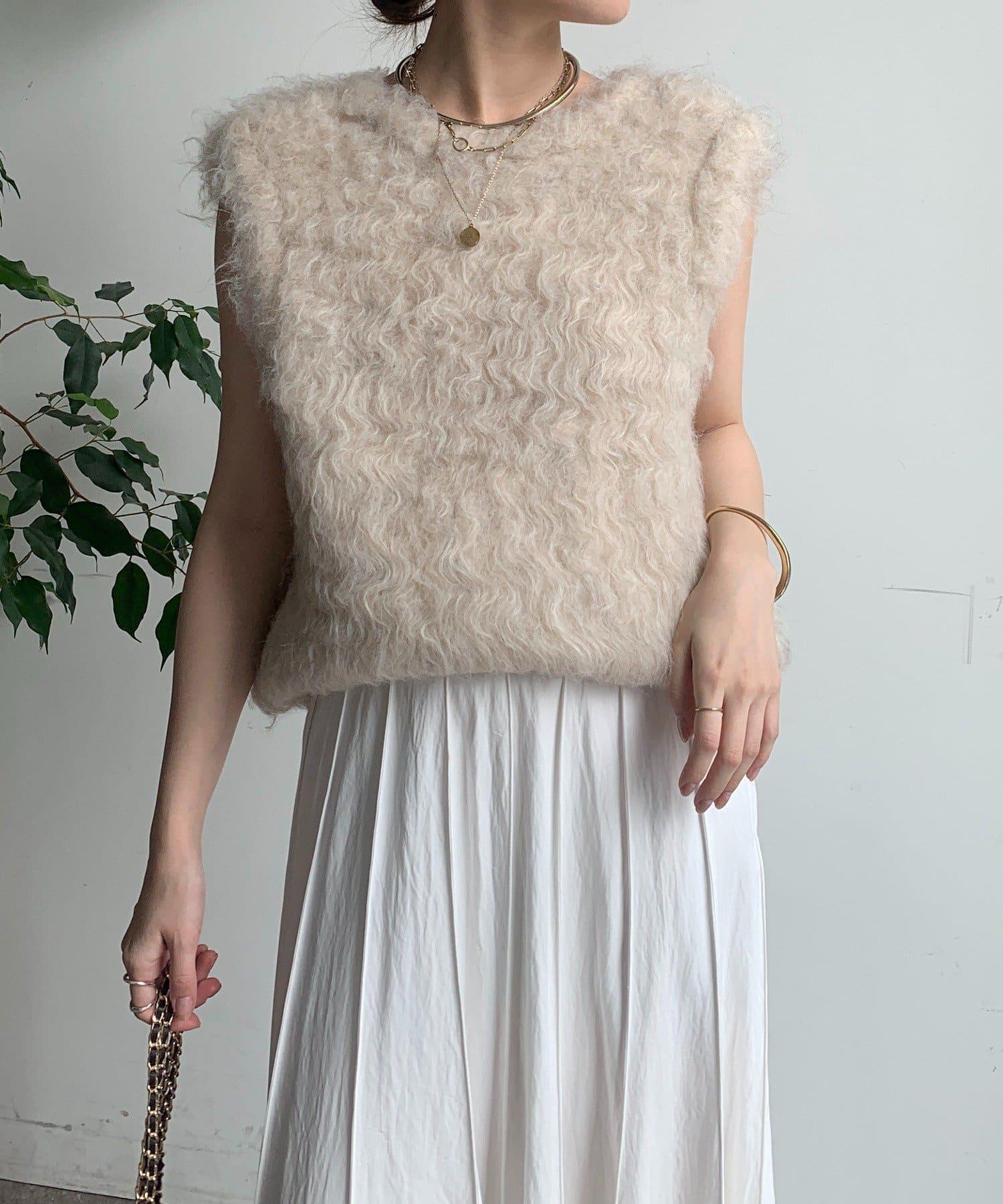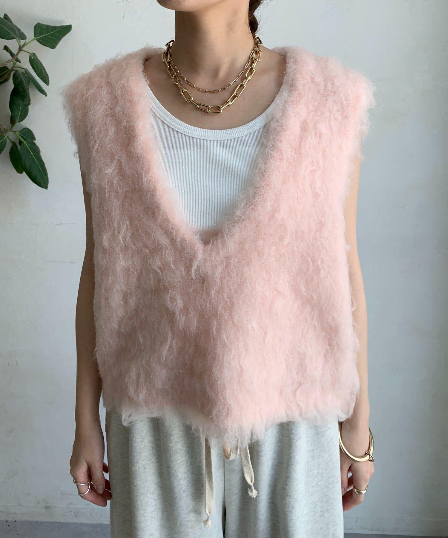 蓬鬆的絨毛材質與淺米色的混色搭配,給人一種更柔和、更女性化的印象。