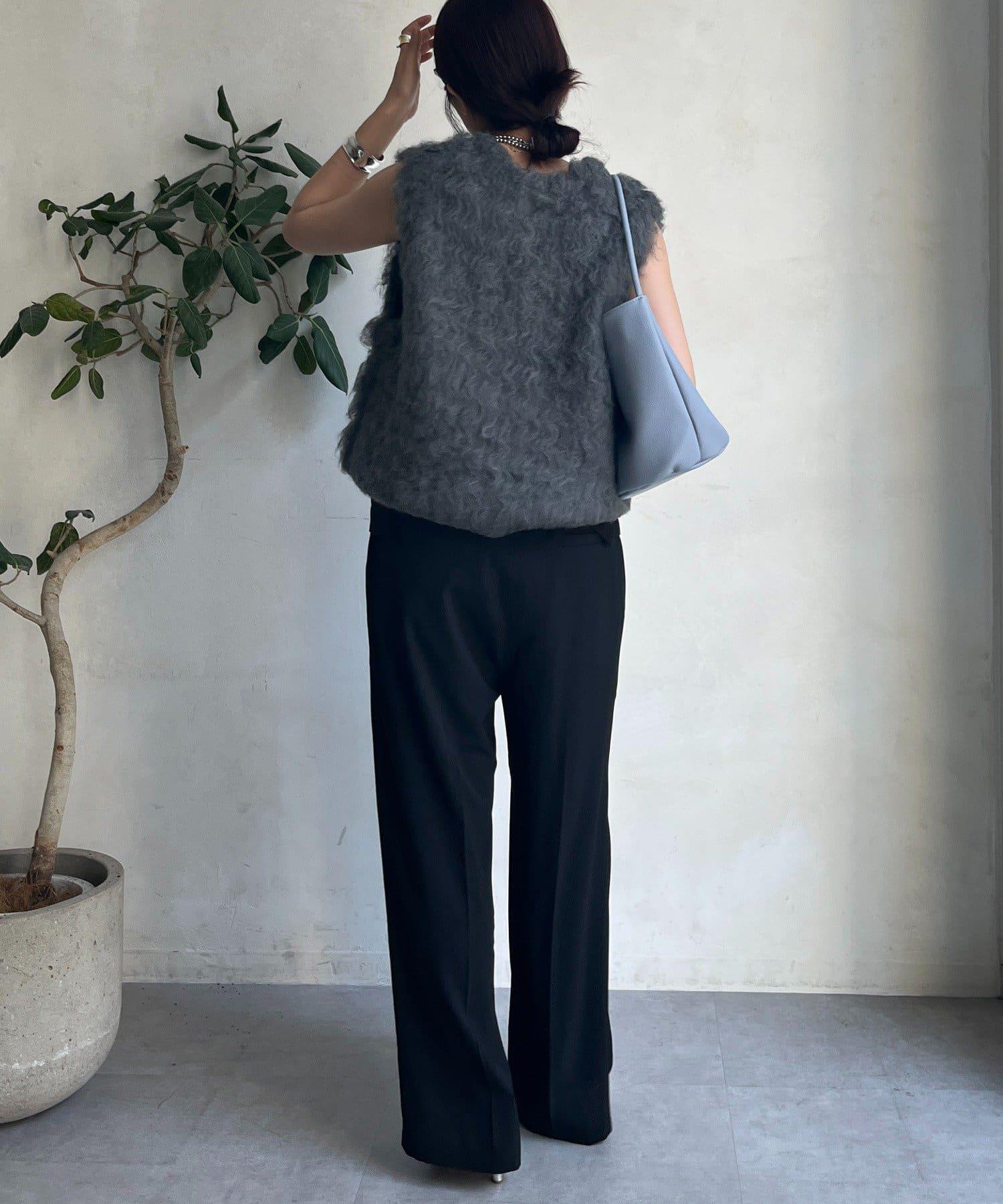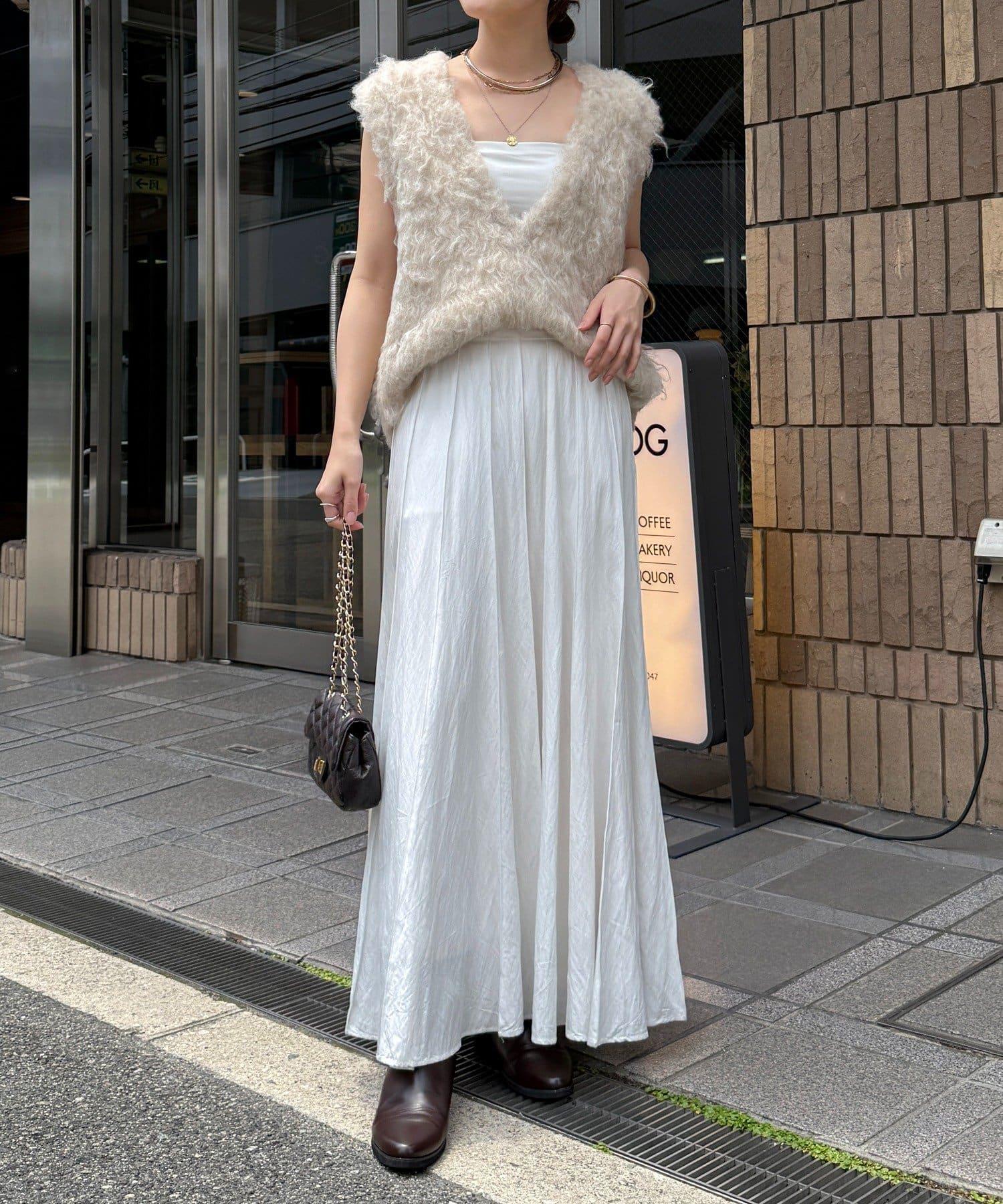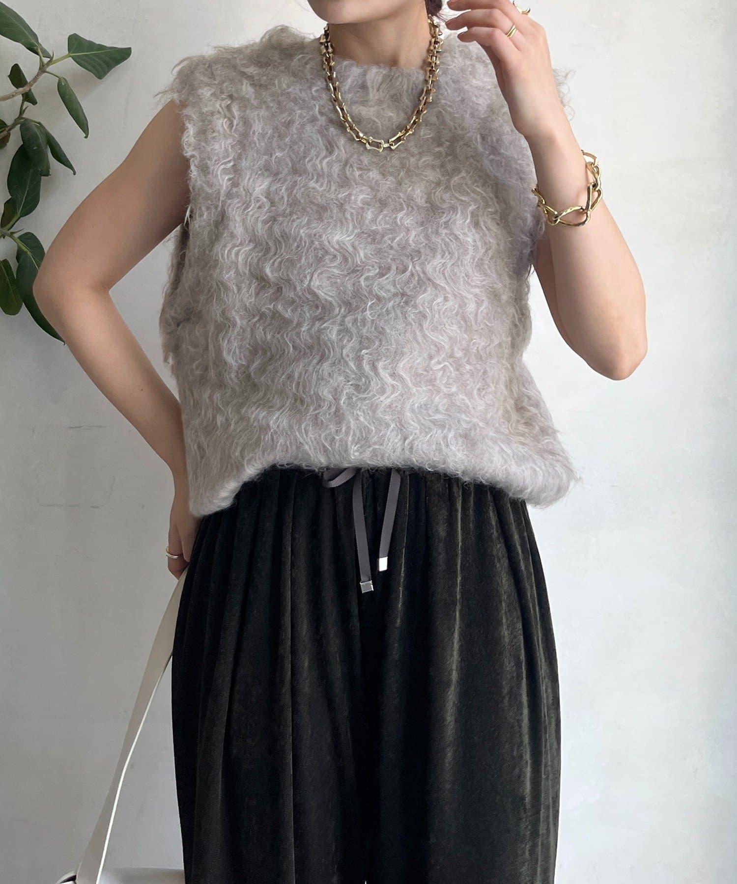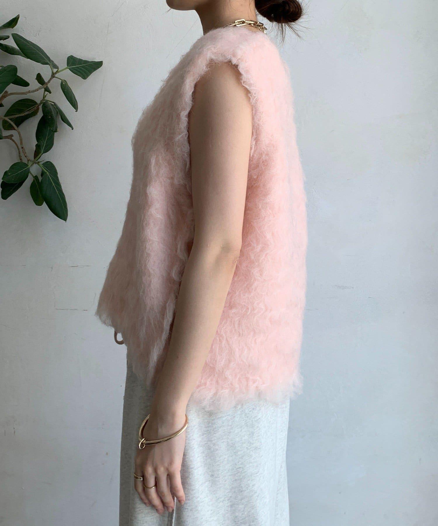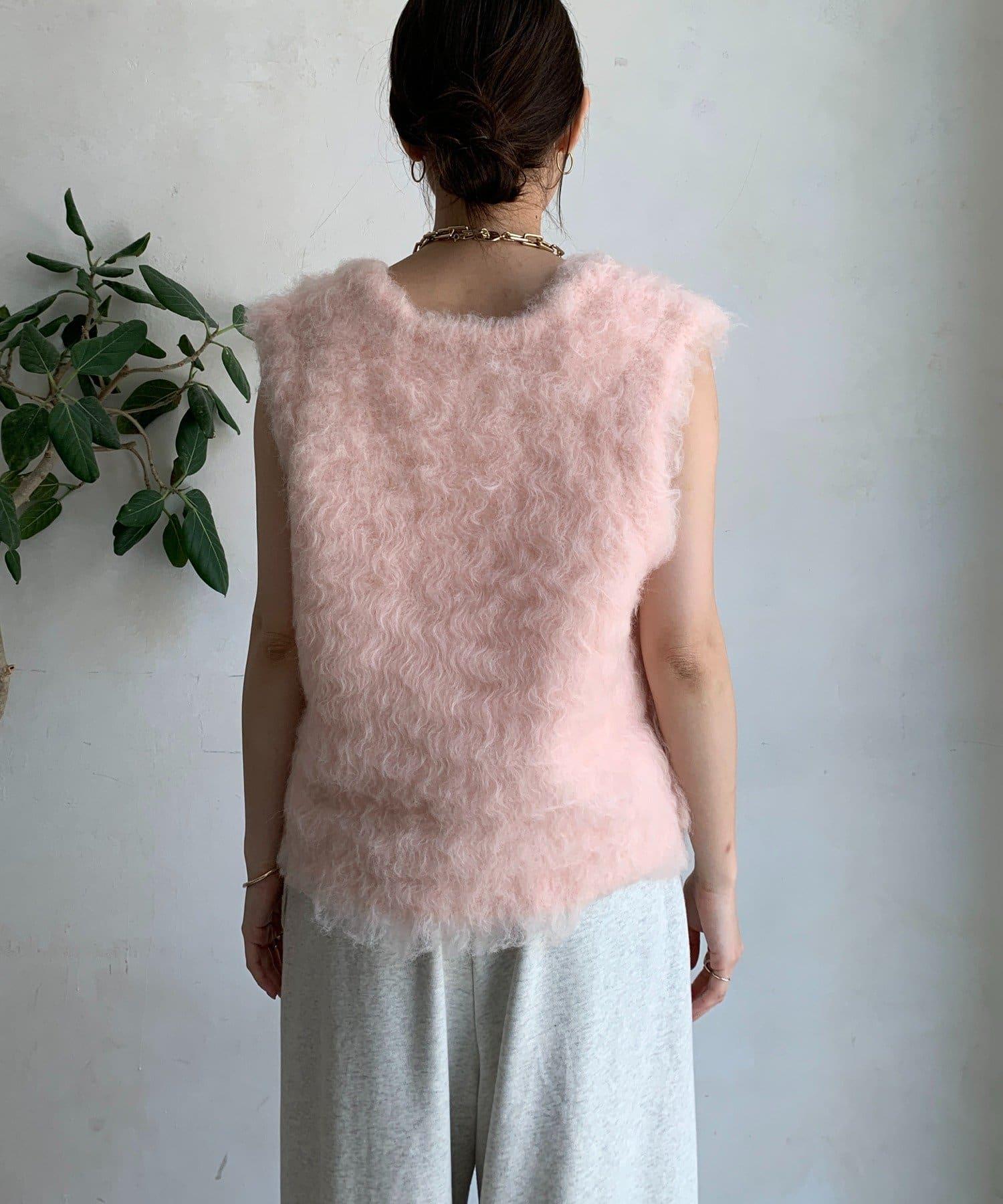 蓬鬆的絨毛材質與淺米色的混色搭配,給人一種更柔和、更女性化的印象。