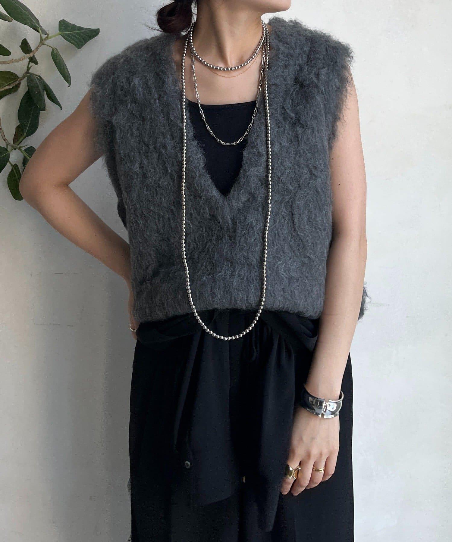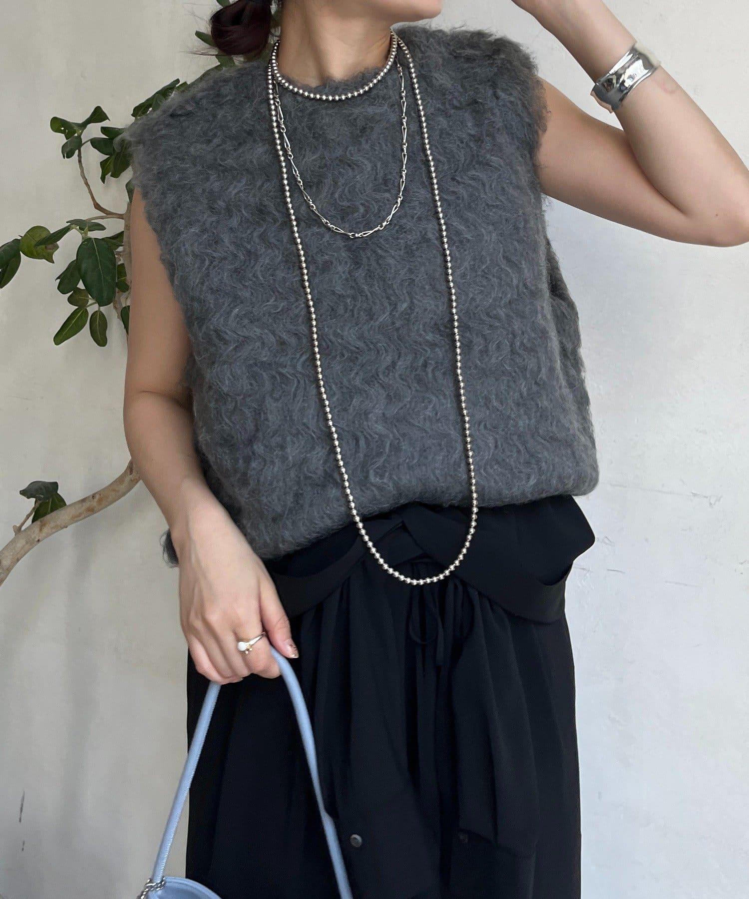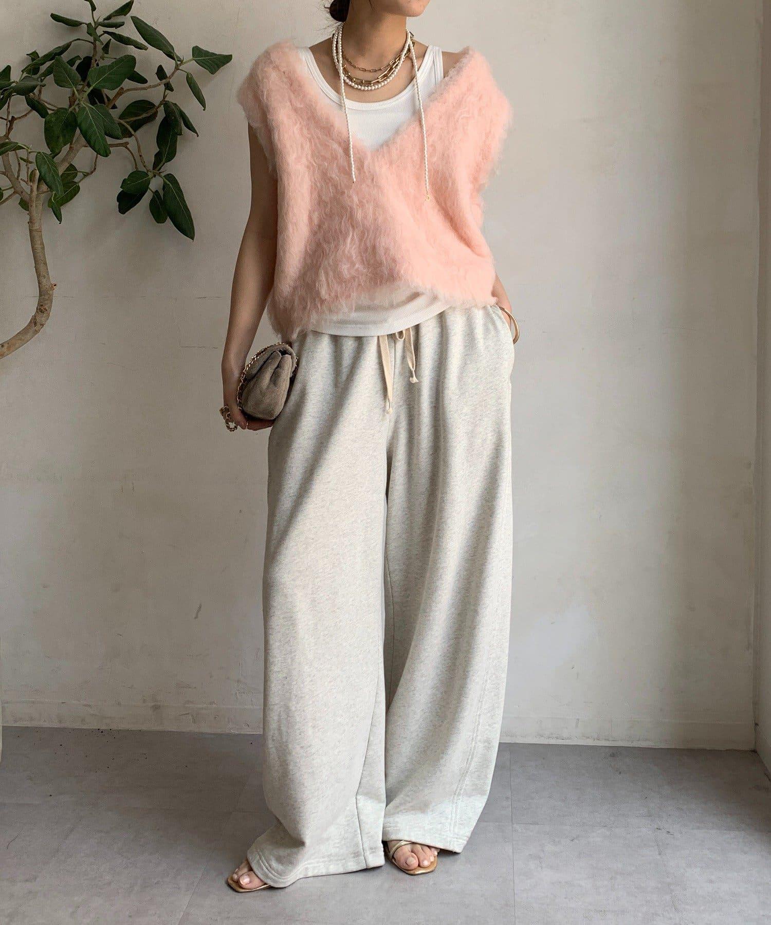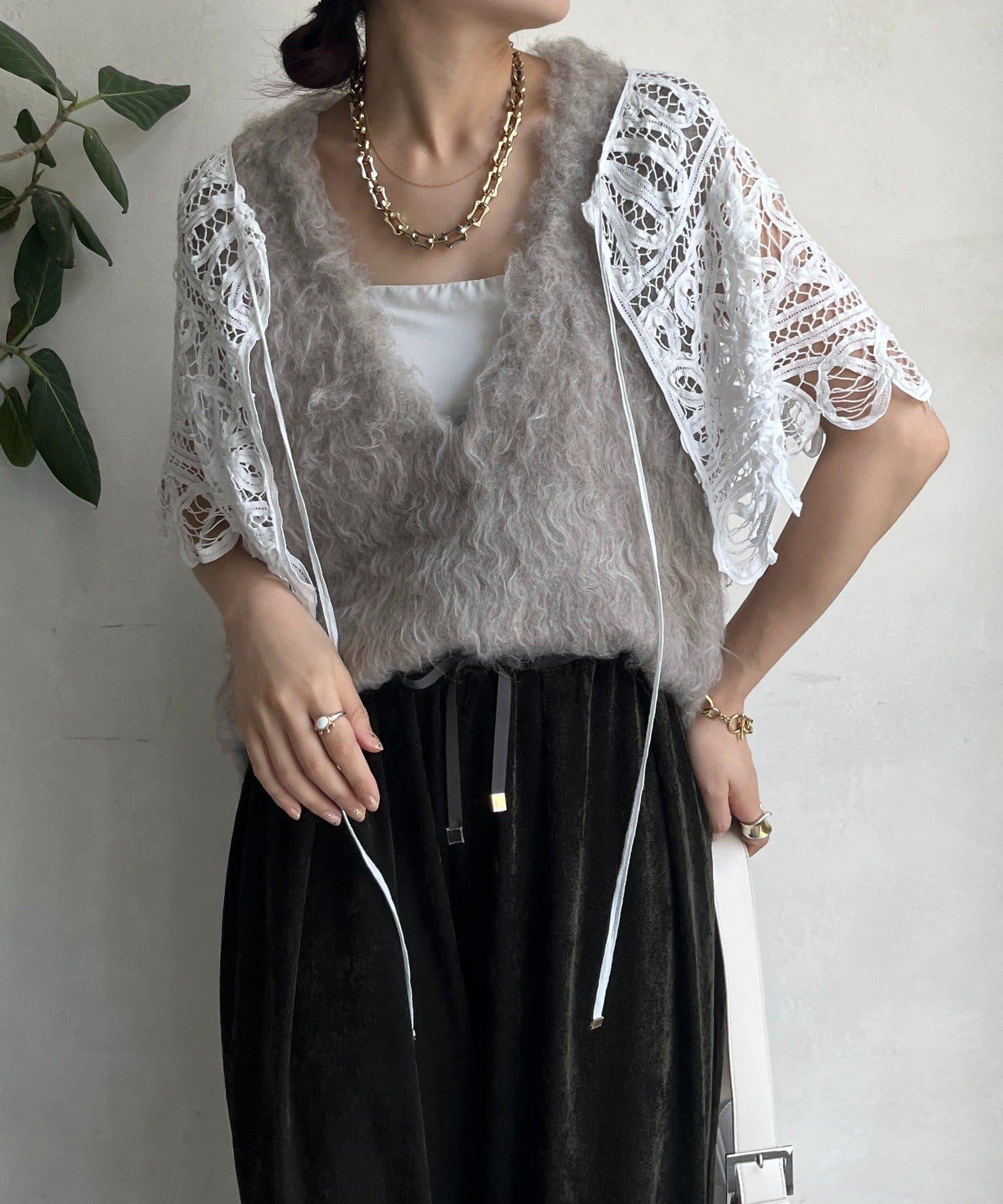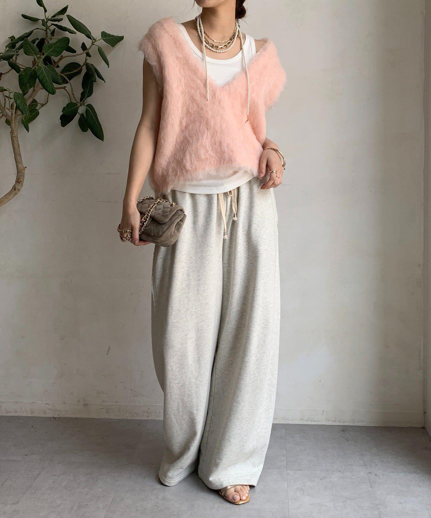蓬鬆的絨毛材質與淺米色的混色搭配,給人一種更柔和、更女性化的印象。