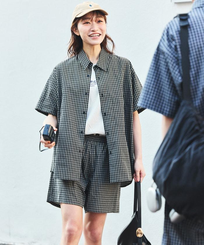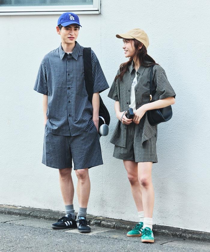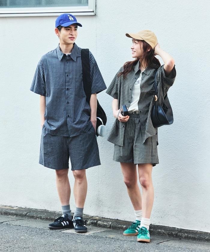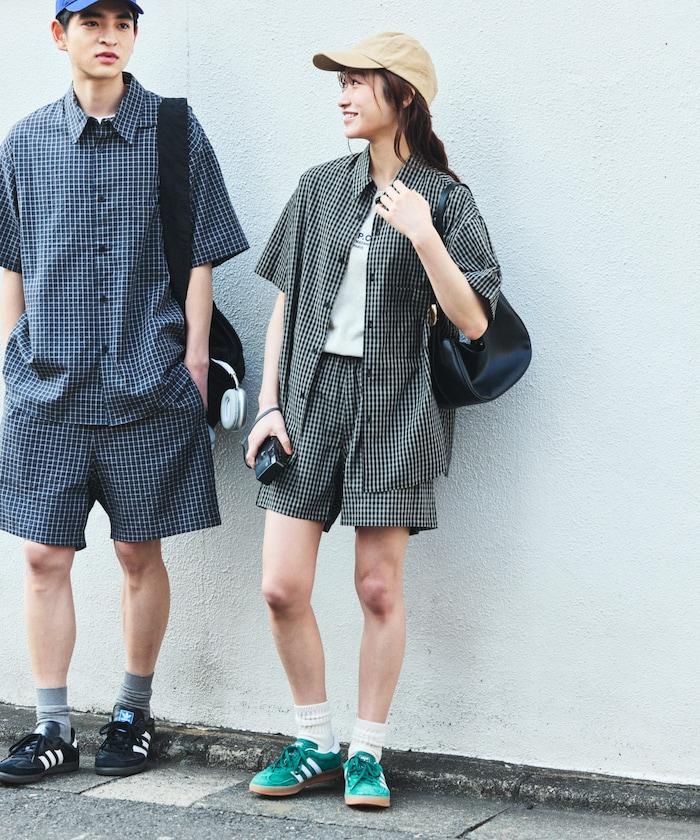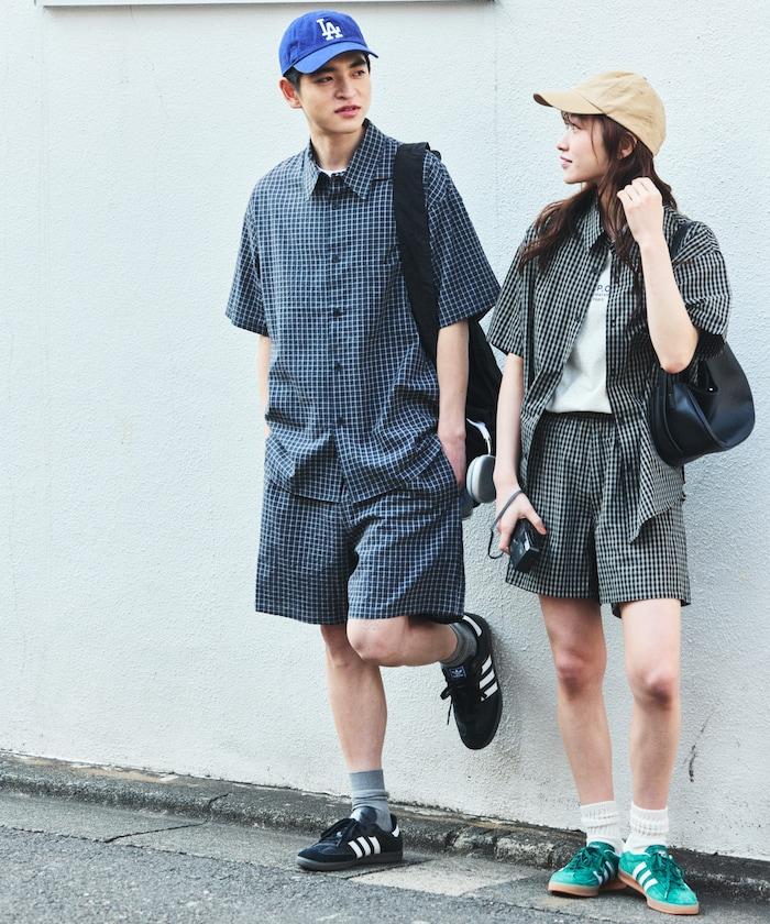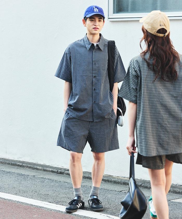 Relax Fit 舒適寬鬆格紋套裝/常規領襯衫/休閒短褲