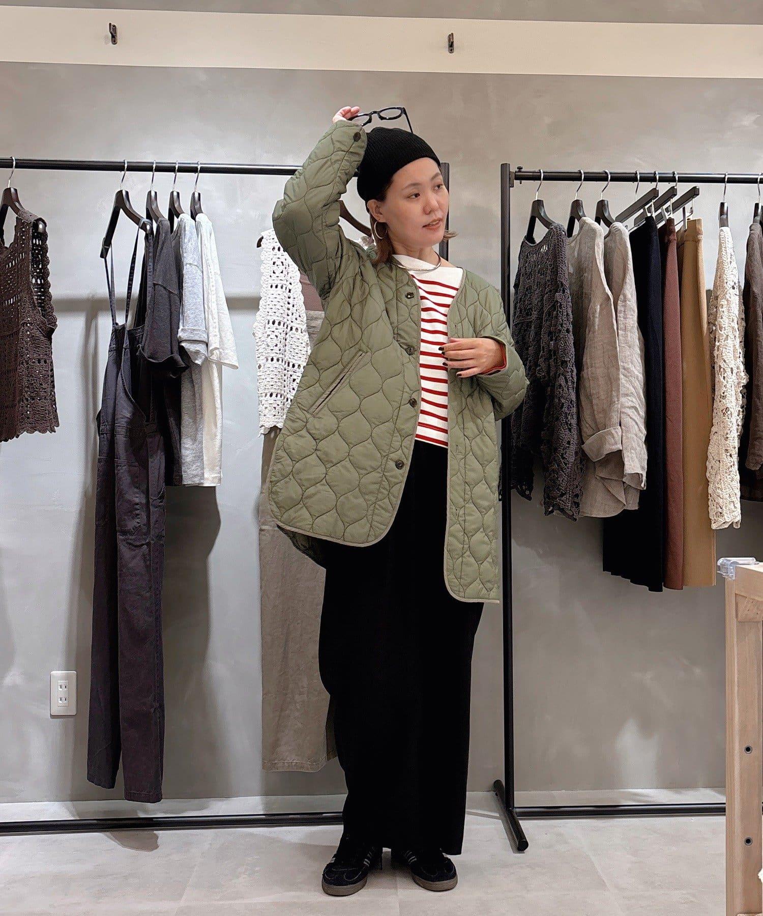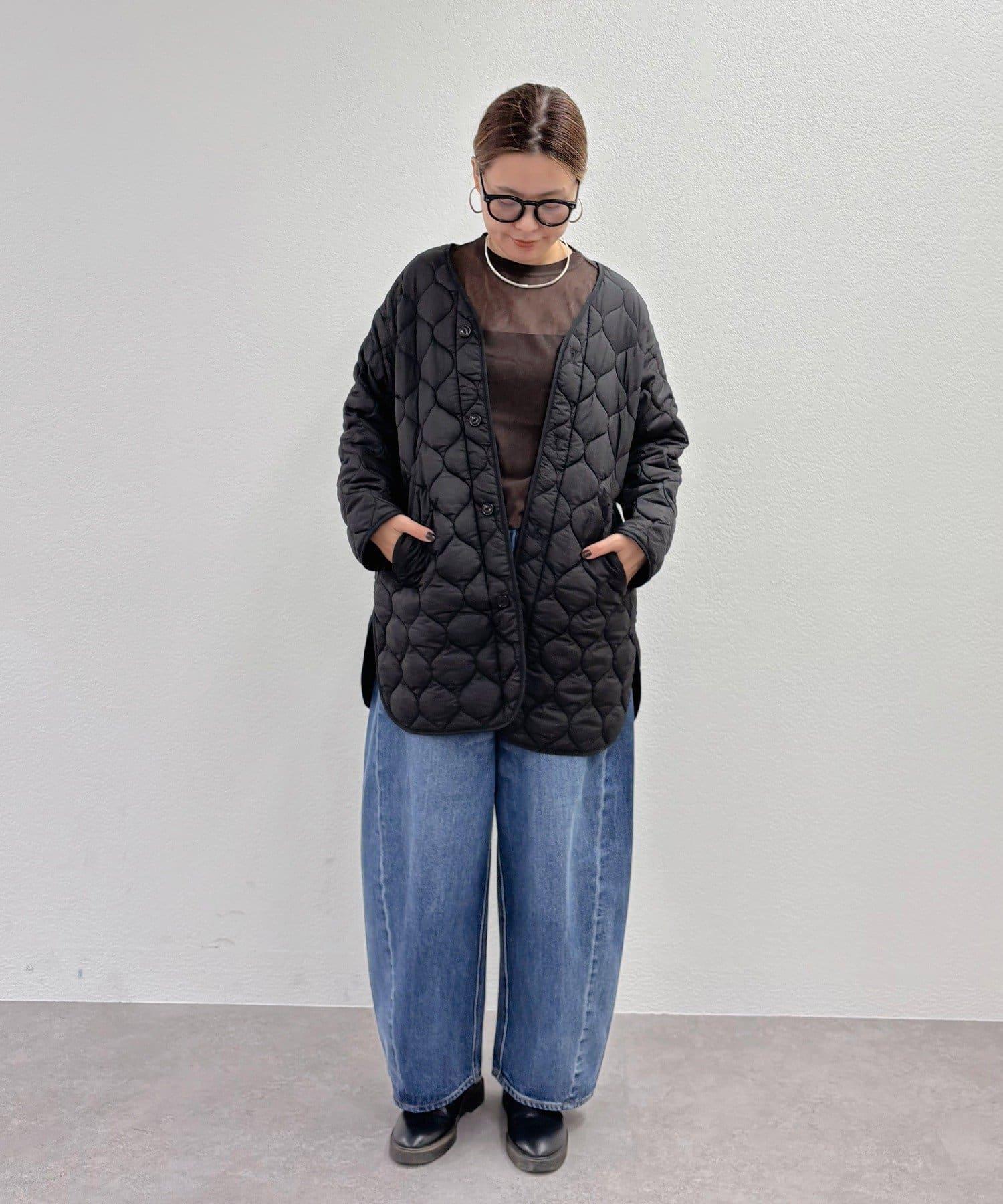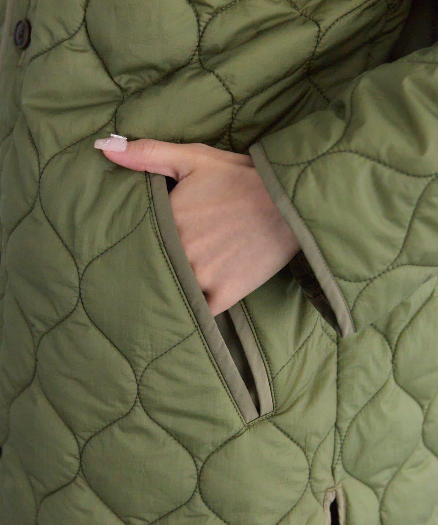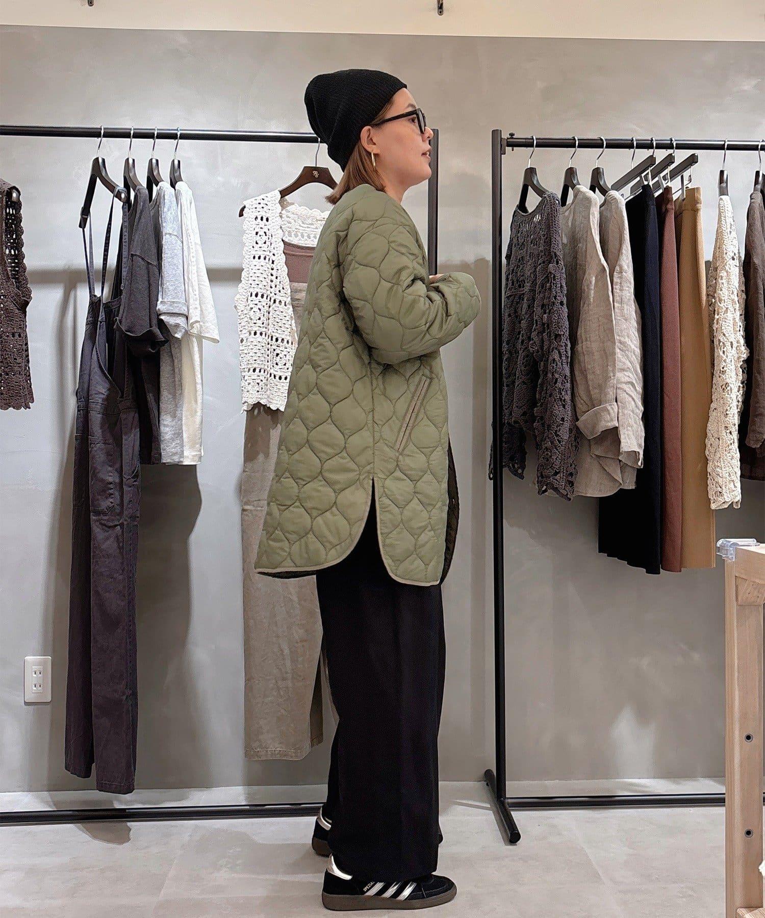 絎縫大衣上有柔和的波浪形圖案,單穿時與溫柔的成人女性氣息相得益彰。