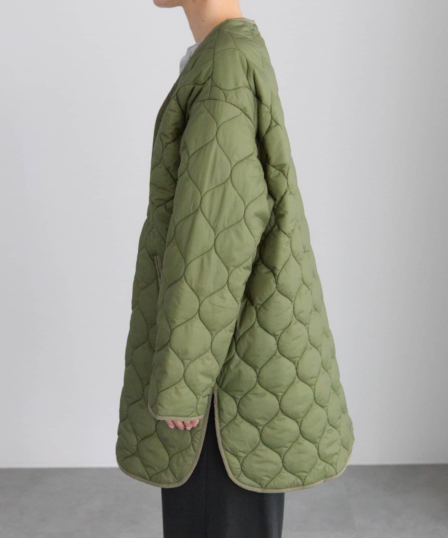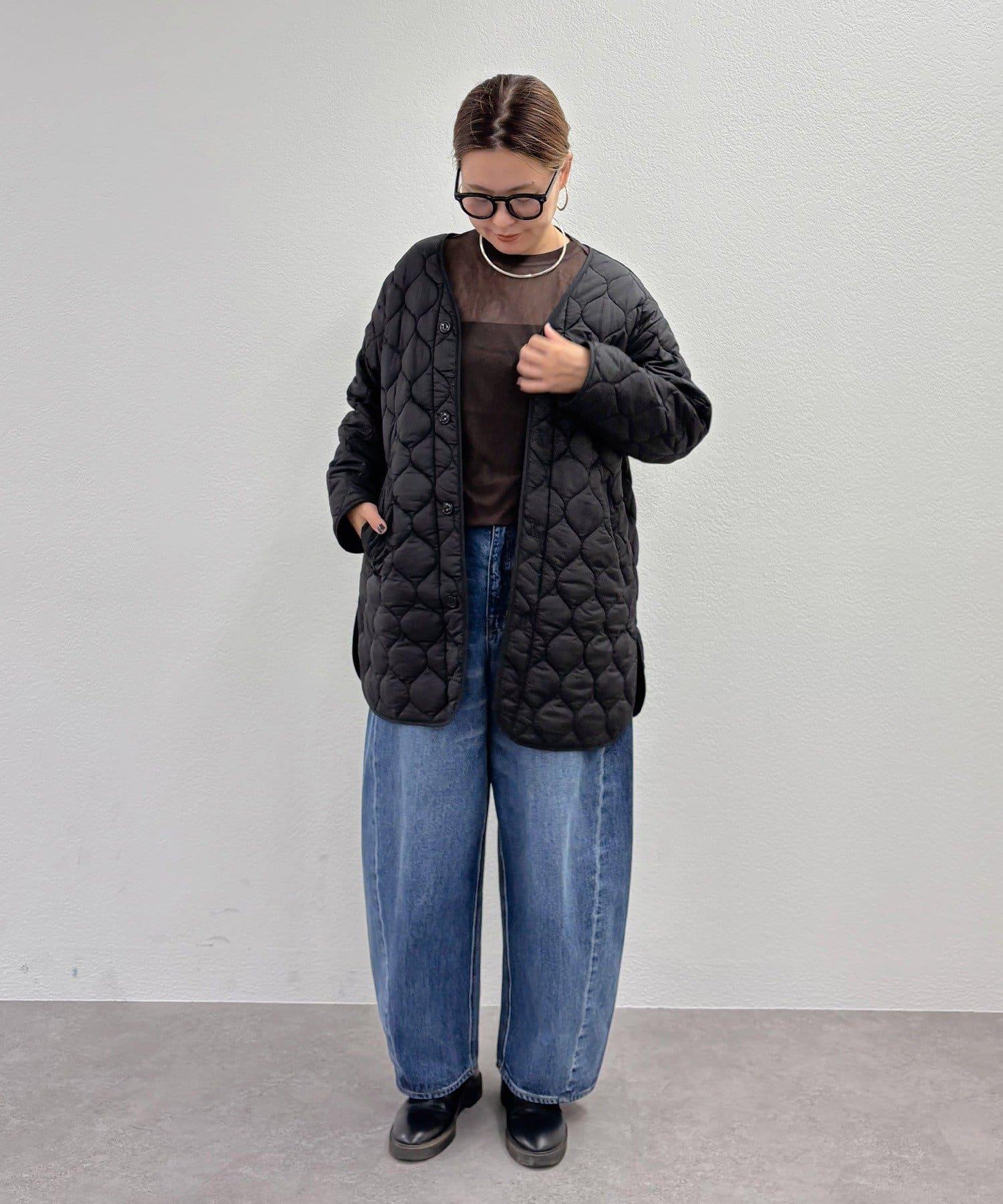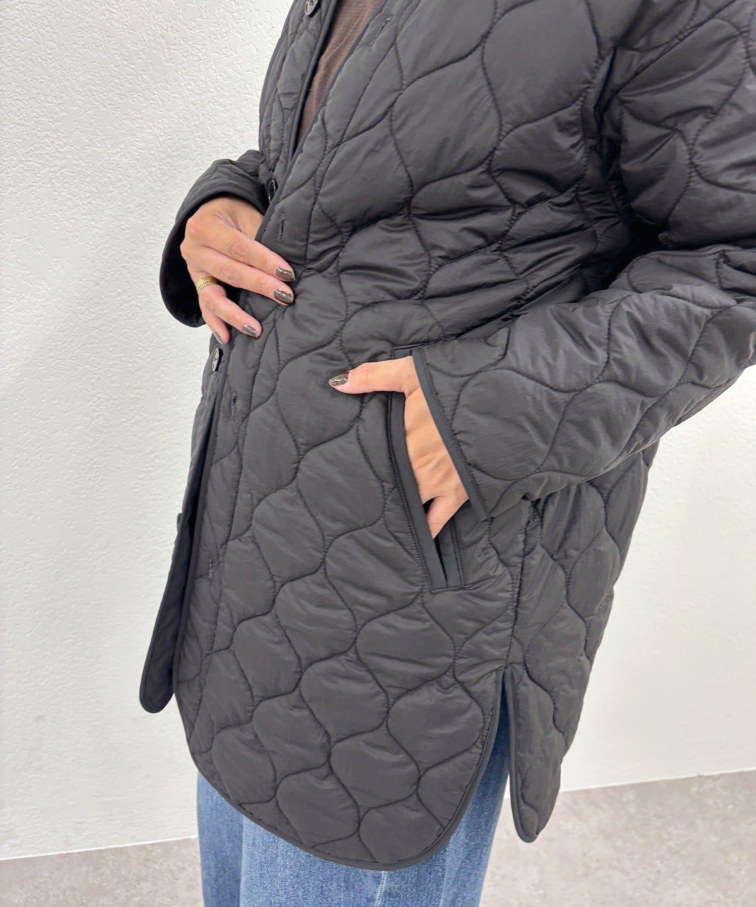 絎縫大衣上有柔和的波浪形圖案,單穿時與溫柔的成人女性氣息相得益彰。