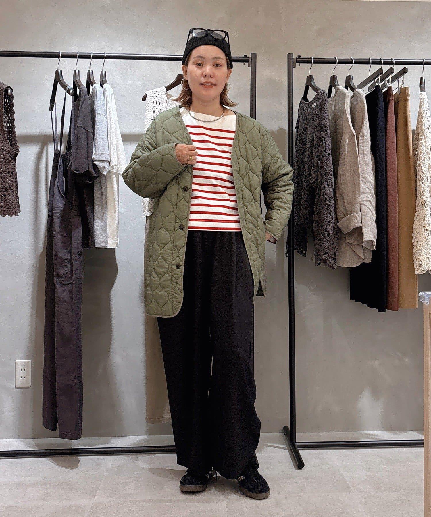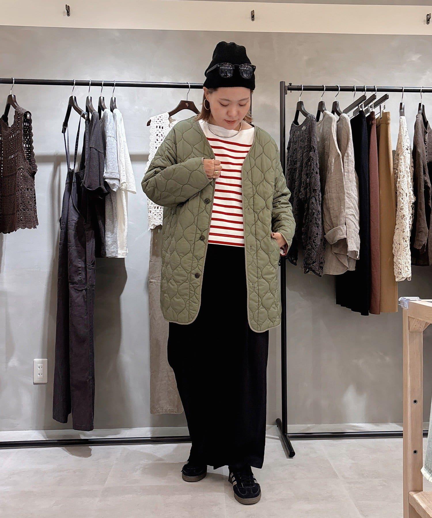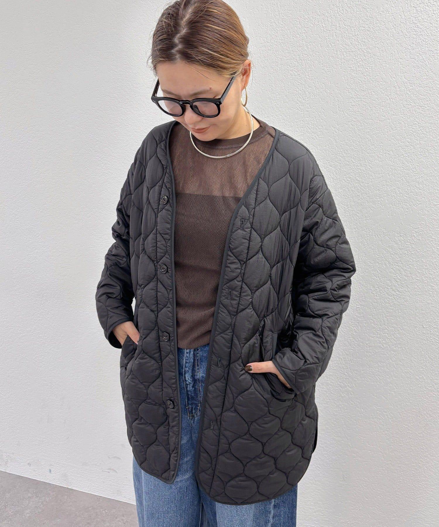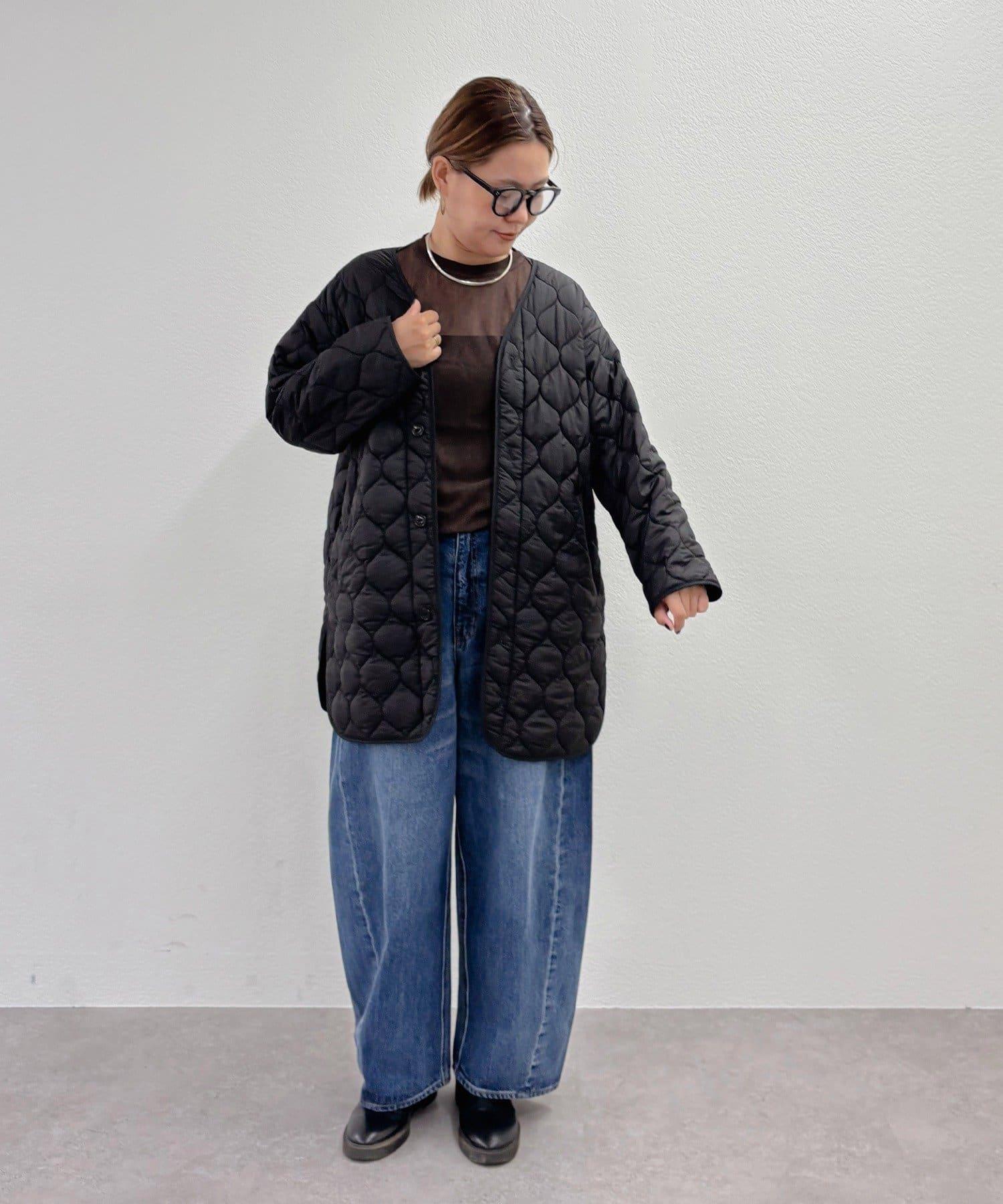絎縫大衣上有柔和的波浪形圖案,單穿時與溫柔的成人女性氣息相得益彰。