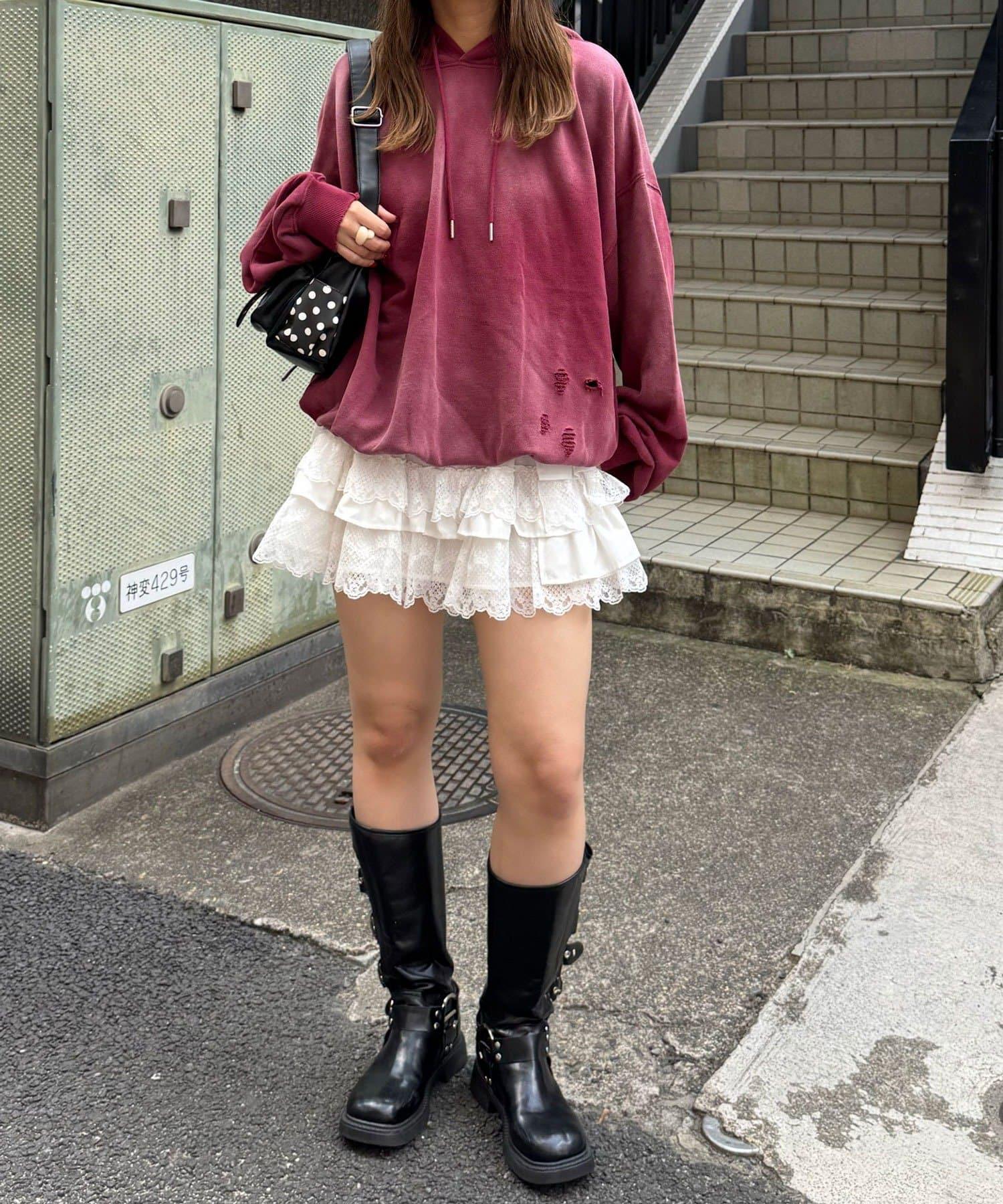 搭配蕾絲裙和配飾,完成舒適的混搭協調。