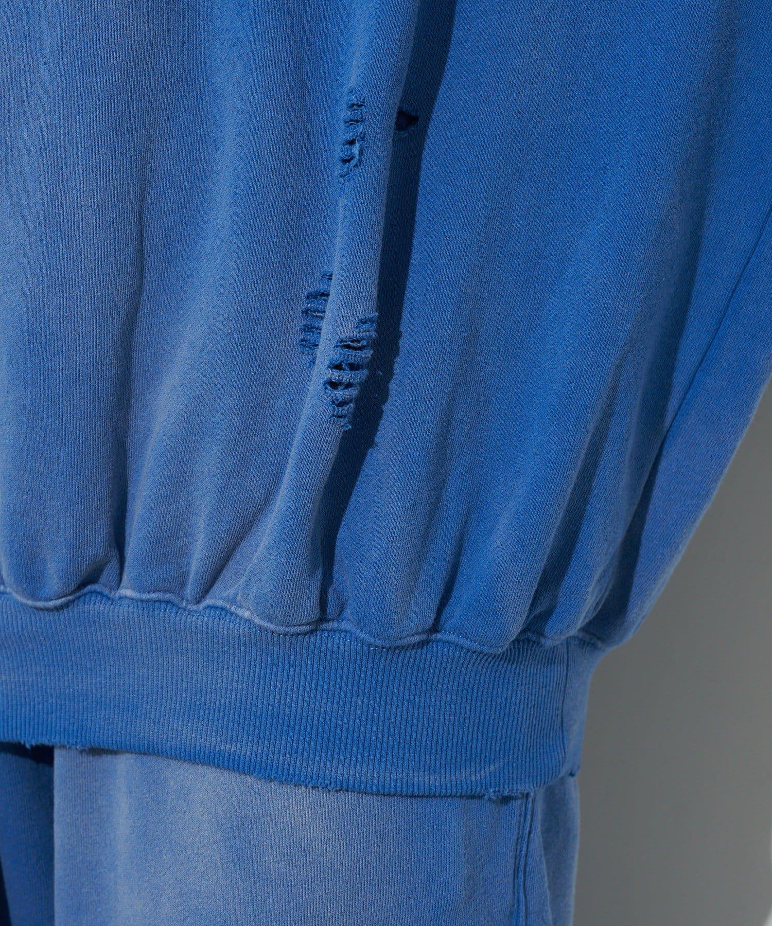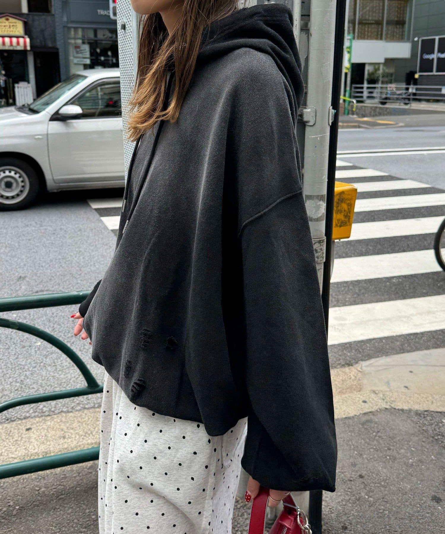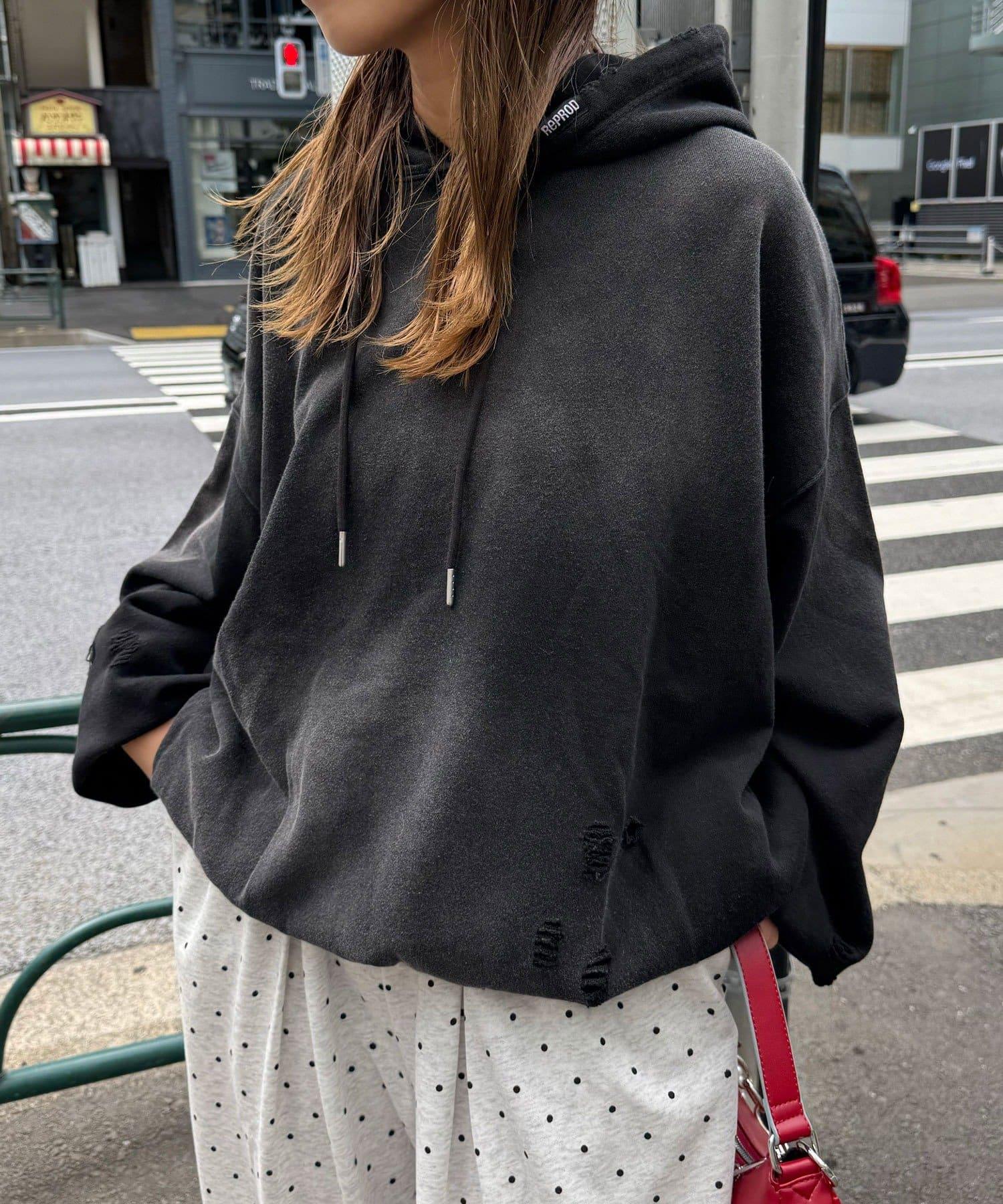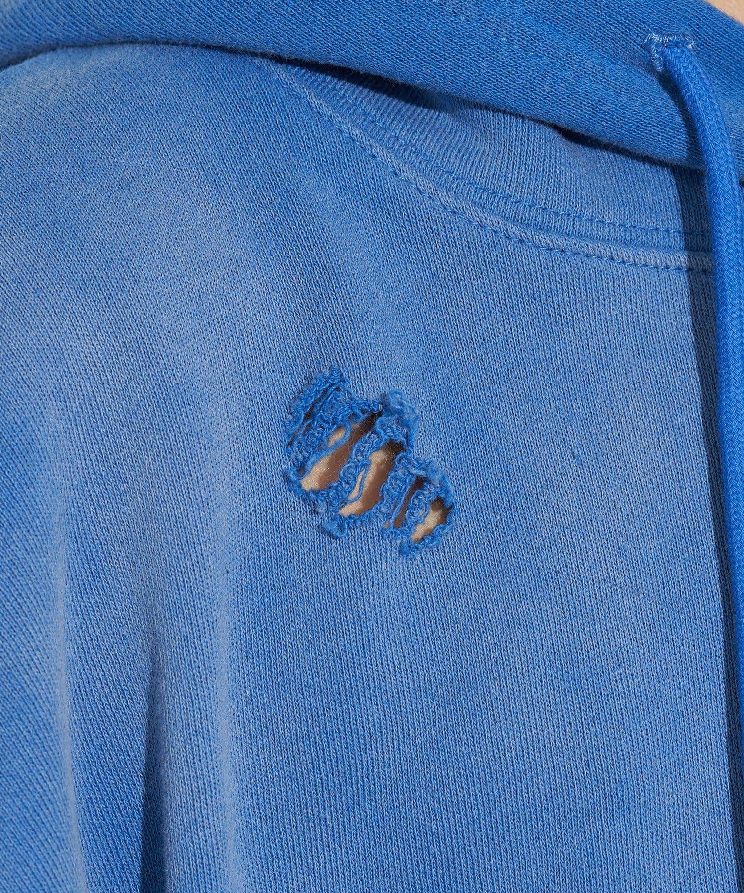 基本款褪色連帽衫,顏色褪色,表面破損。