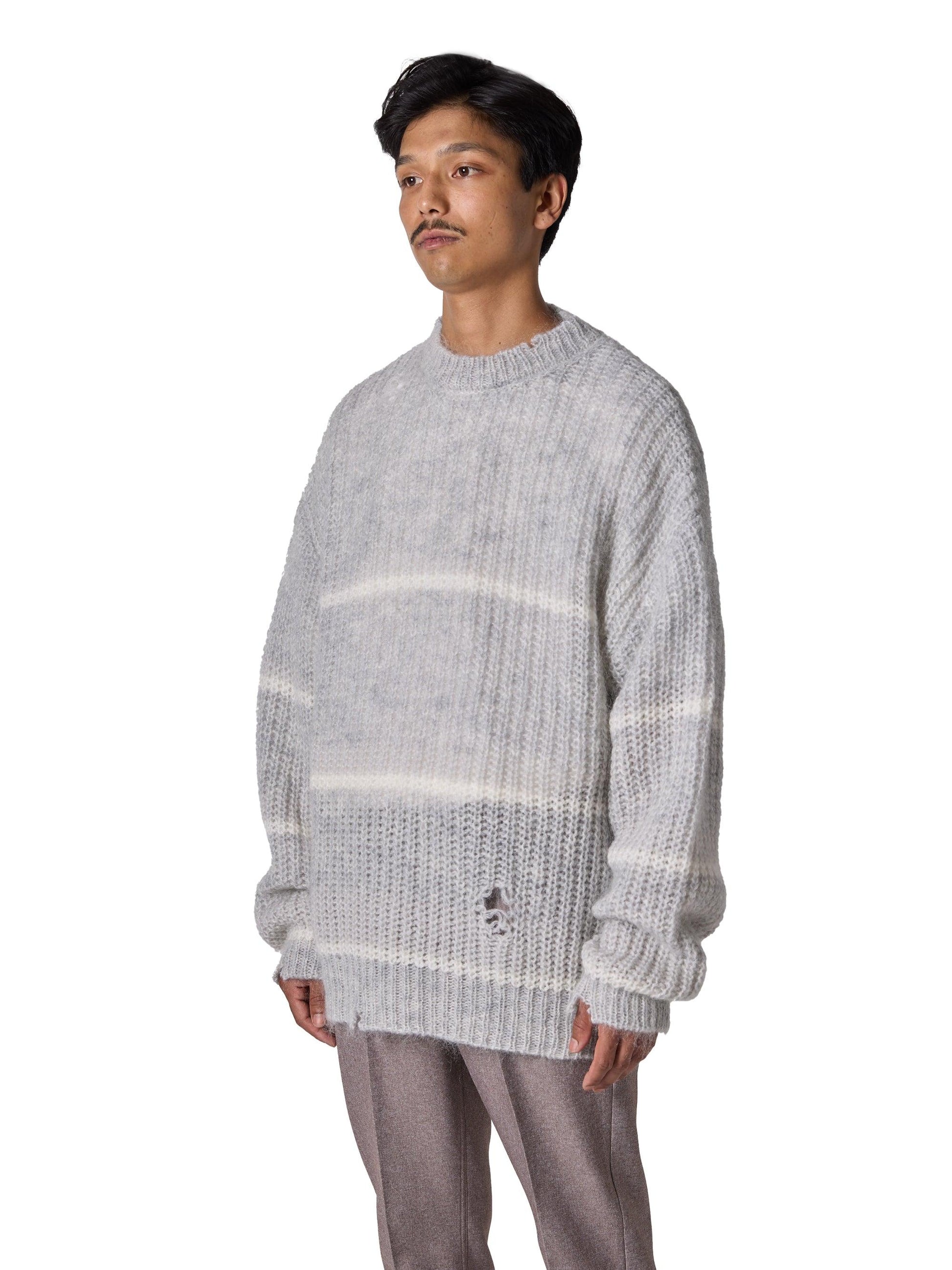 RESEARCHED BORDER SWEATER / MOHAIR MIX YARN