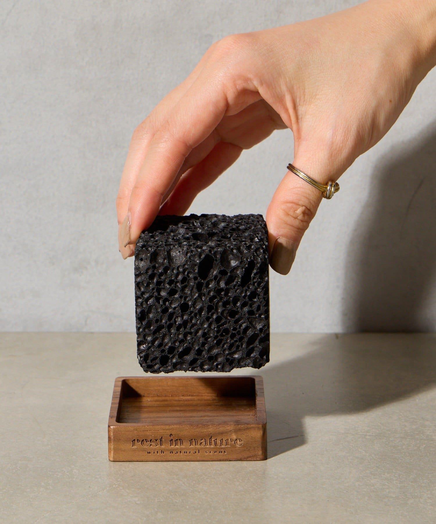 尺寸:火山石約 5 厘米(寬)x 5 厘米(深)x 5 厘米(高),木托盤約 6.5 厘米(寬)x 6.5 厘米(深)x 1.5 厘米(高)。