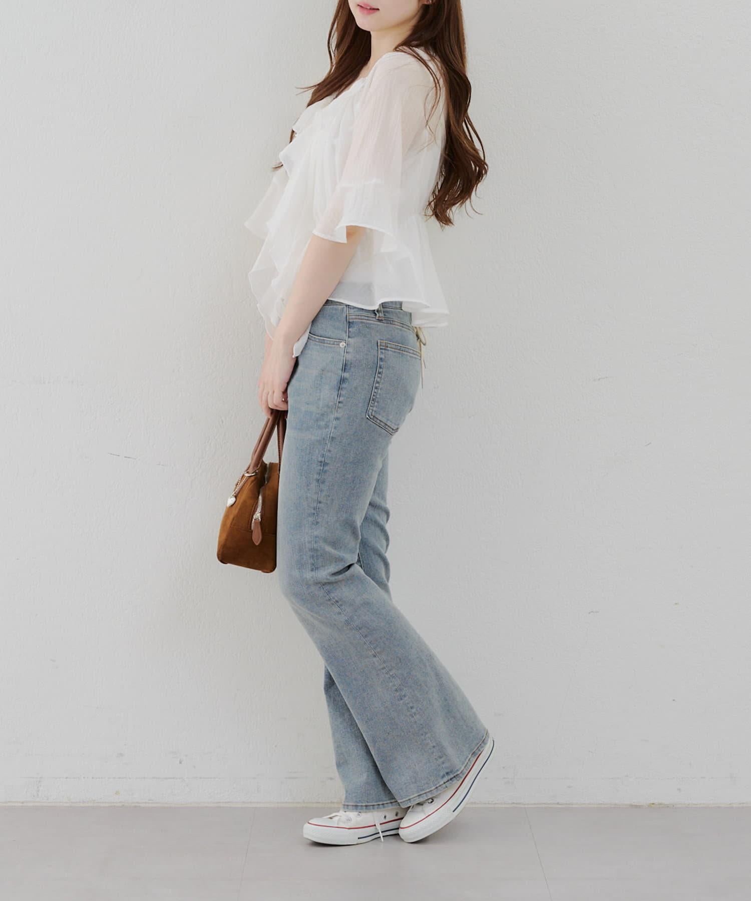 喇叭形的牛仔布有適度的空間,讓你更有型。