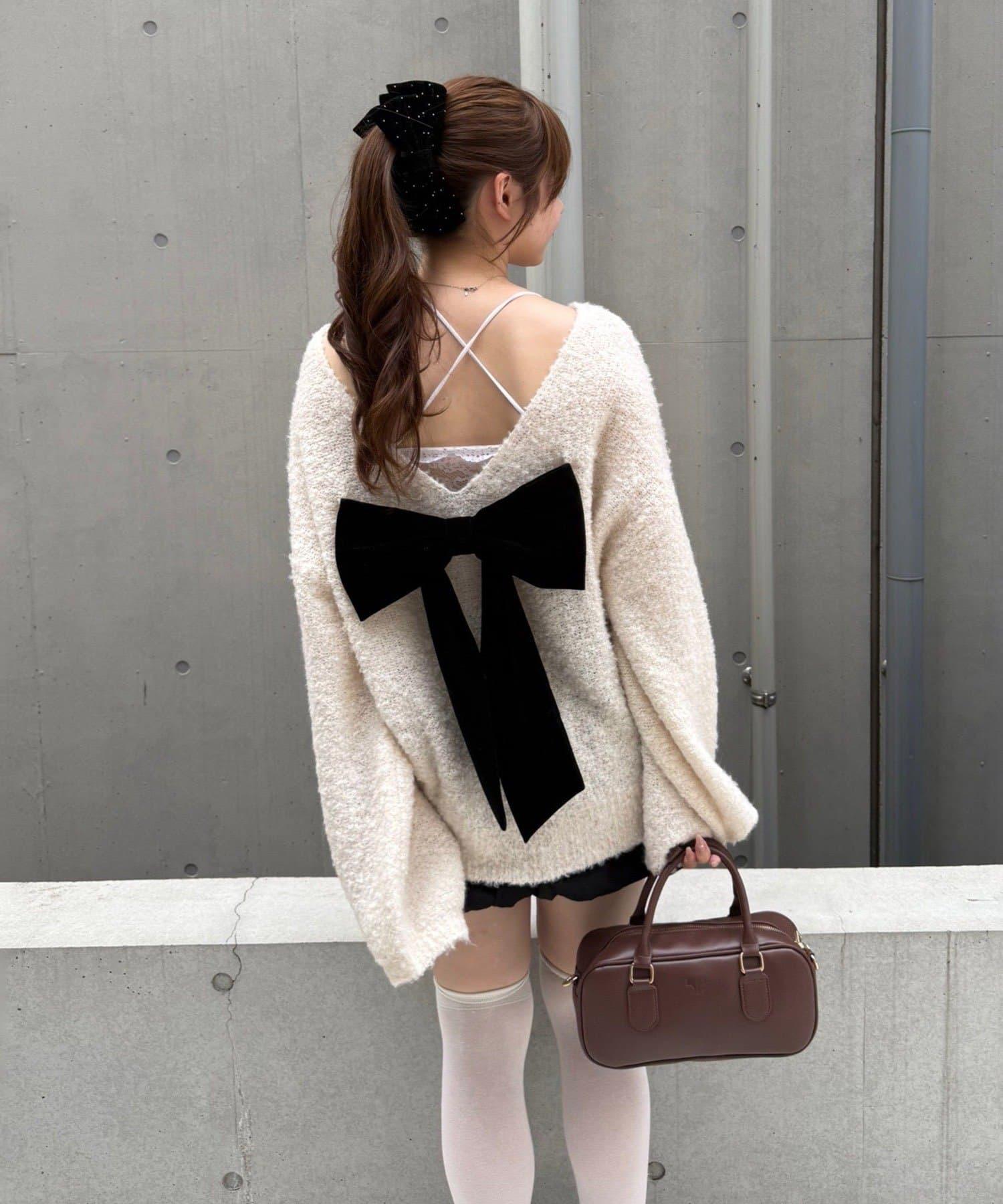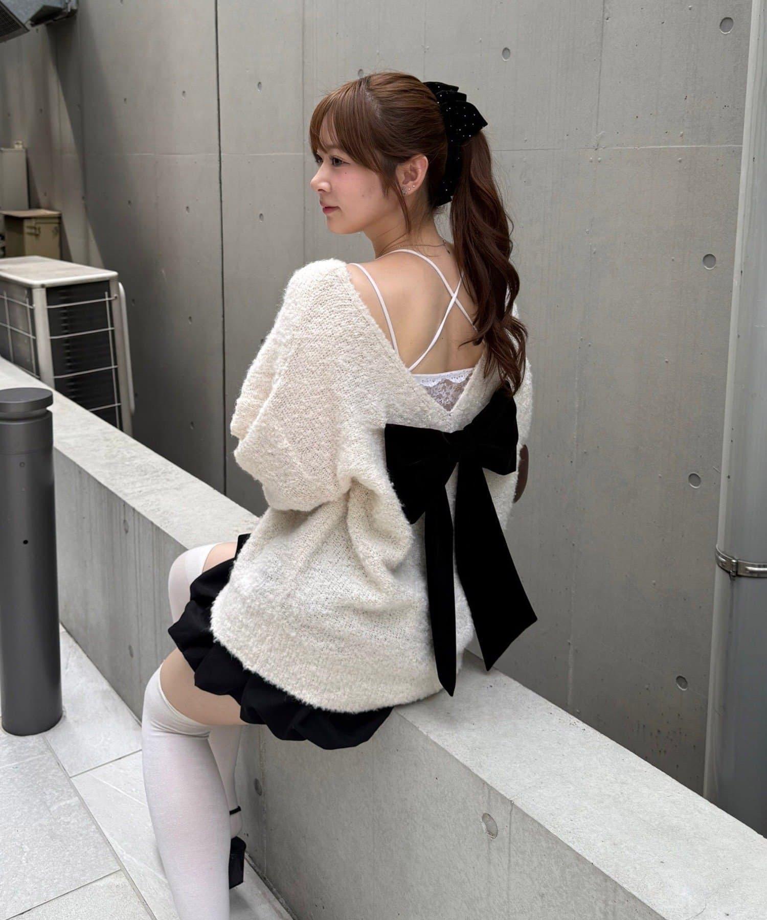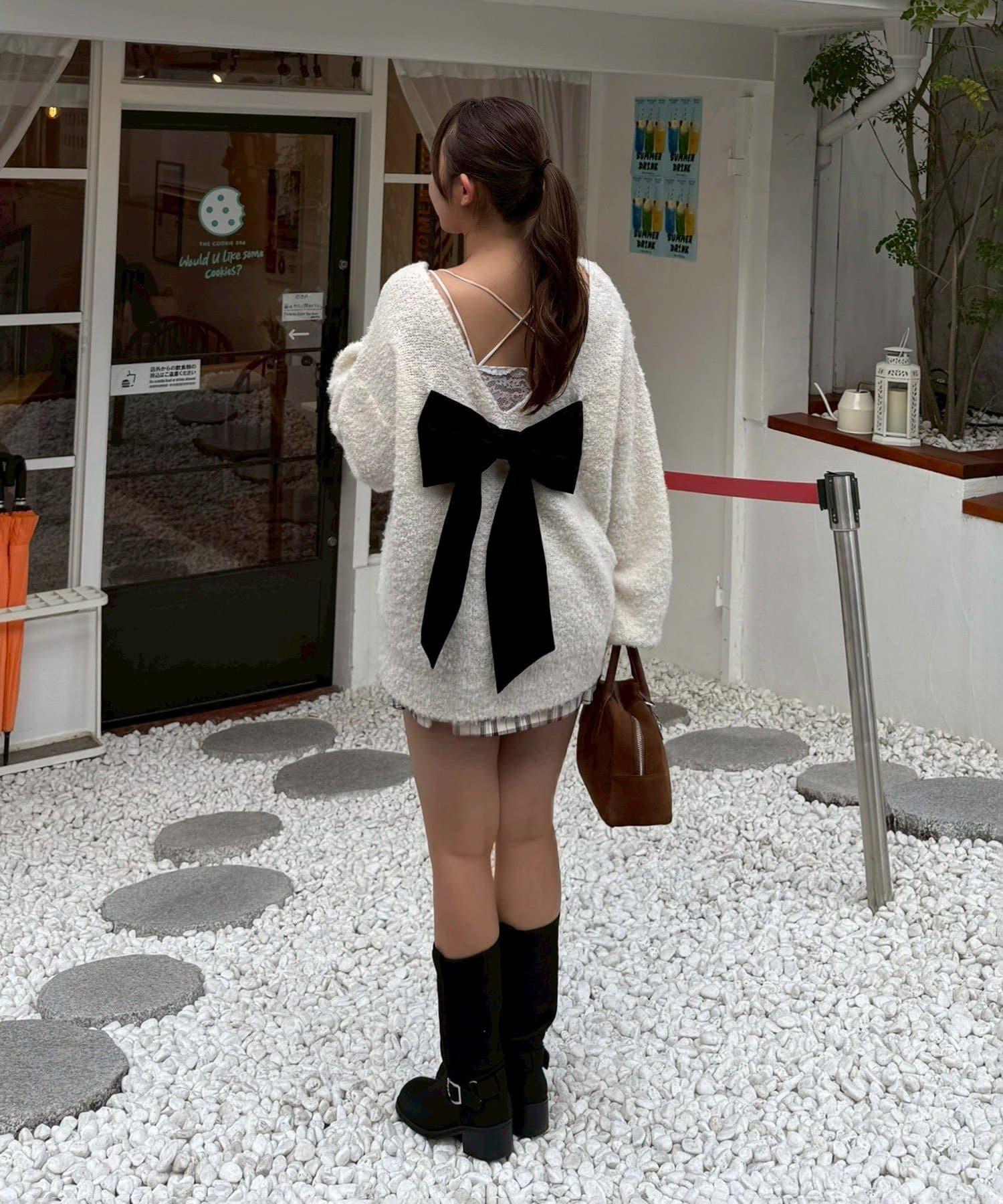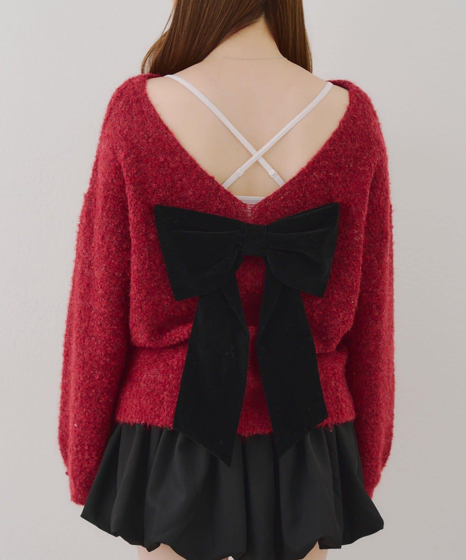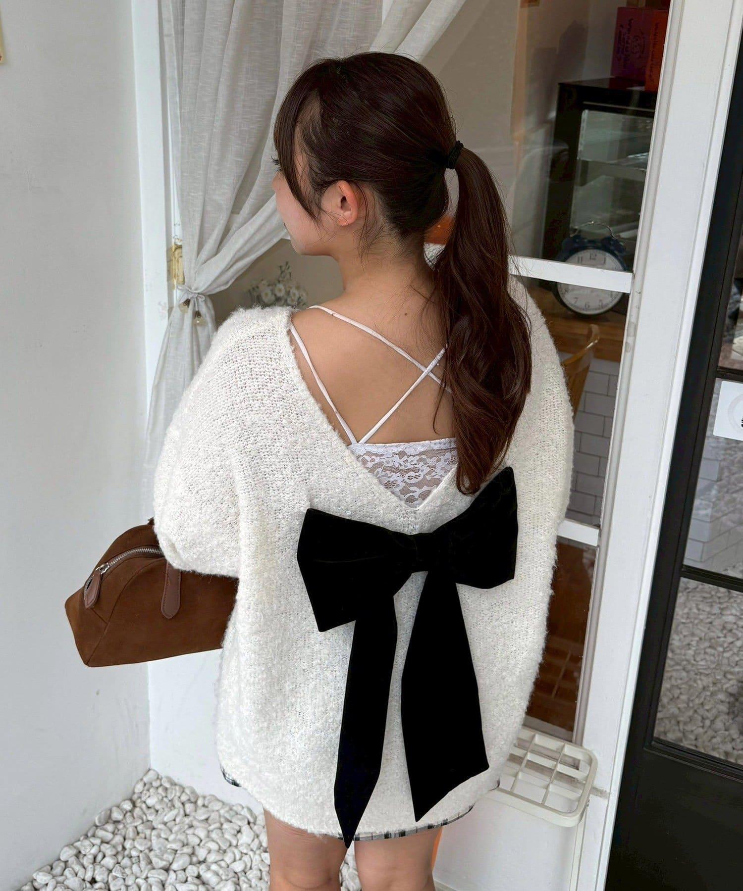 【Ribbon Collection】後背天鵝絨蝴蝶結針織衫