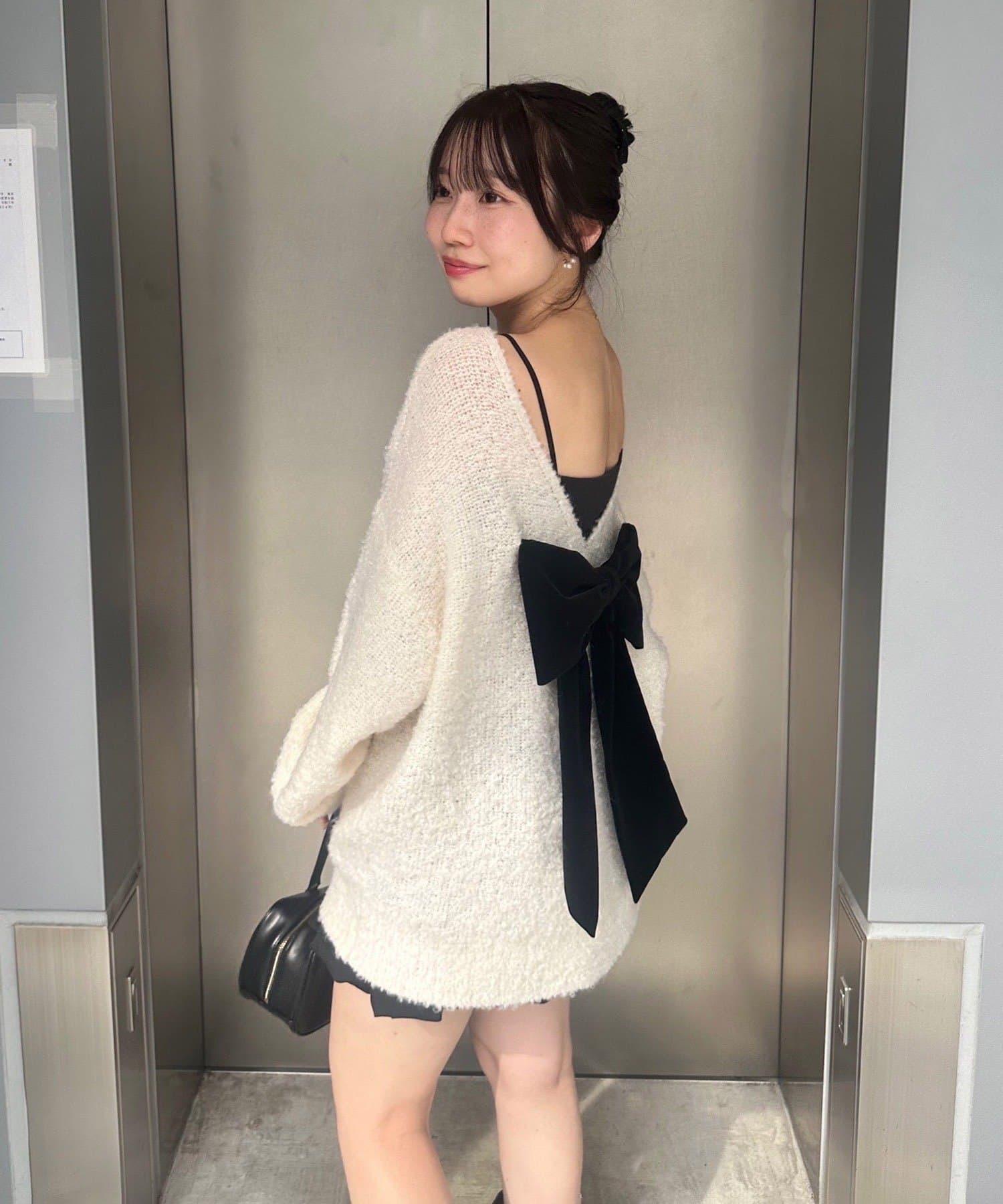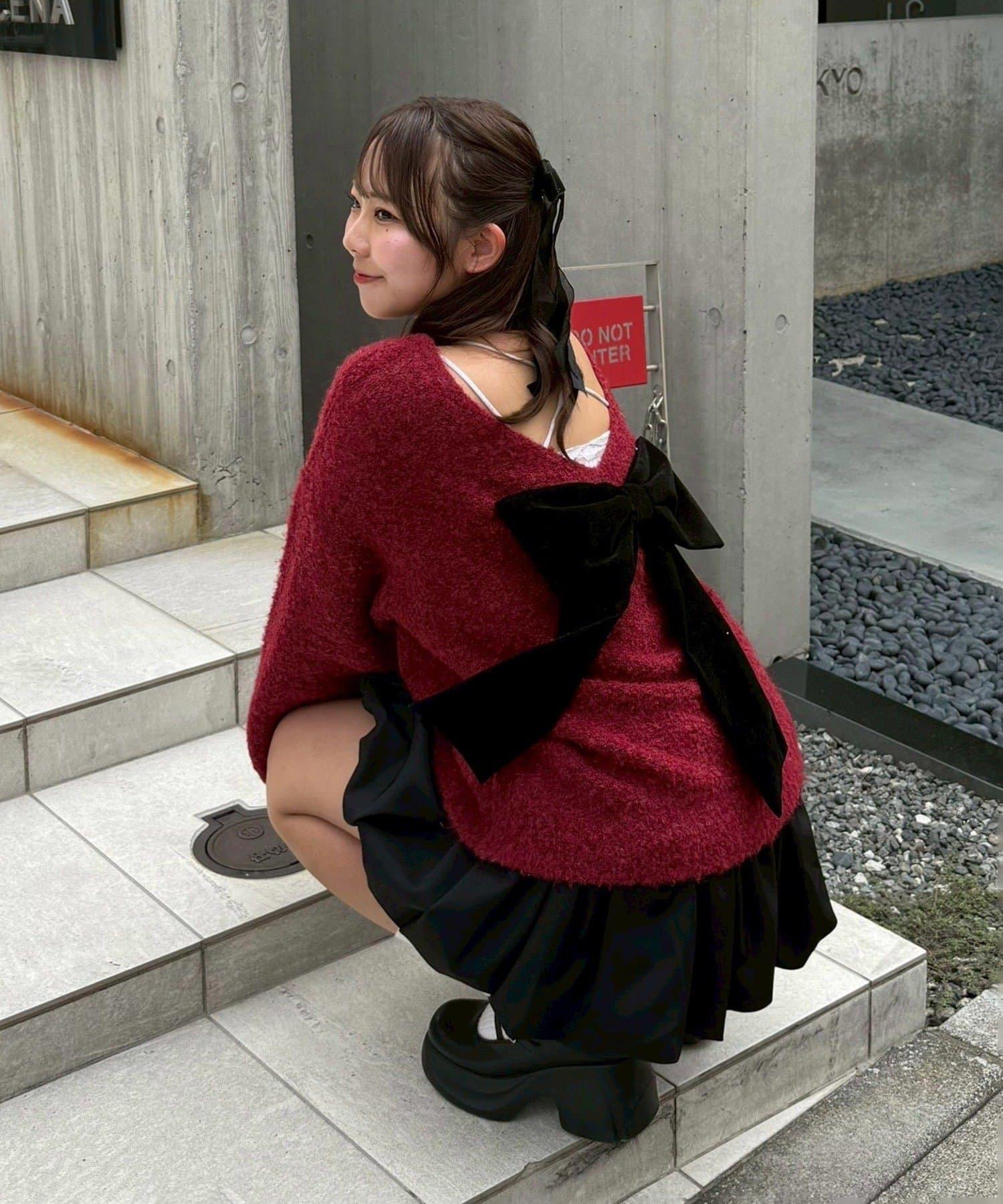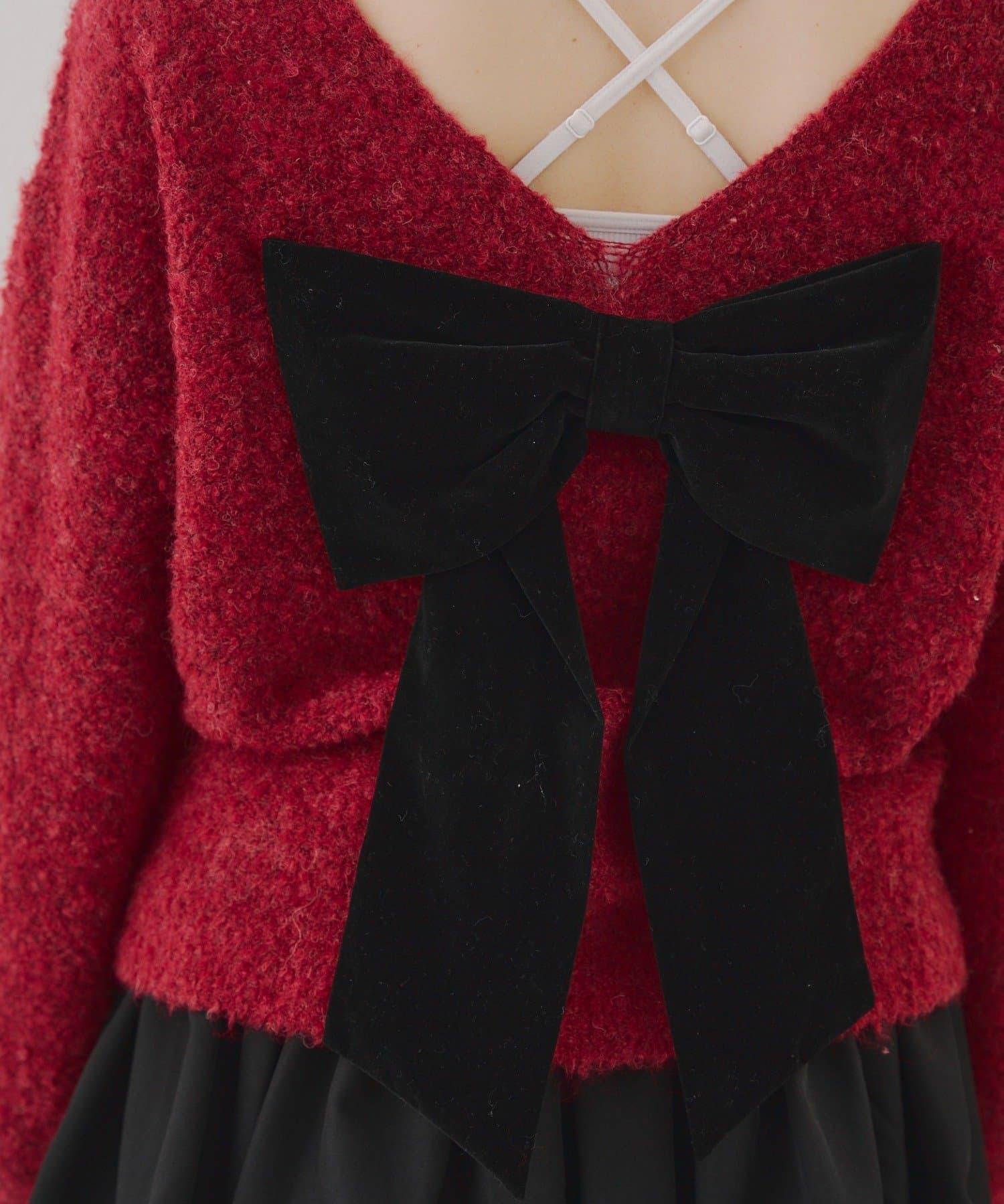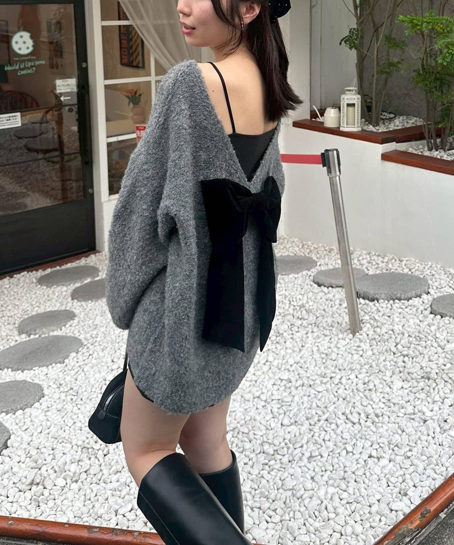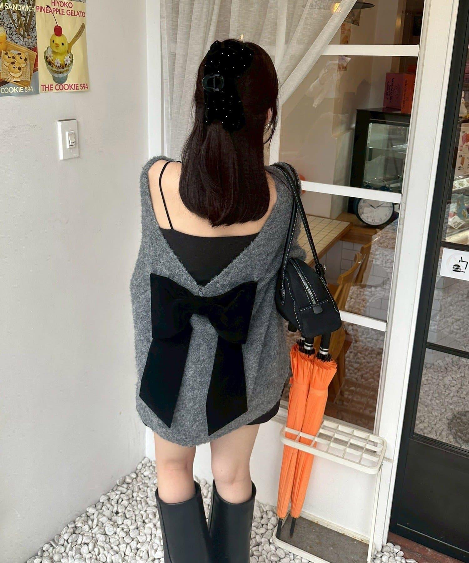 【Ribbon Collection】後背天鵝絨蝴蝶結針織衫