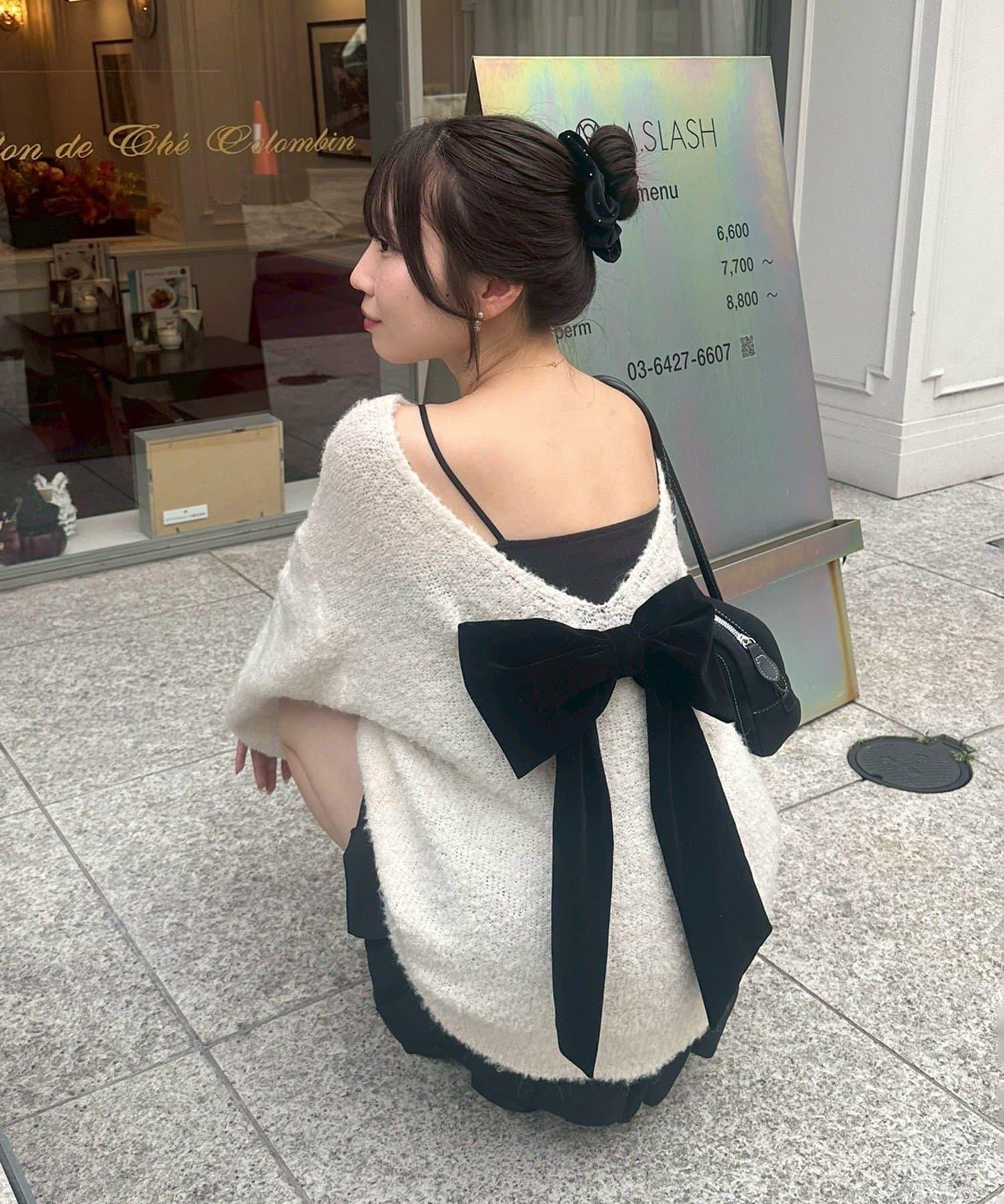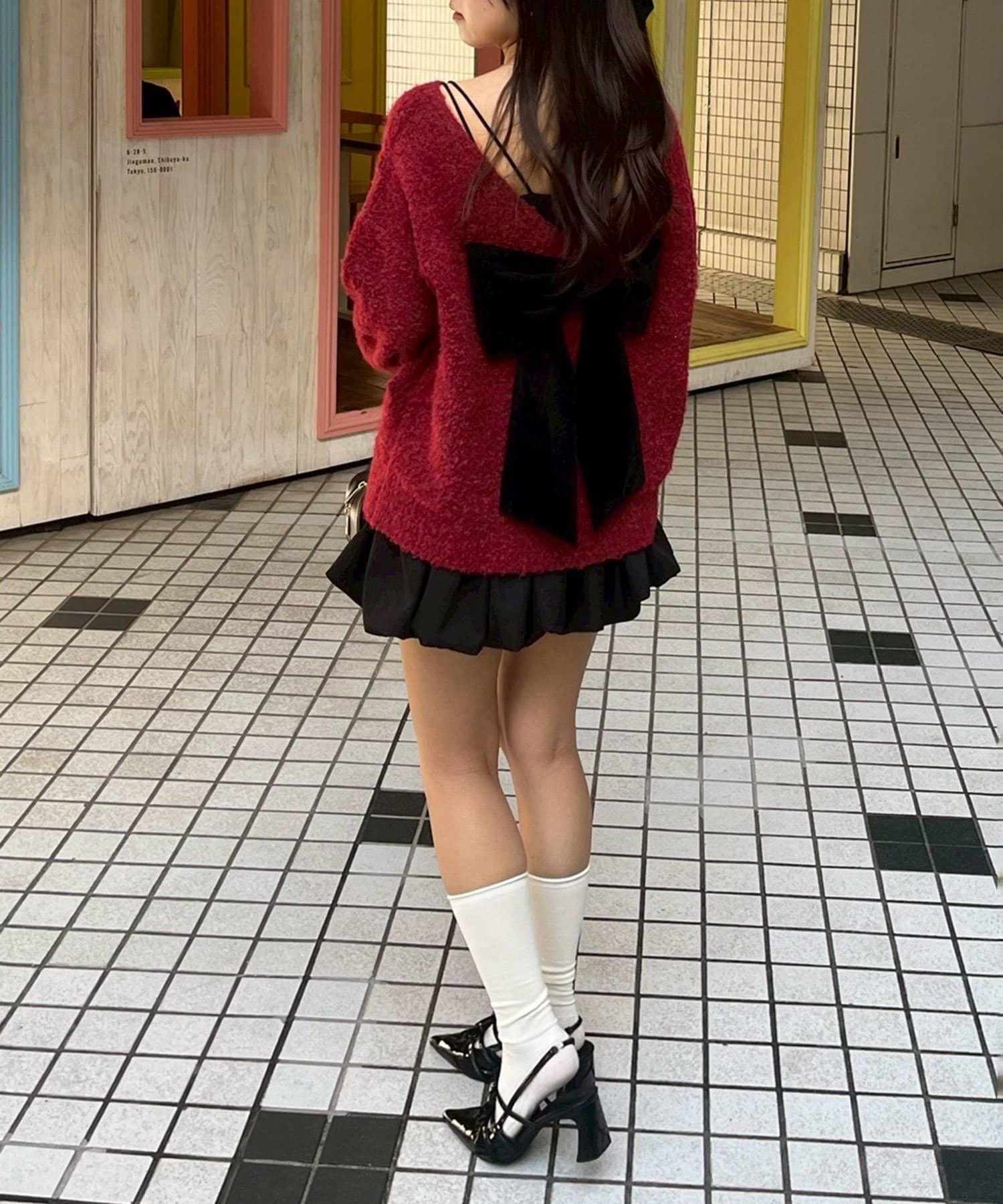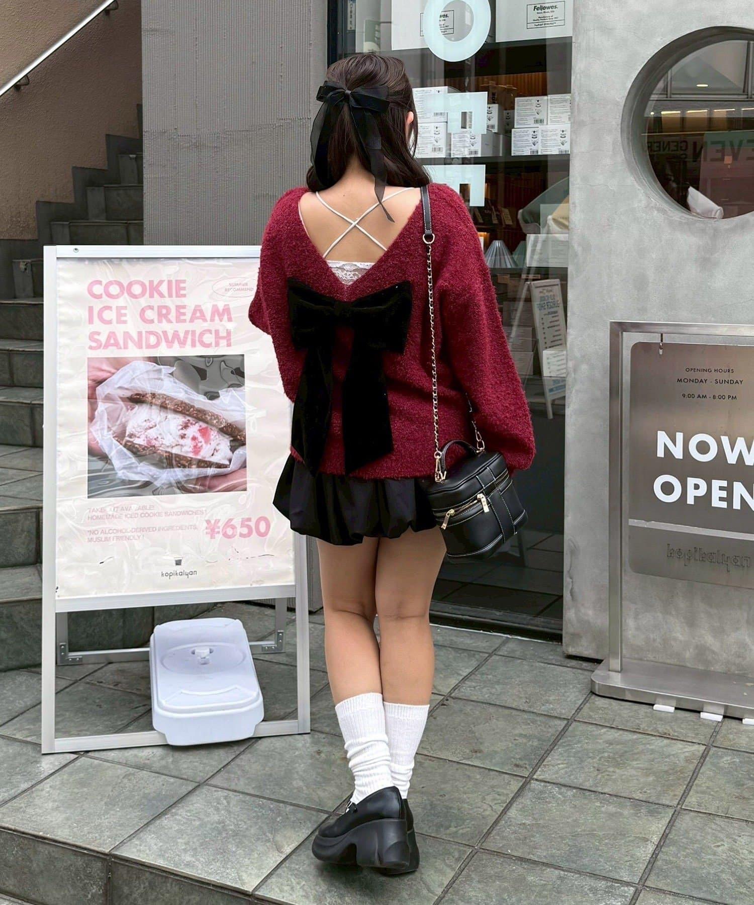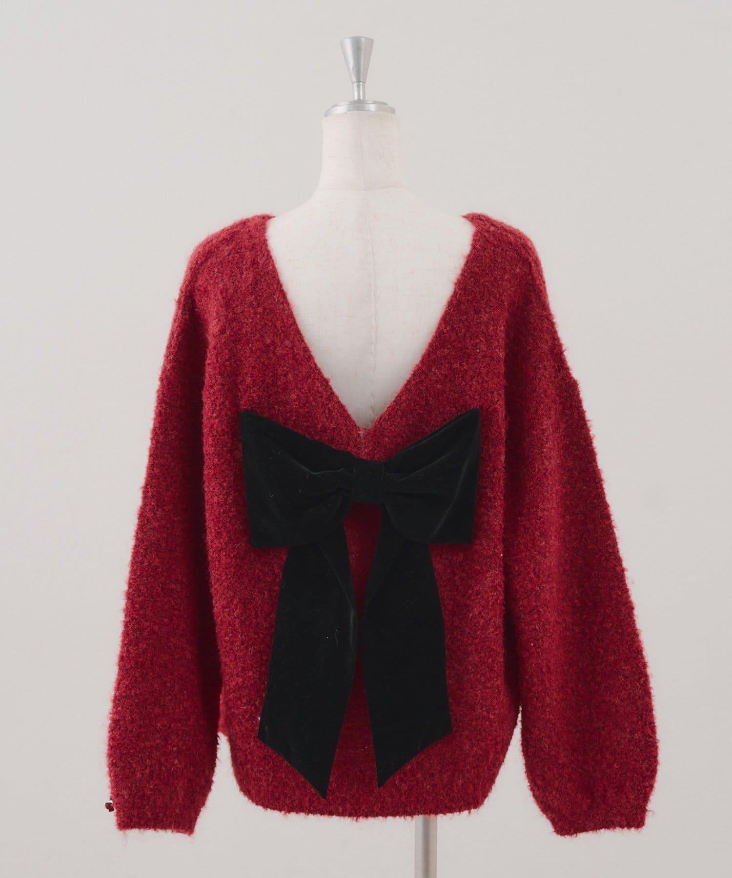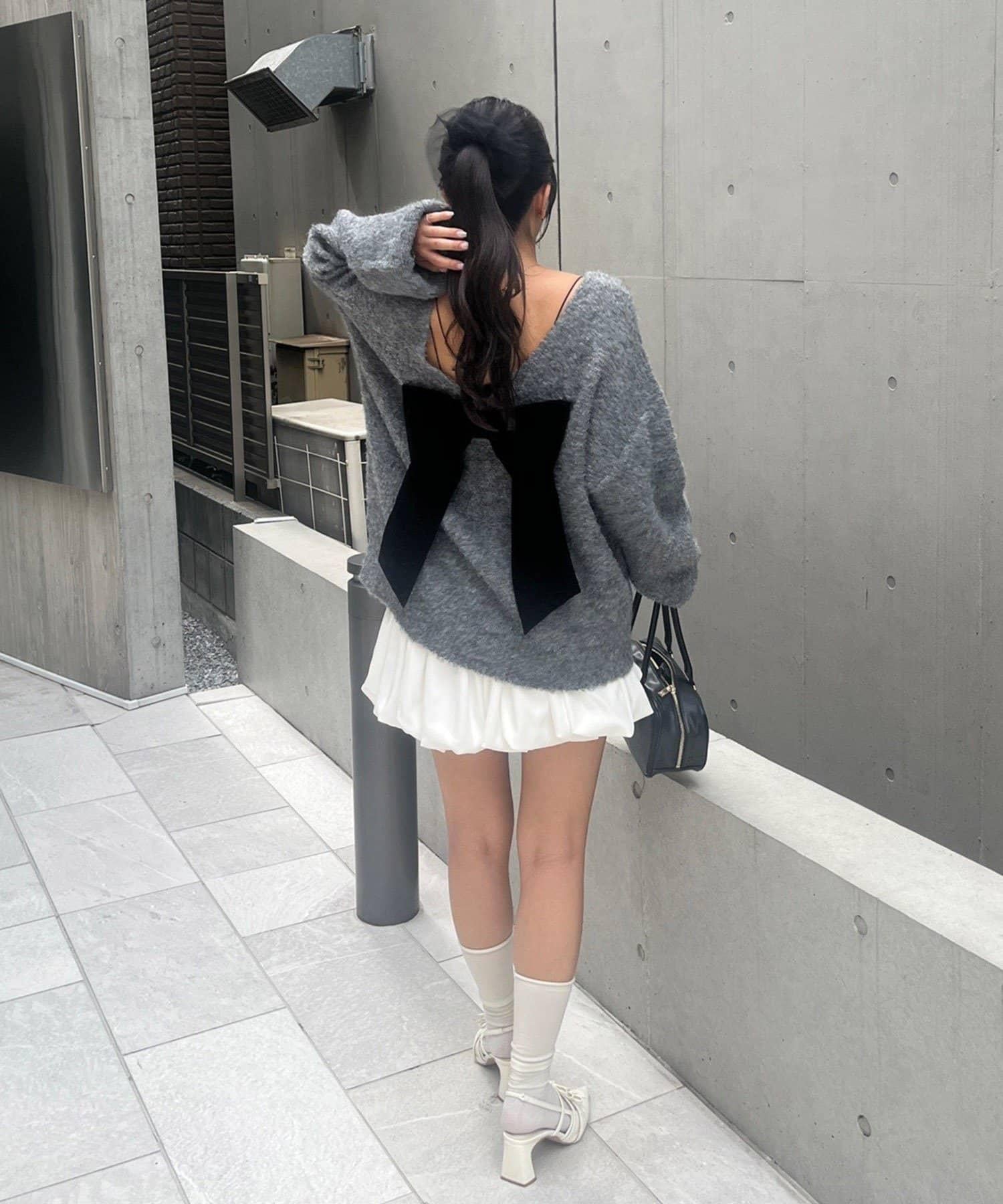 【Ribbon Collection】後背天鵝絨蝴蝶結針織衫