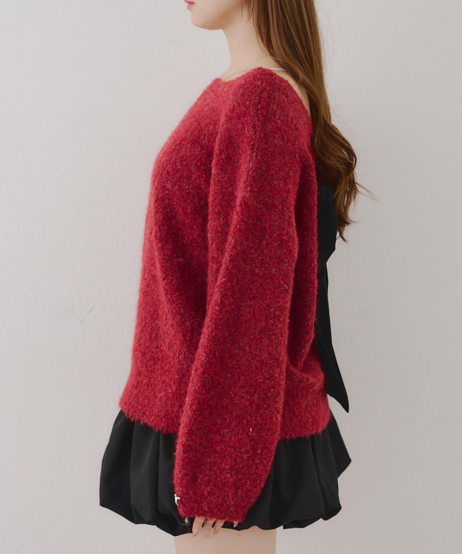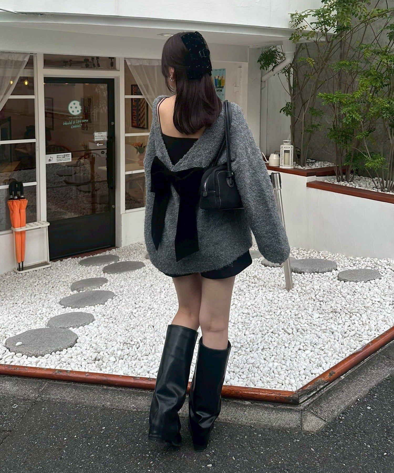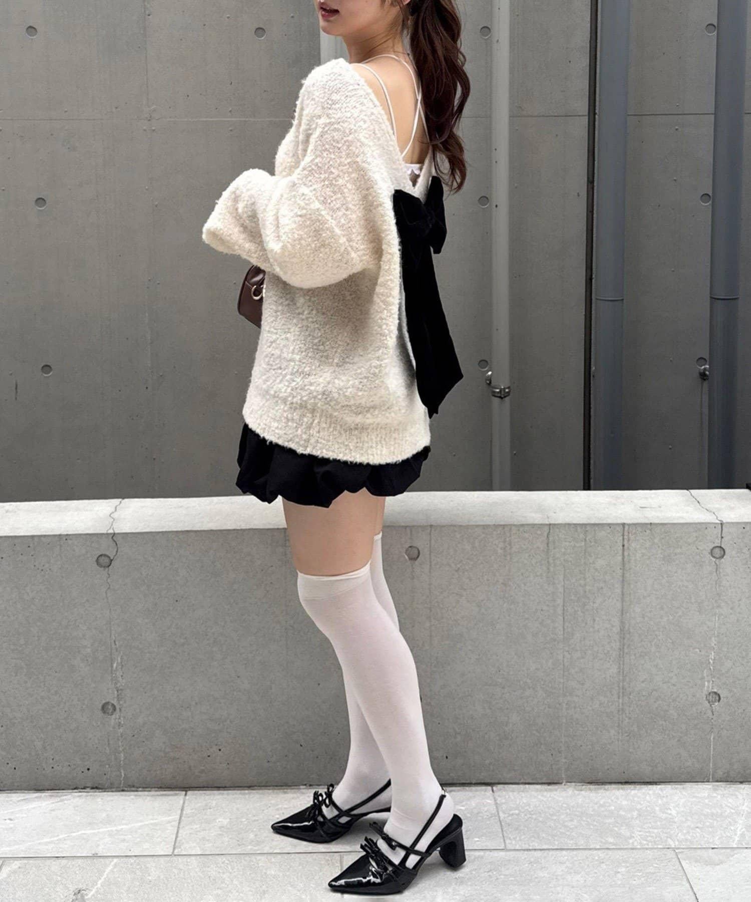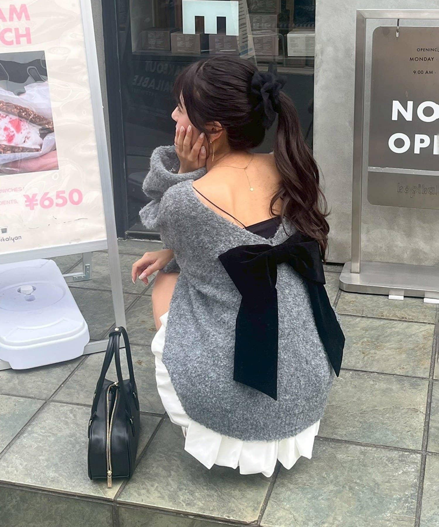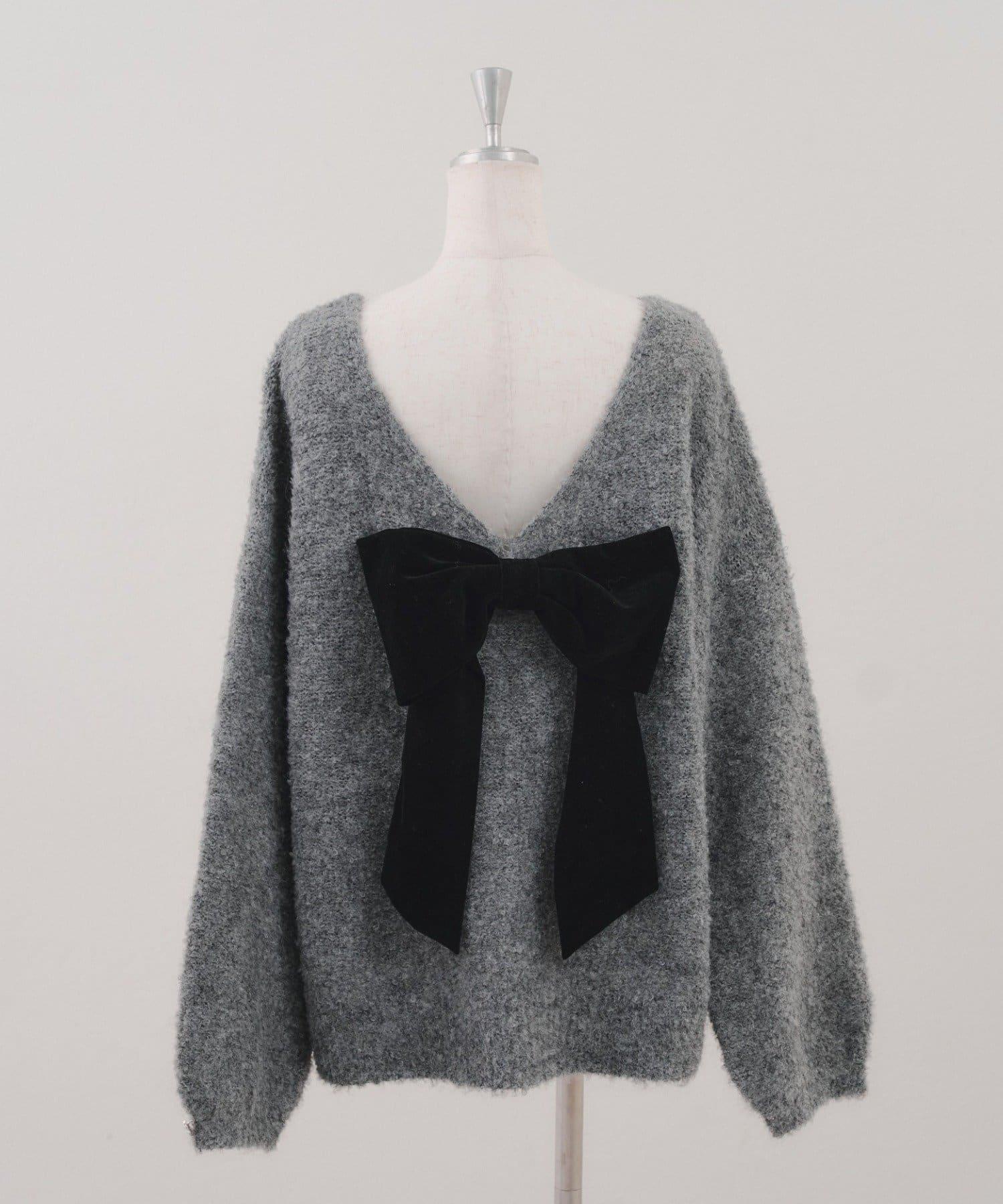 【Ribbon Collection】後背天鵝絨蝴蝶結針織衫