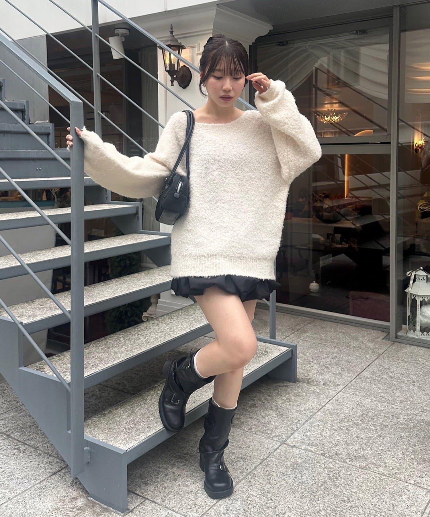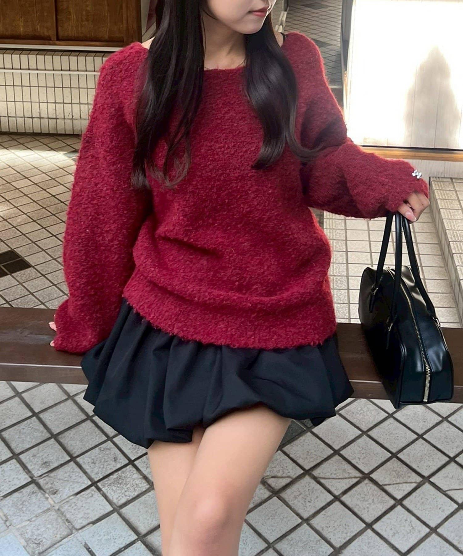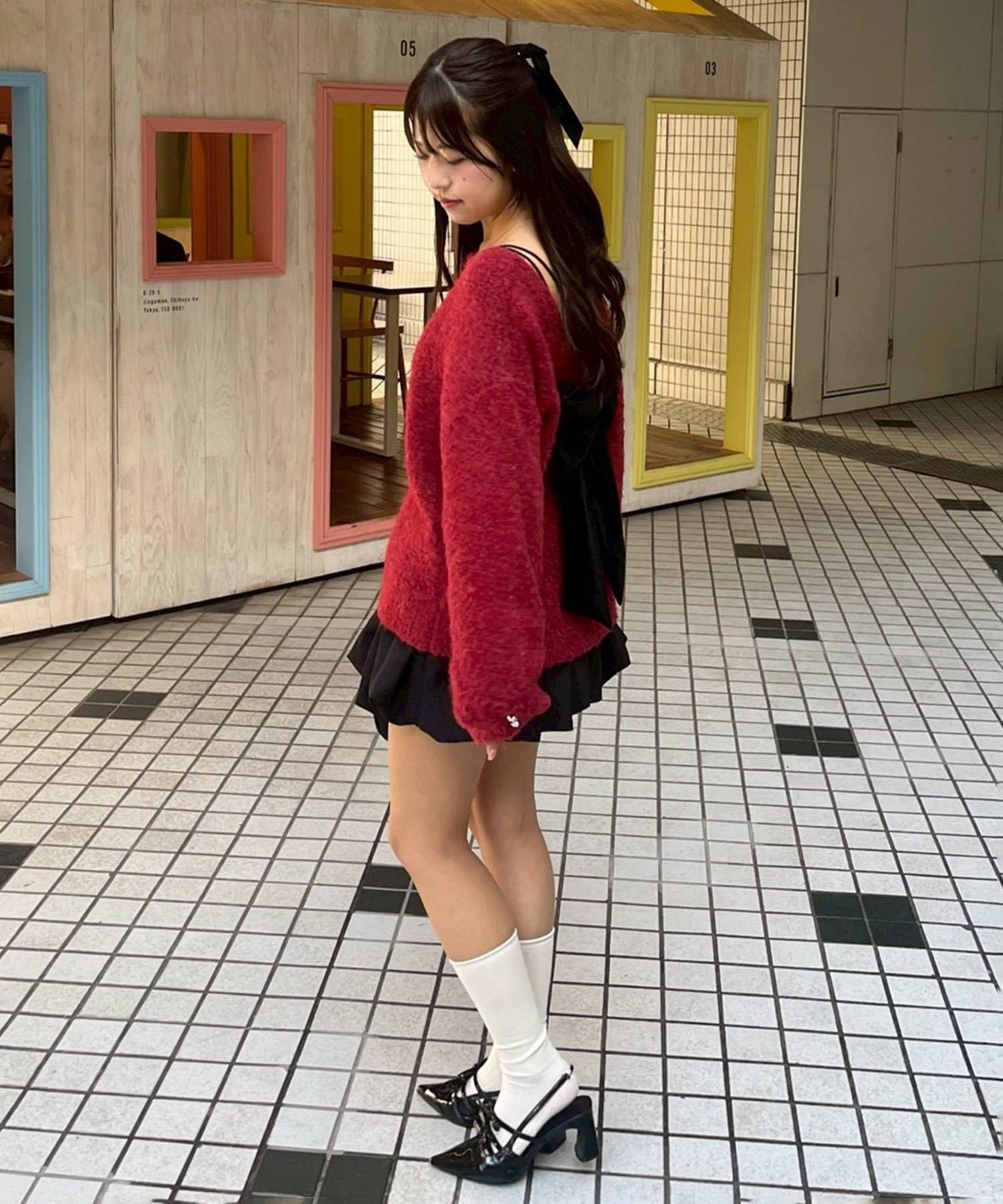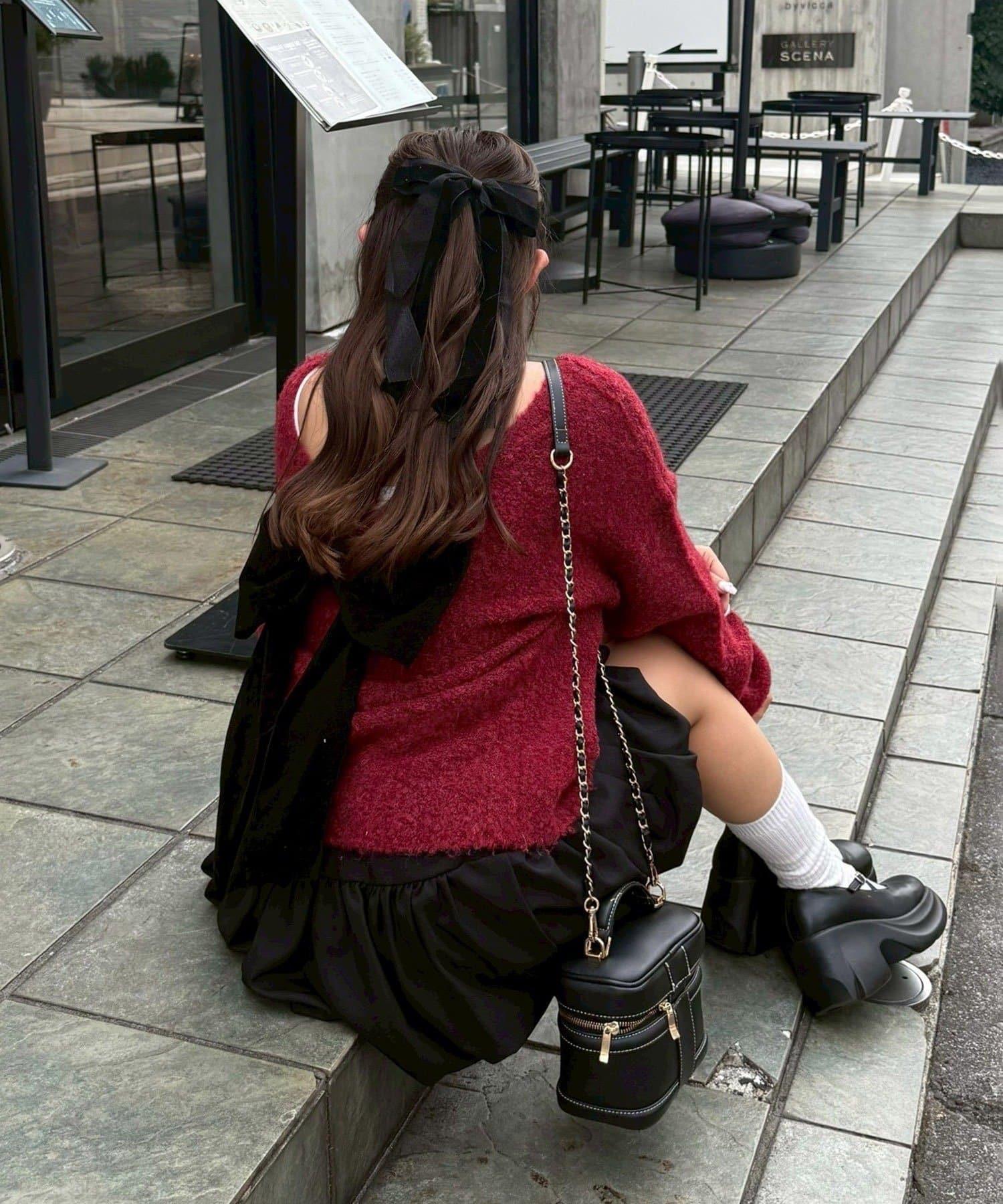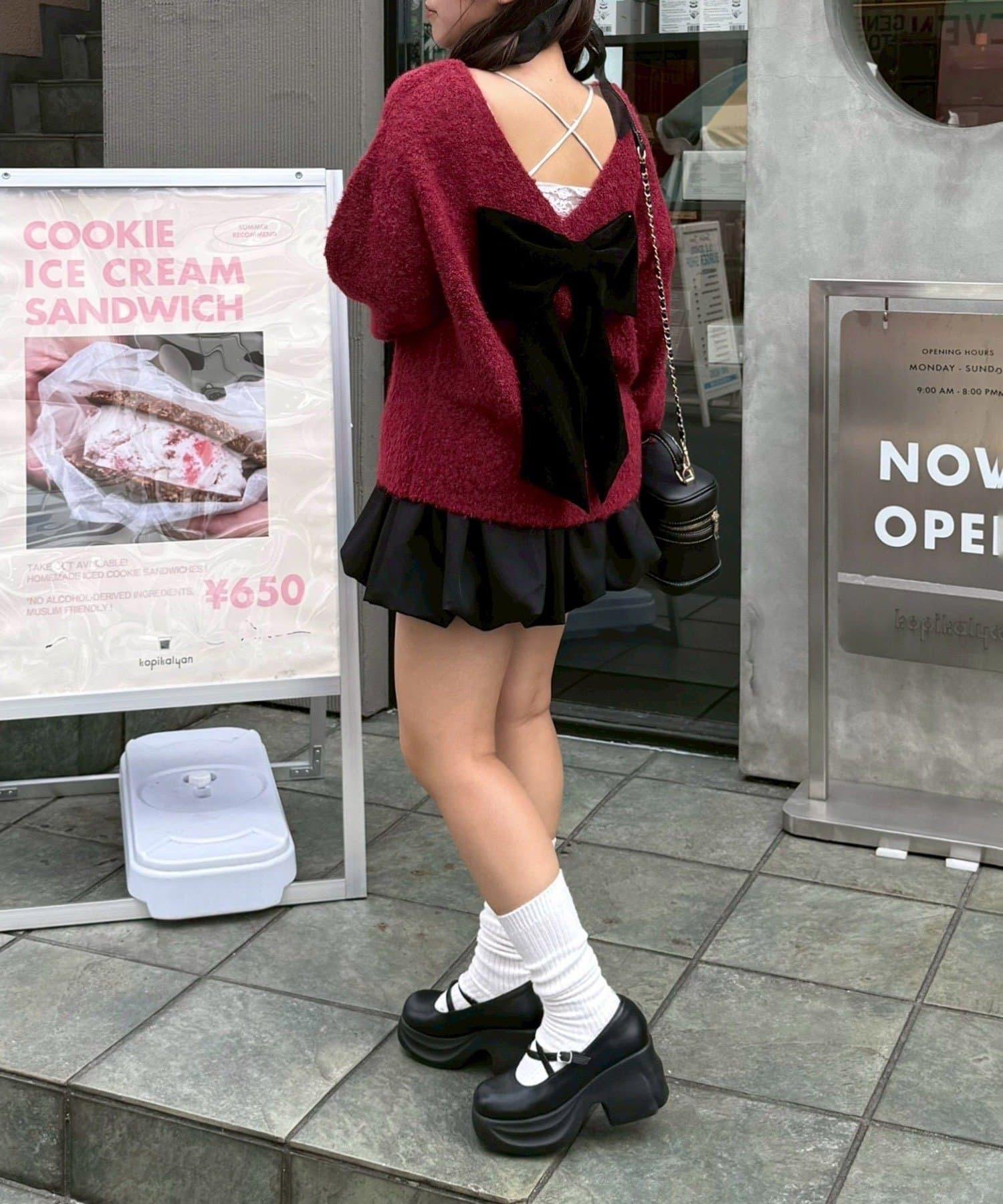 【Ribbon Collection】後背天鵝絨蝴蝶結針織衫