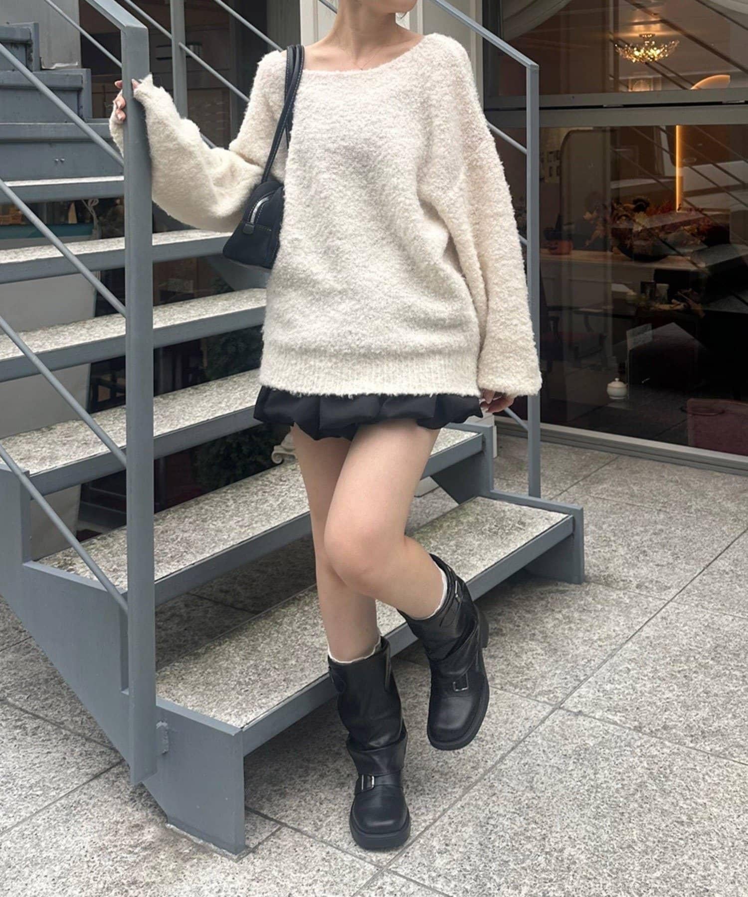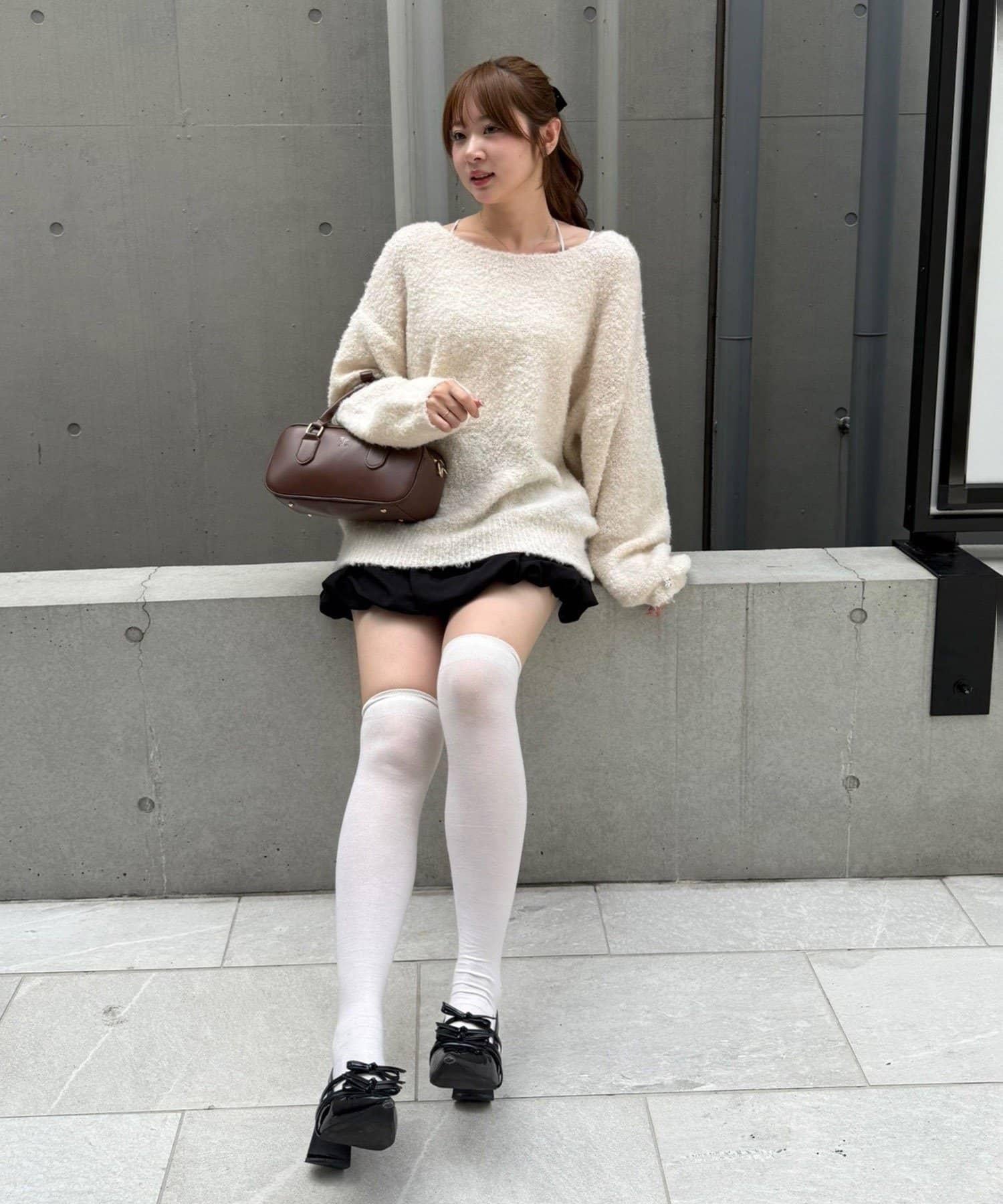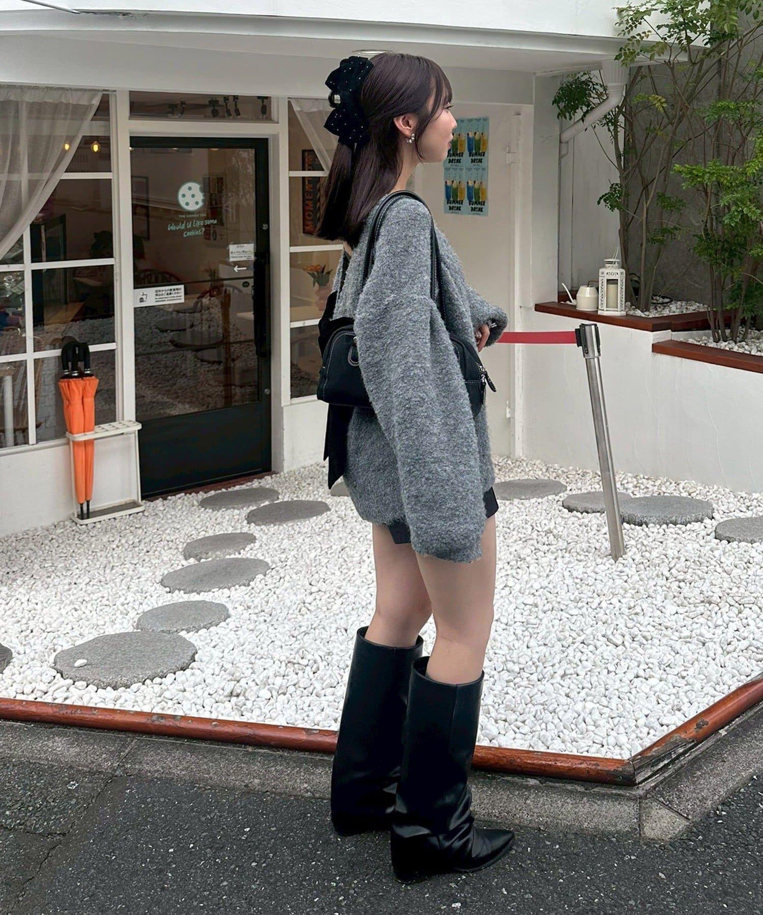 搭配迷你打底褲和長筒靴,盡顯少女氣息。