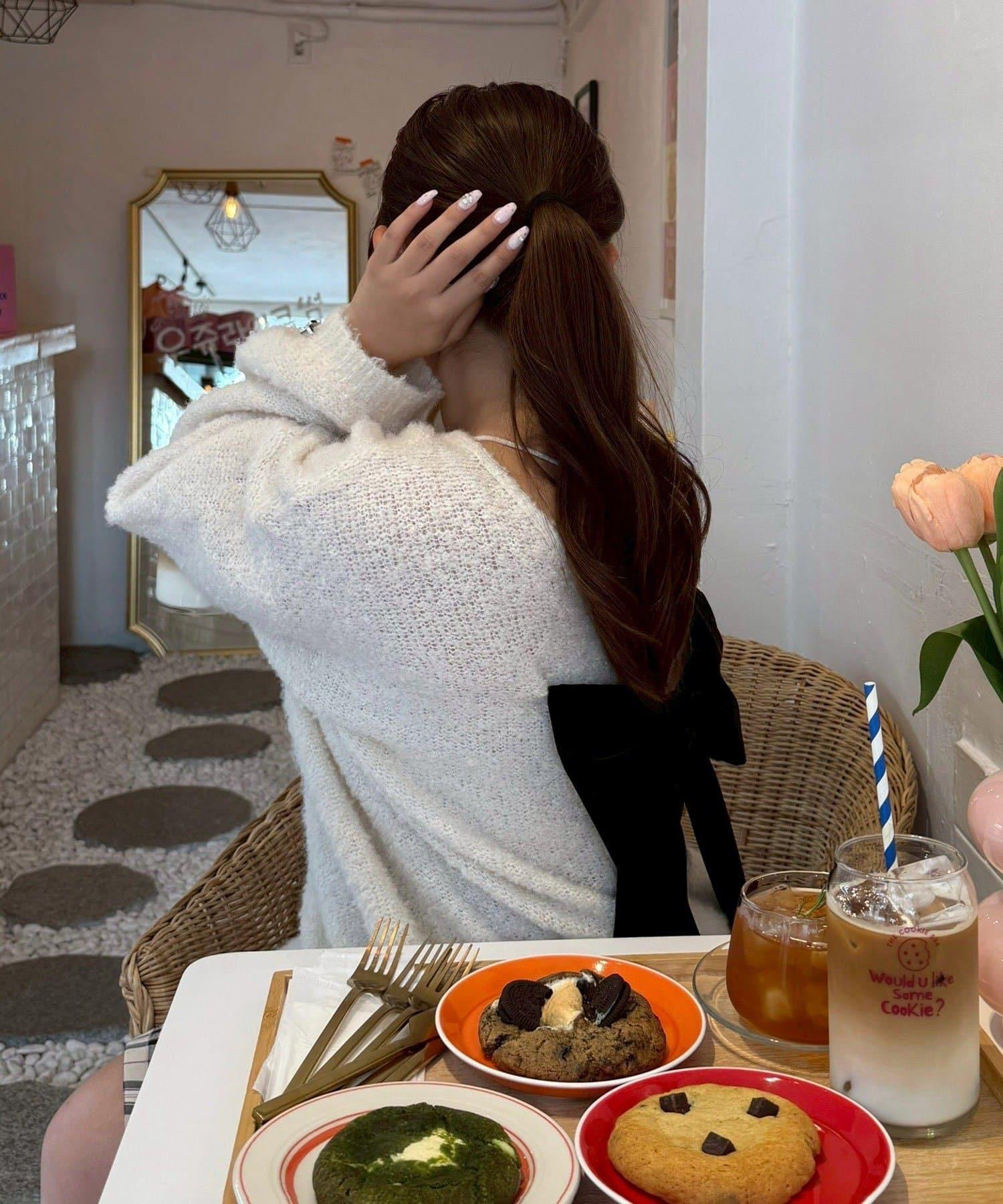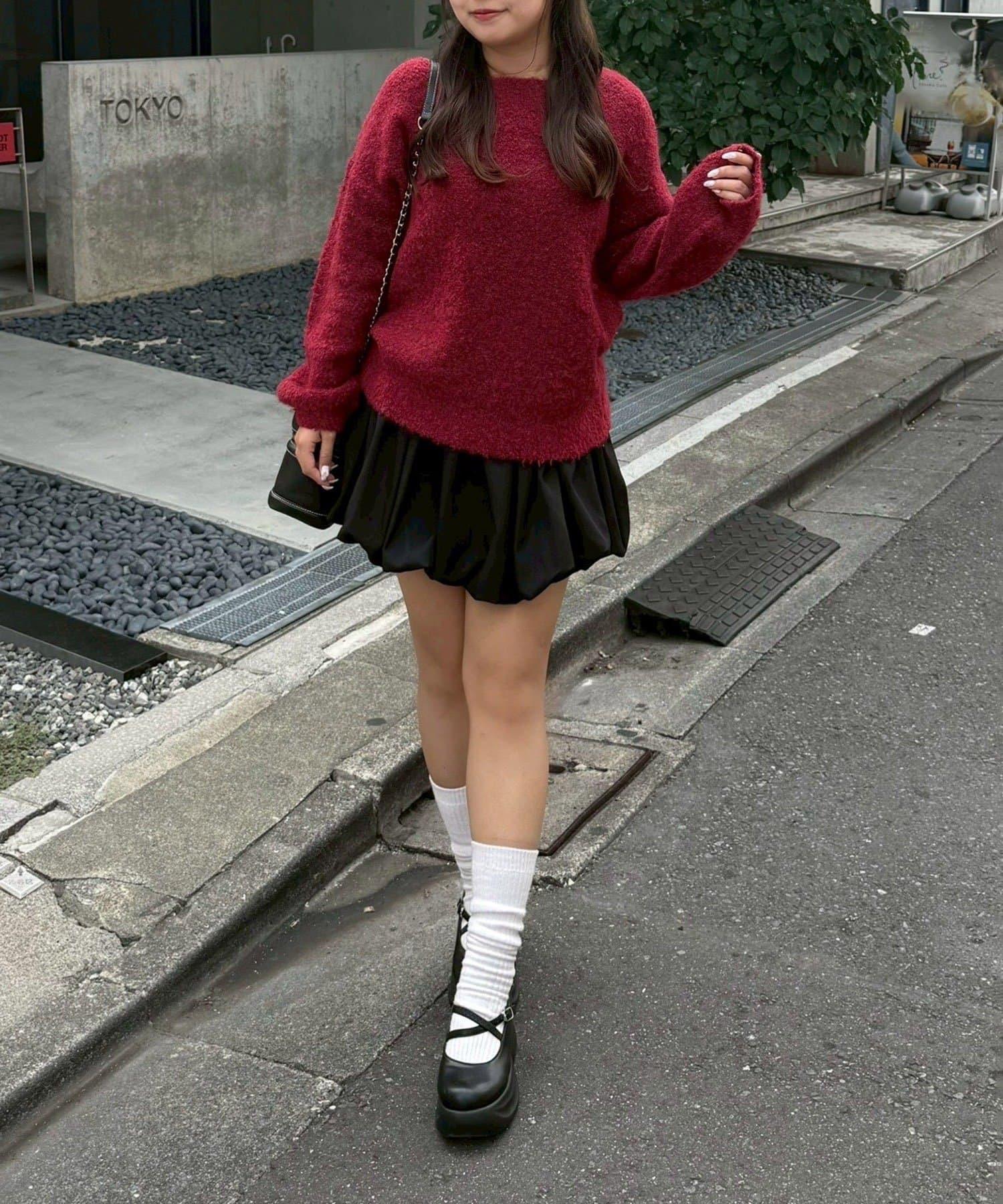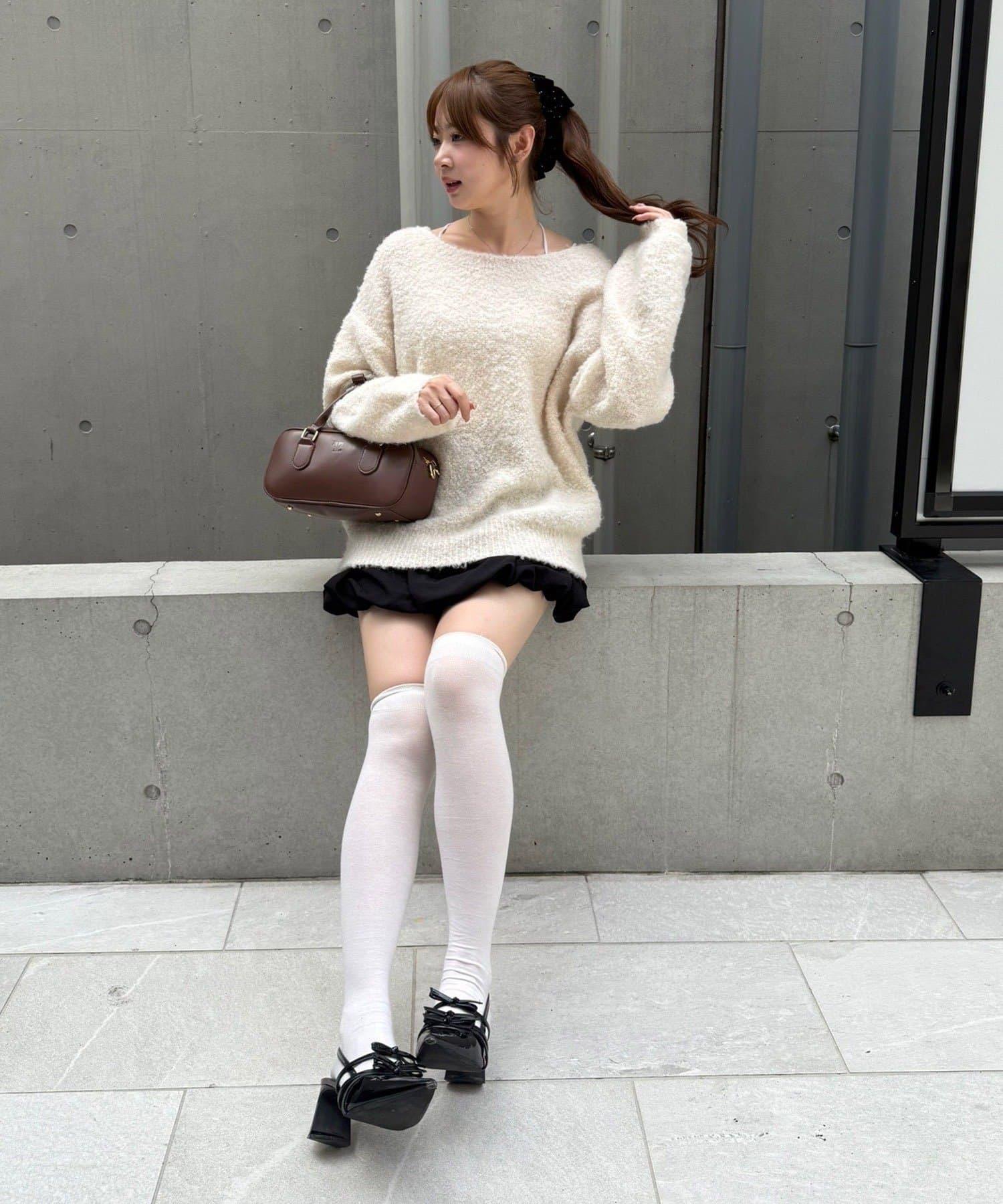 搭配迷你打底褲和長筒靴,盡顯少女氣息。