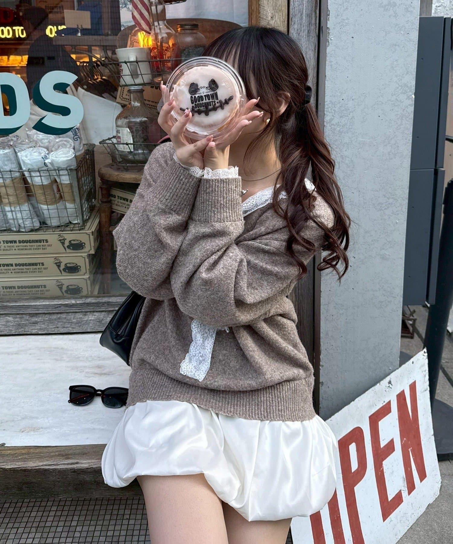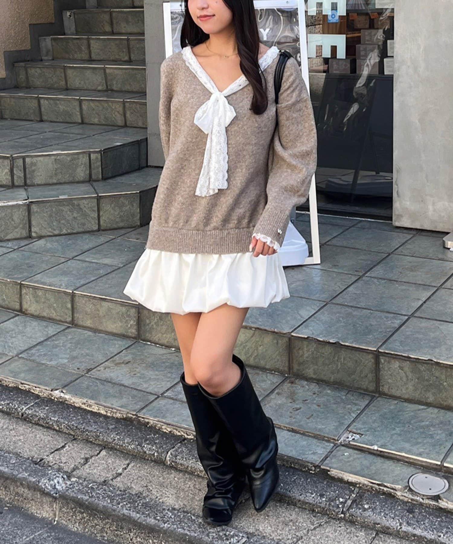 【Ribbon Collection】蕾絲拼接泡泡袖迷你連衣裙