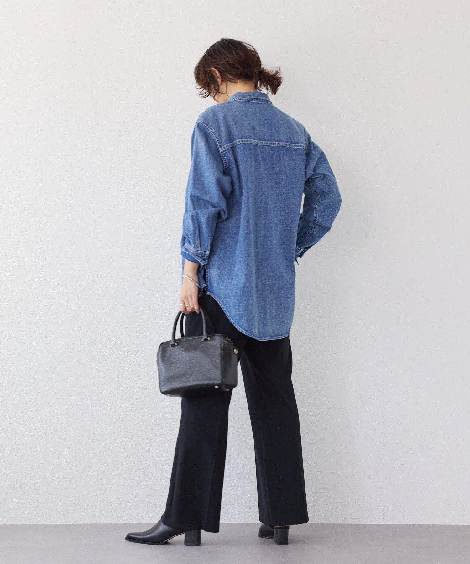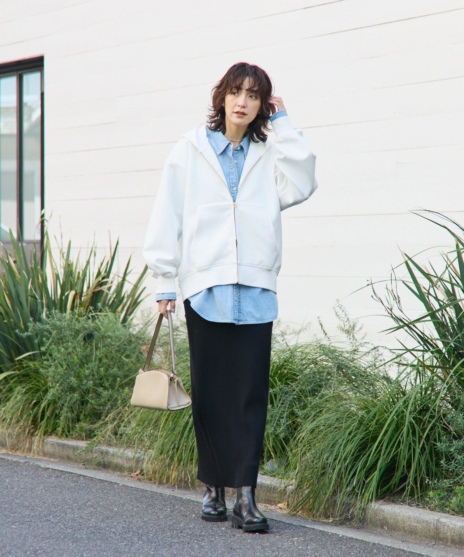 儘管長度較長,但通過增加前後的長度差,以及在兩側增加長開衩,使設計具有簡潔、寬鬆的感覺。