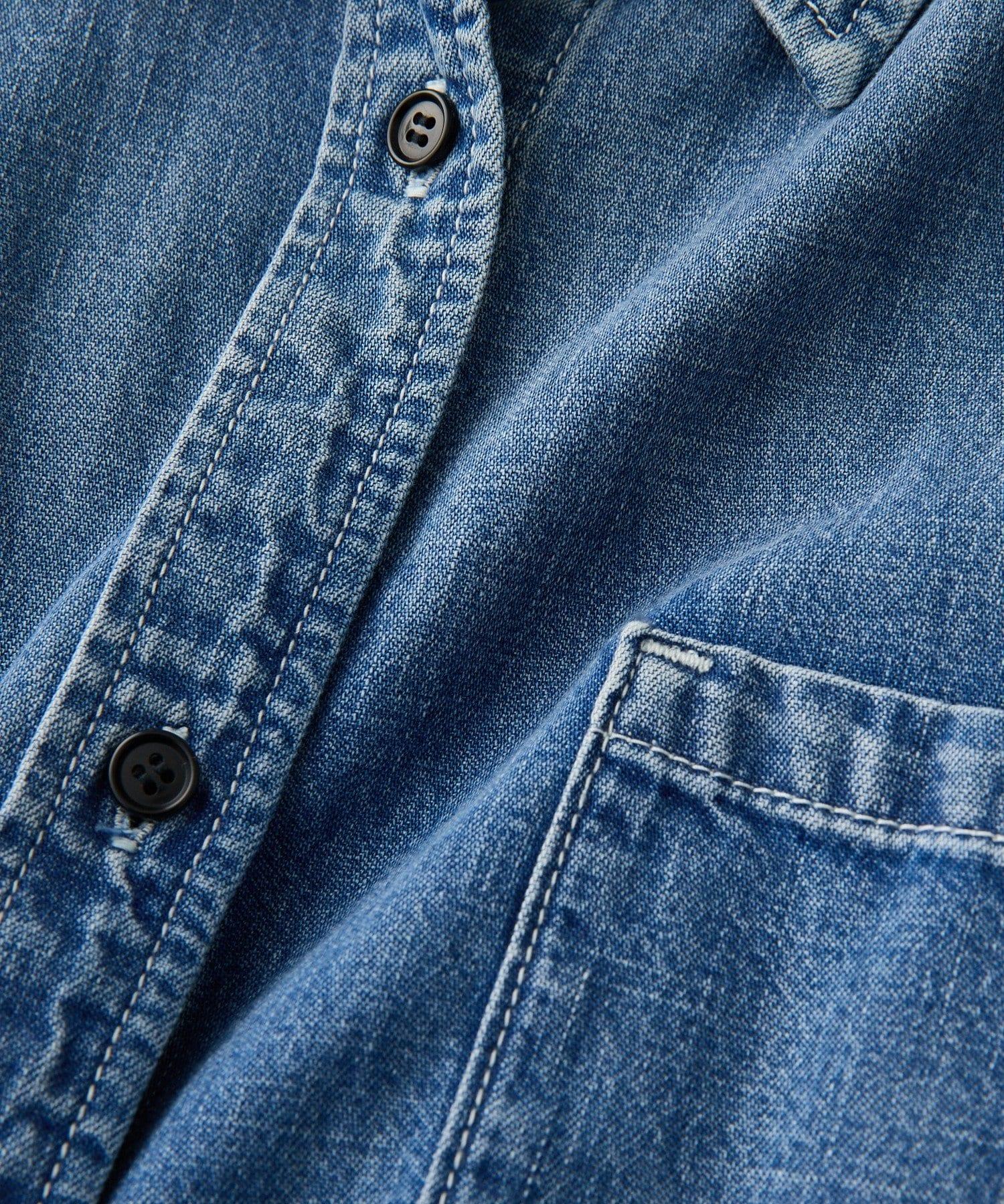 帶墊肩的牛仔襯衫,以其獨特的設計與眾不同。