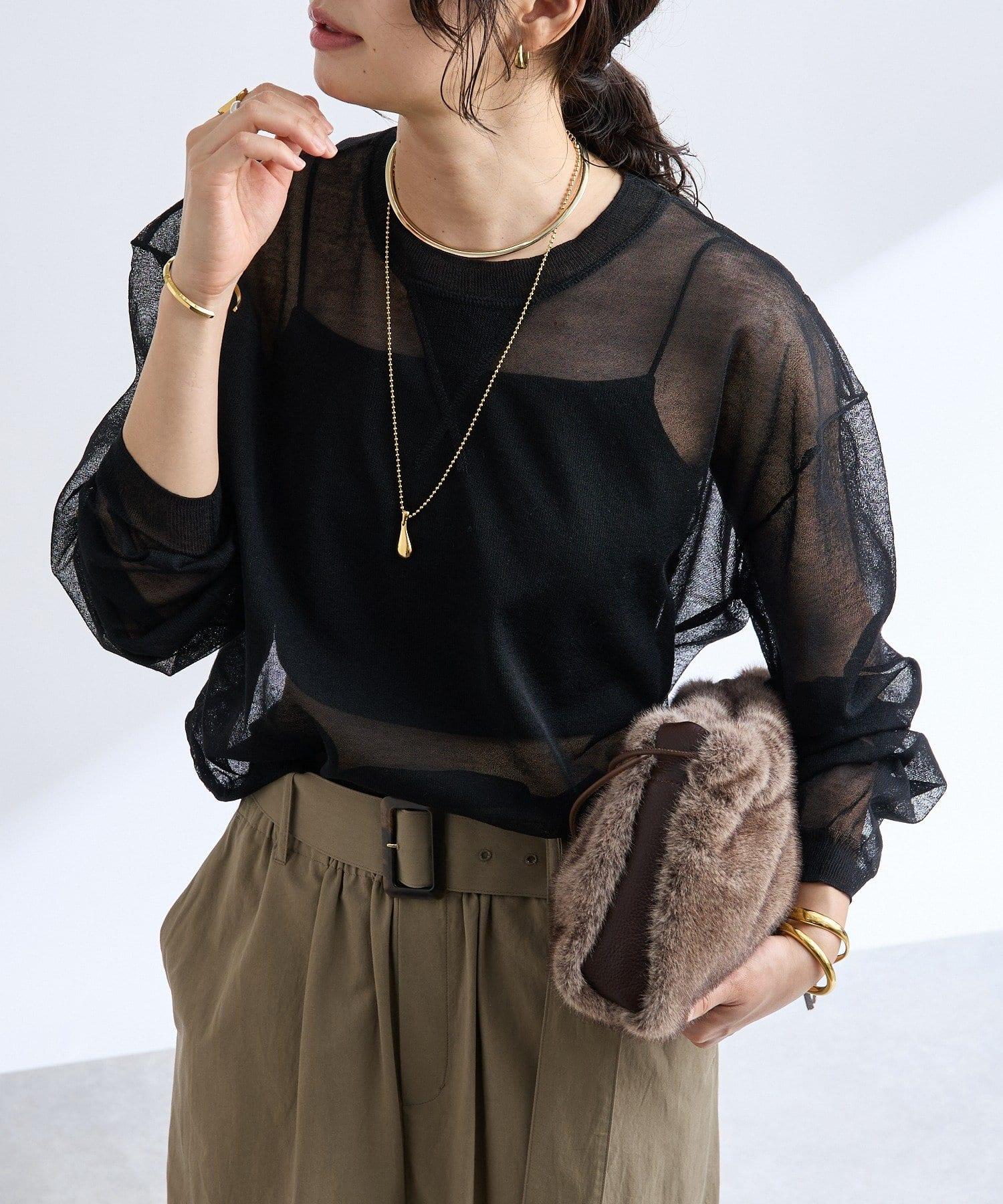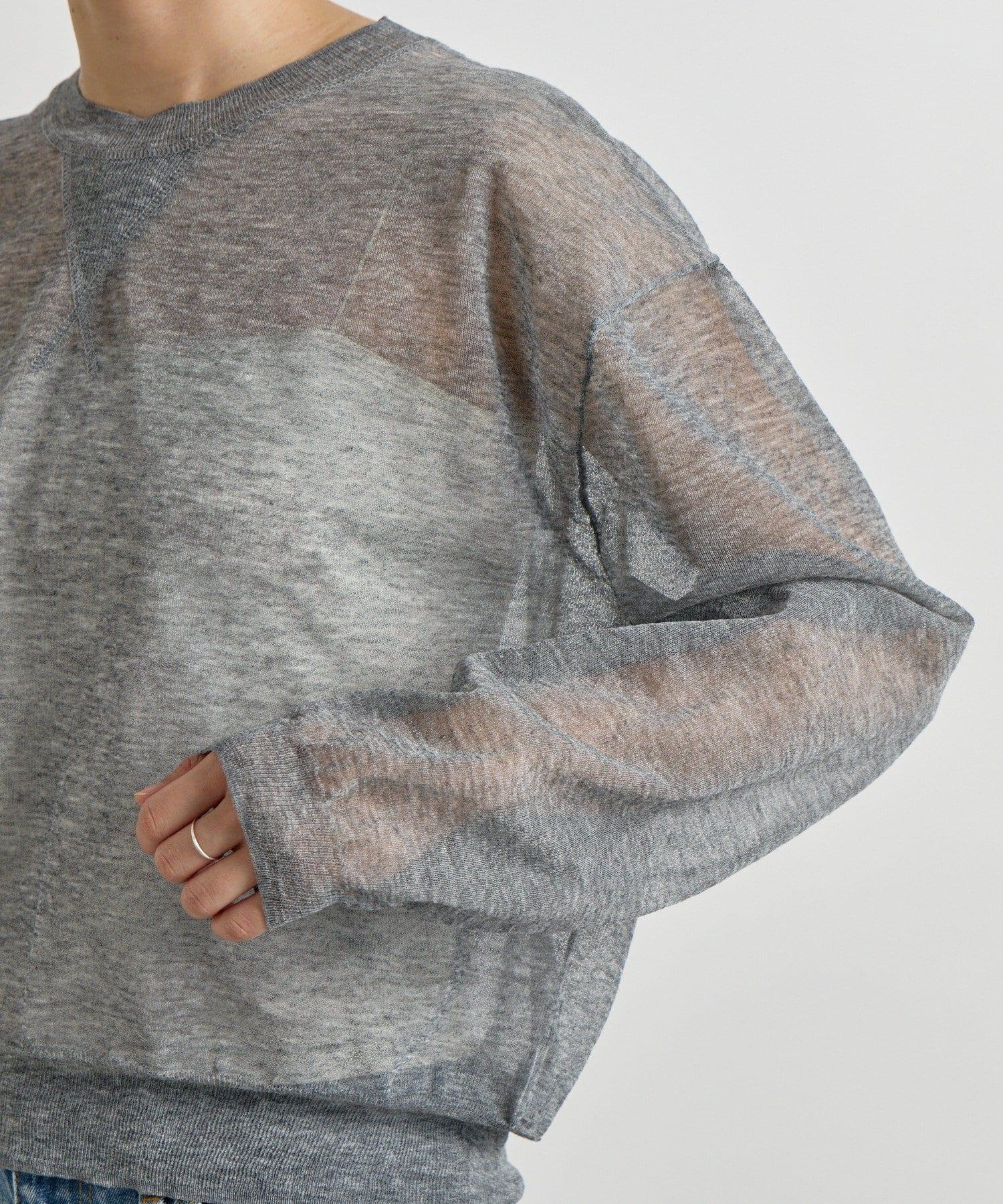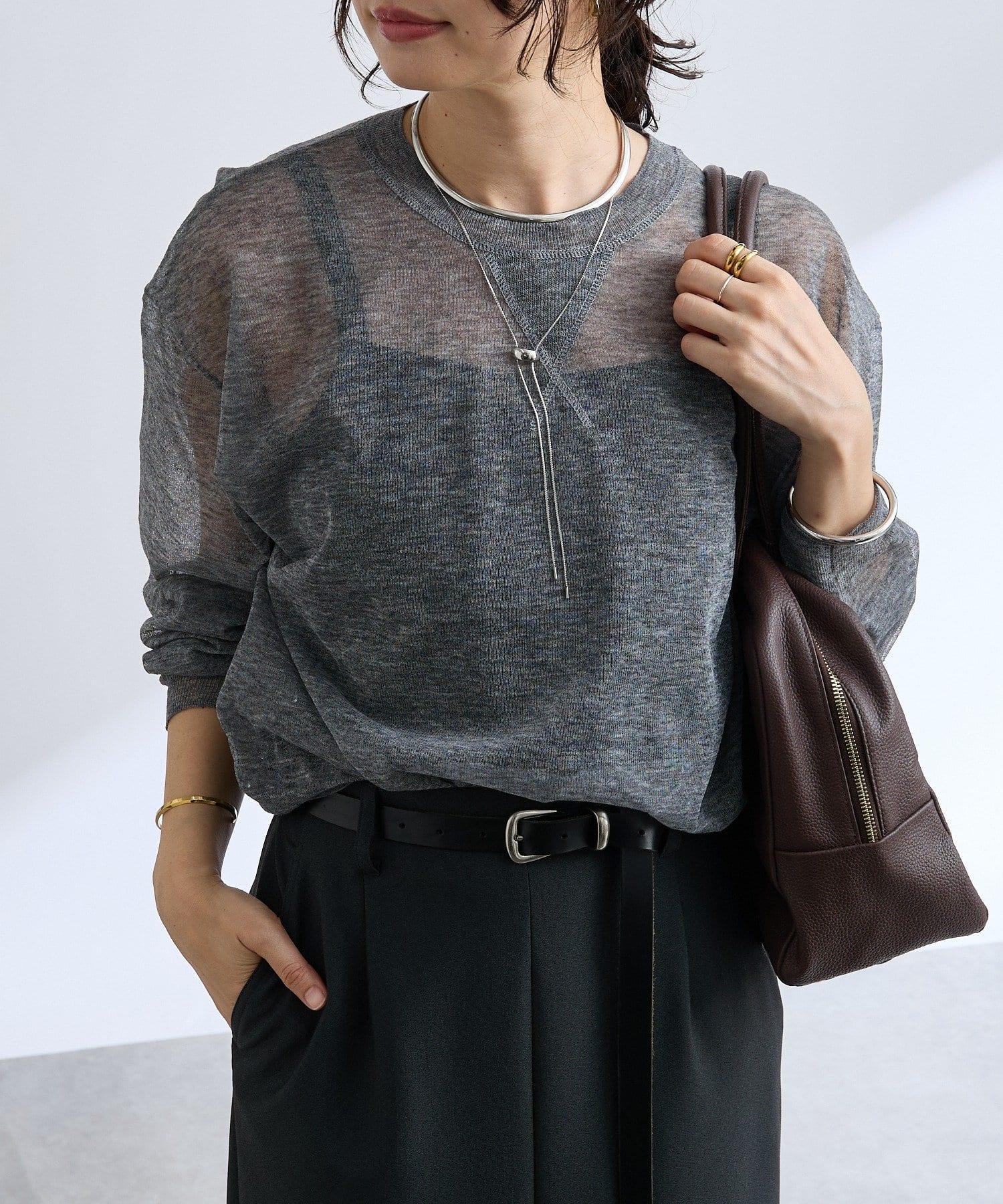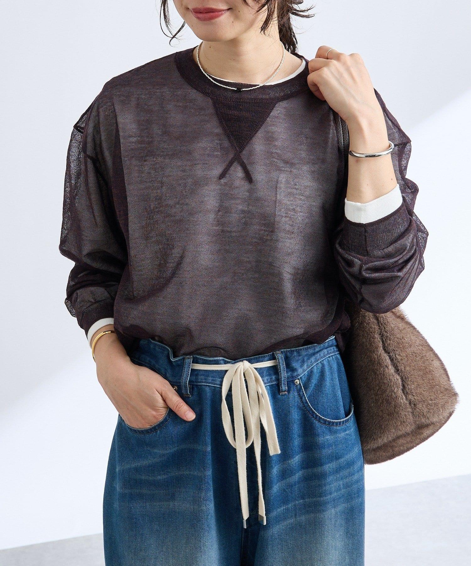 這是一款外觀精緻的透視針織衫,充分利用了麻的蓬鬆感。