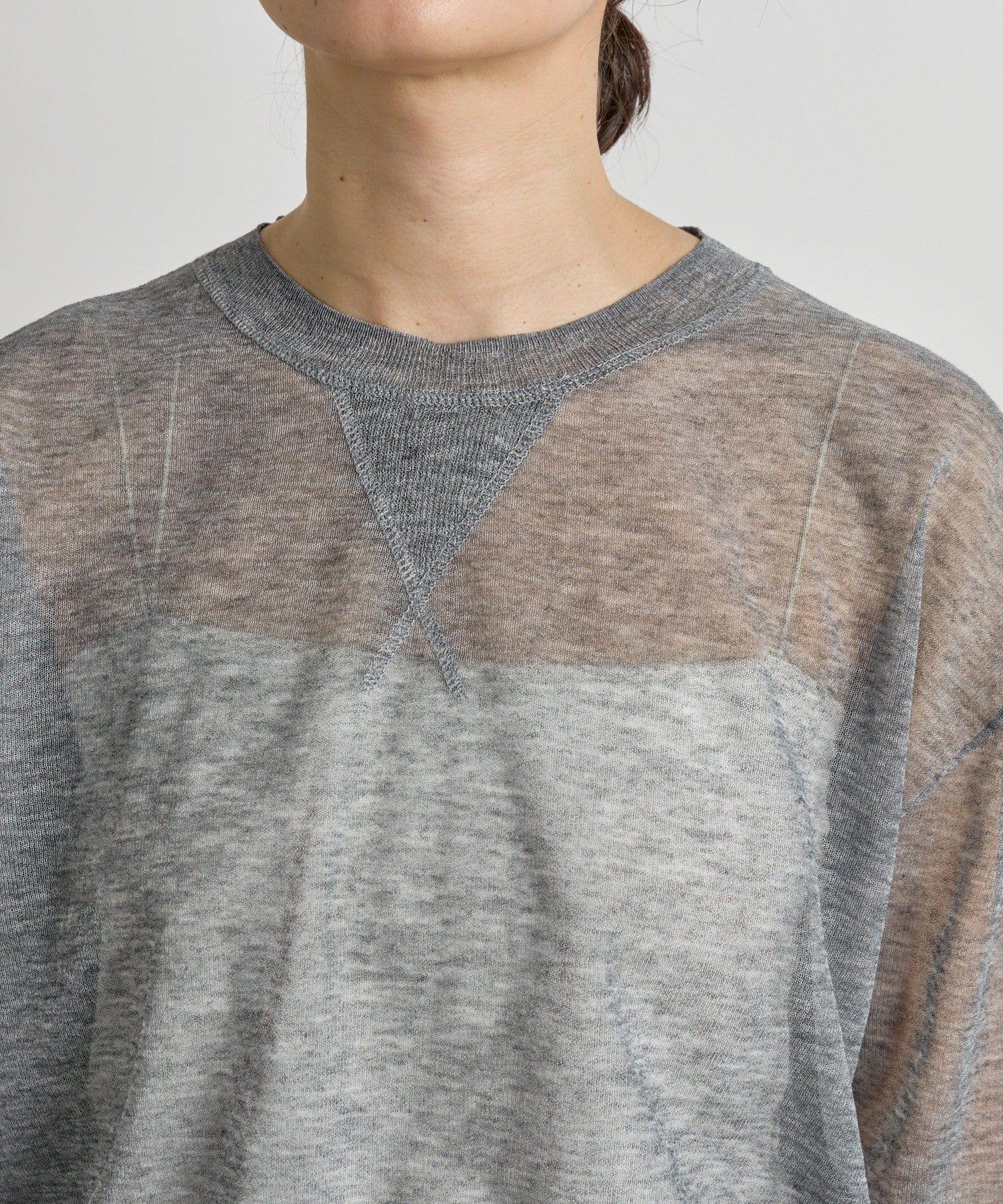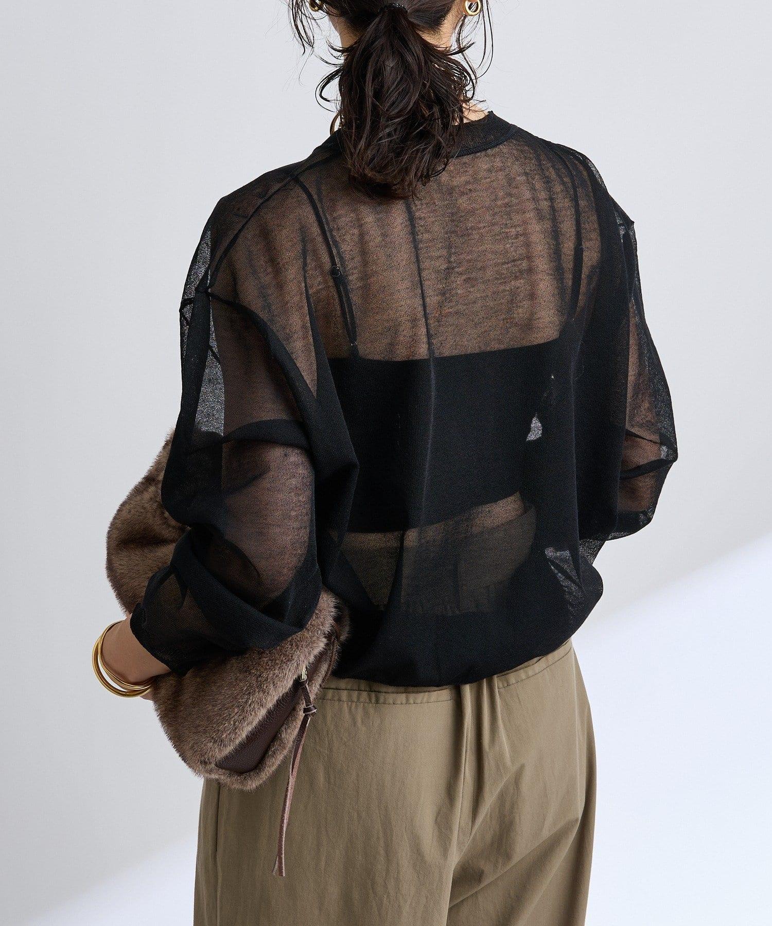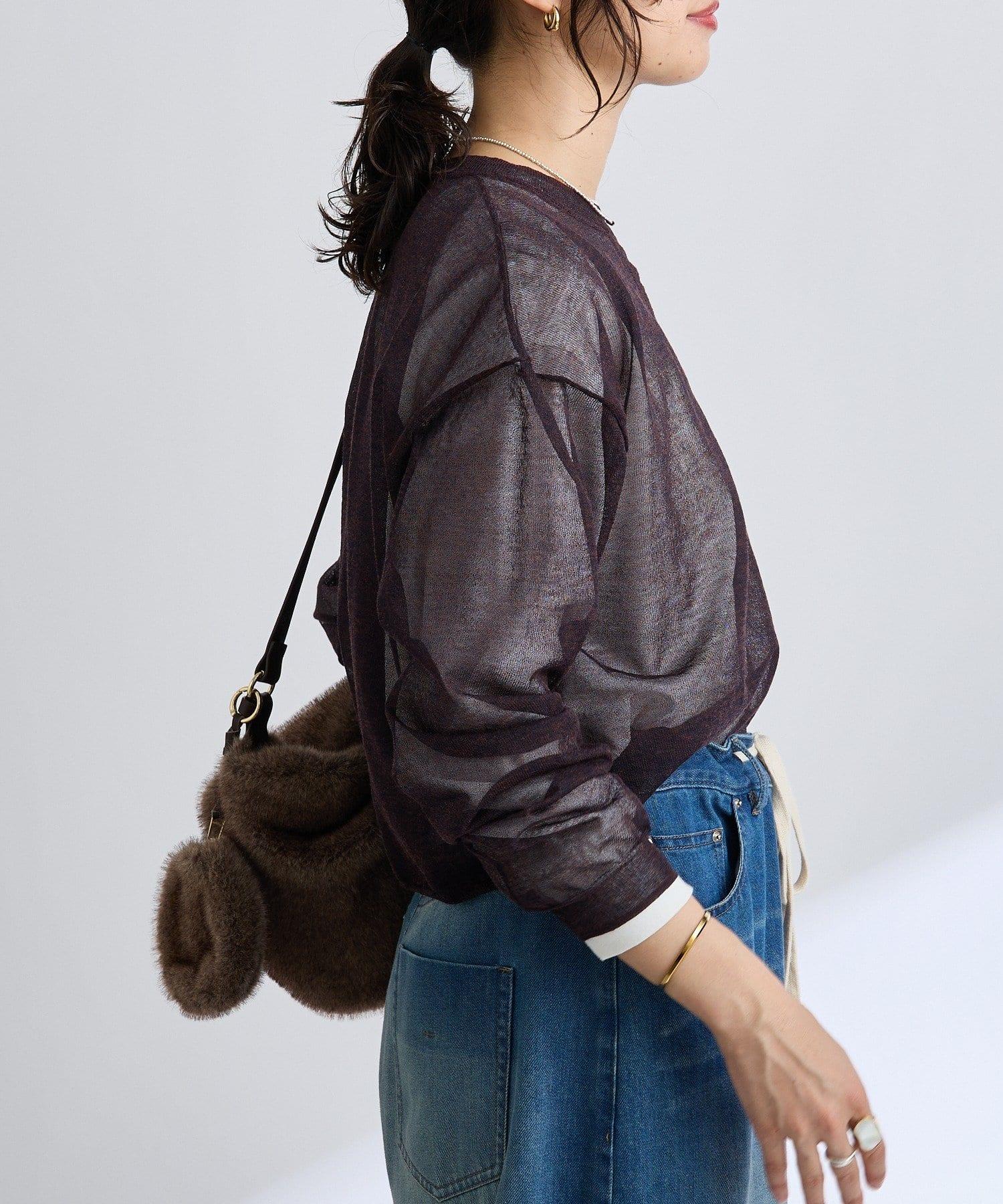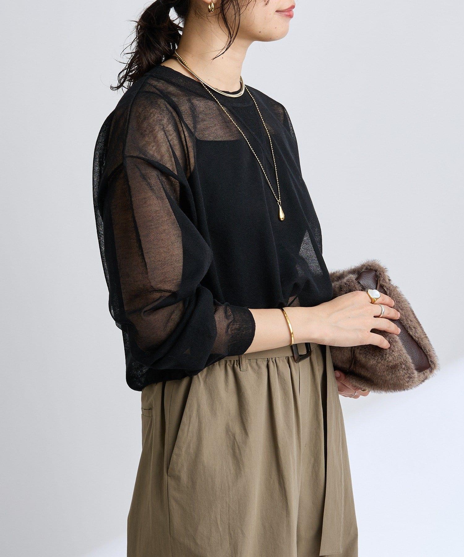 這是一款外觀精緻的透視針織衫,充分利用了麻的蓬鬆感。