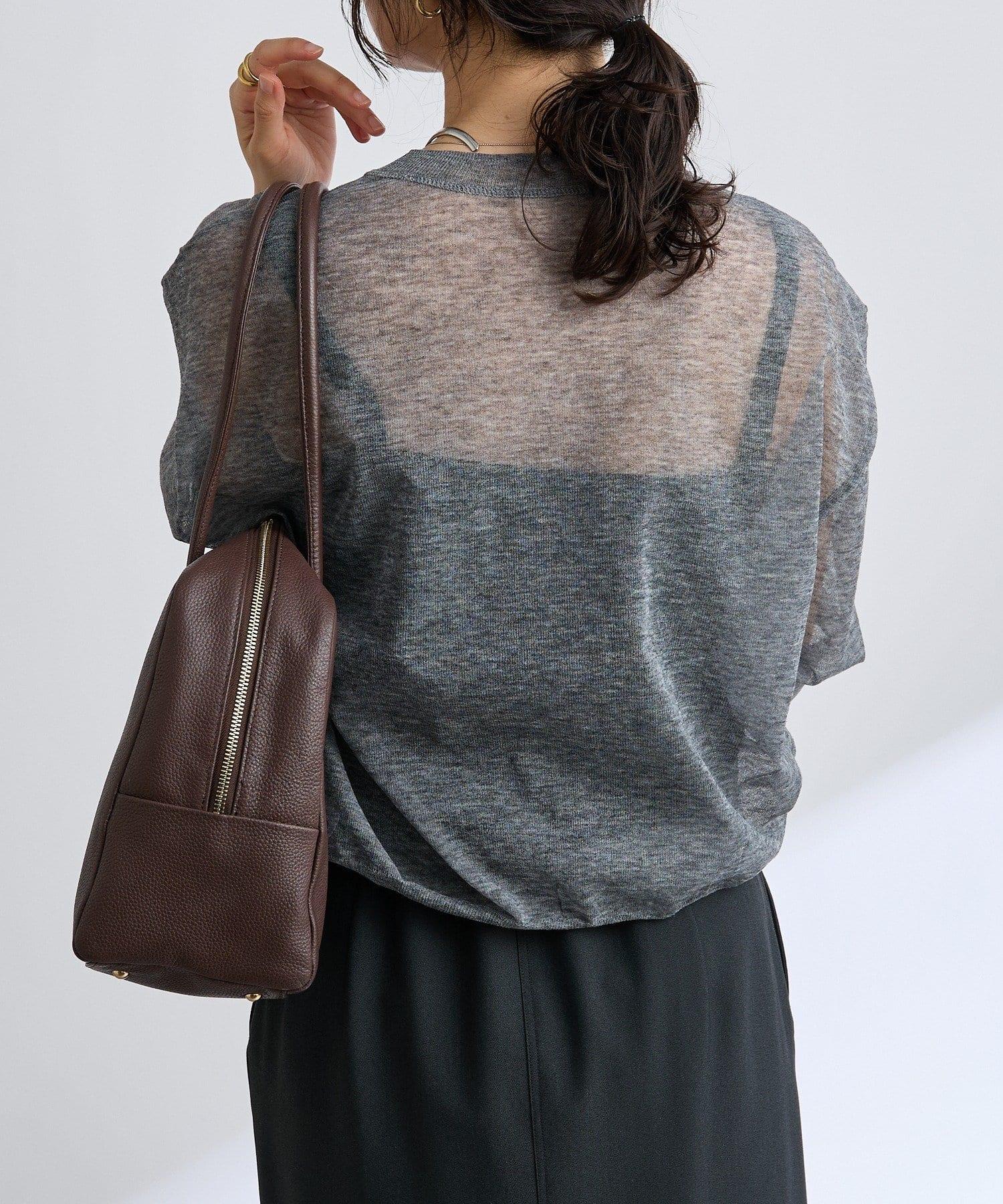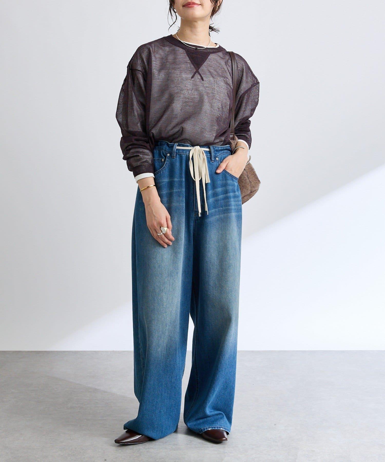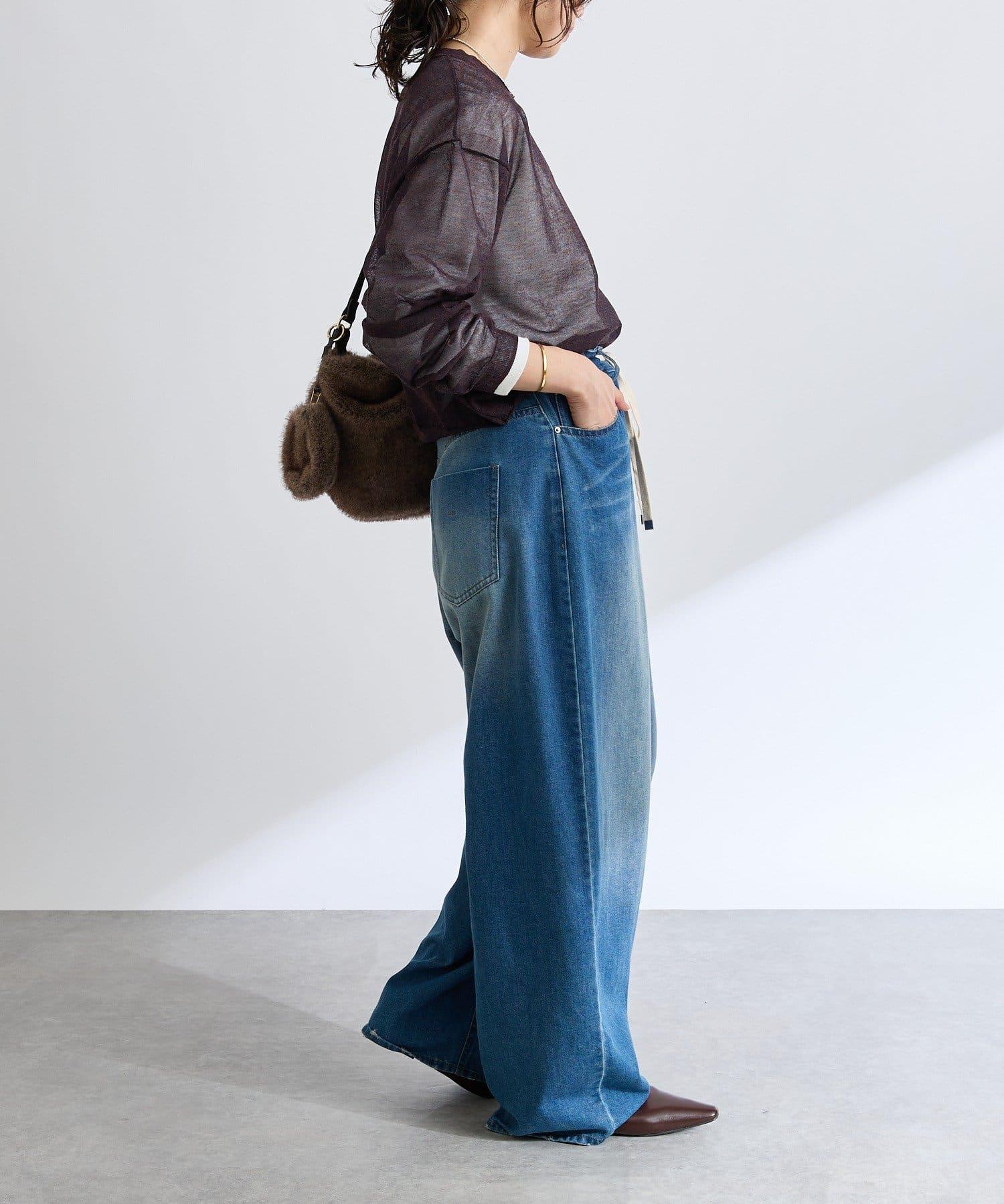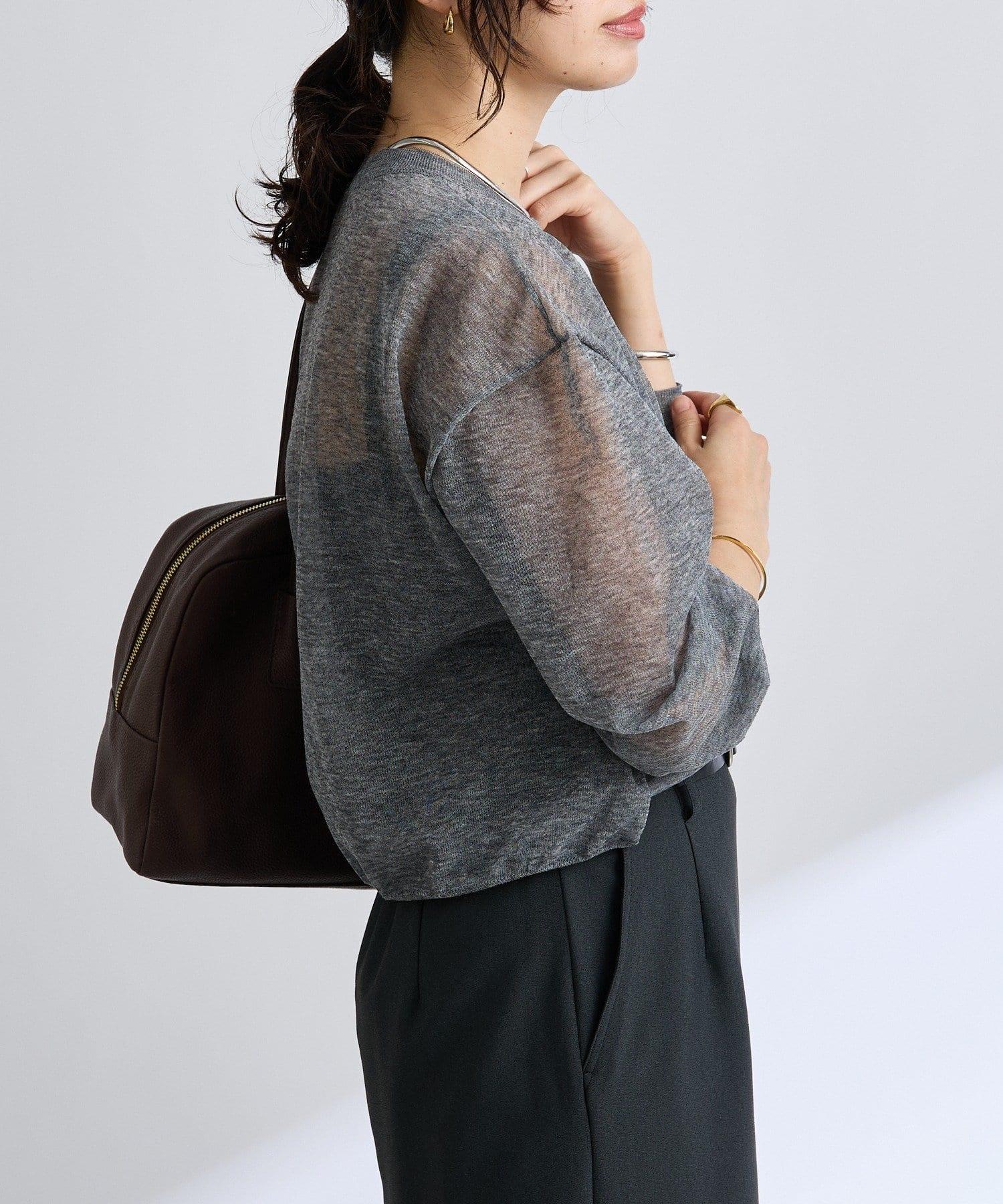 這是一款外觀精緻的透視針織衫,充分利用了麻的蓬鬆感。