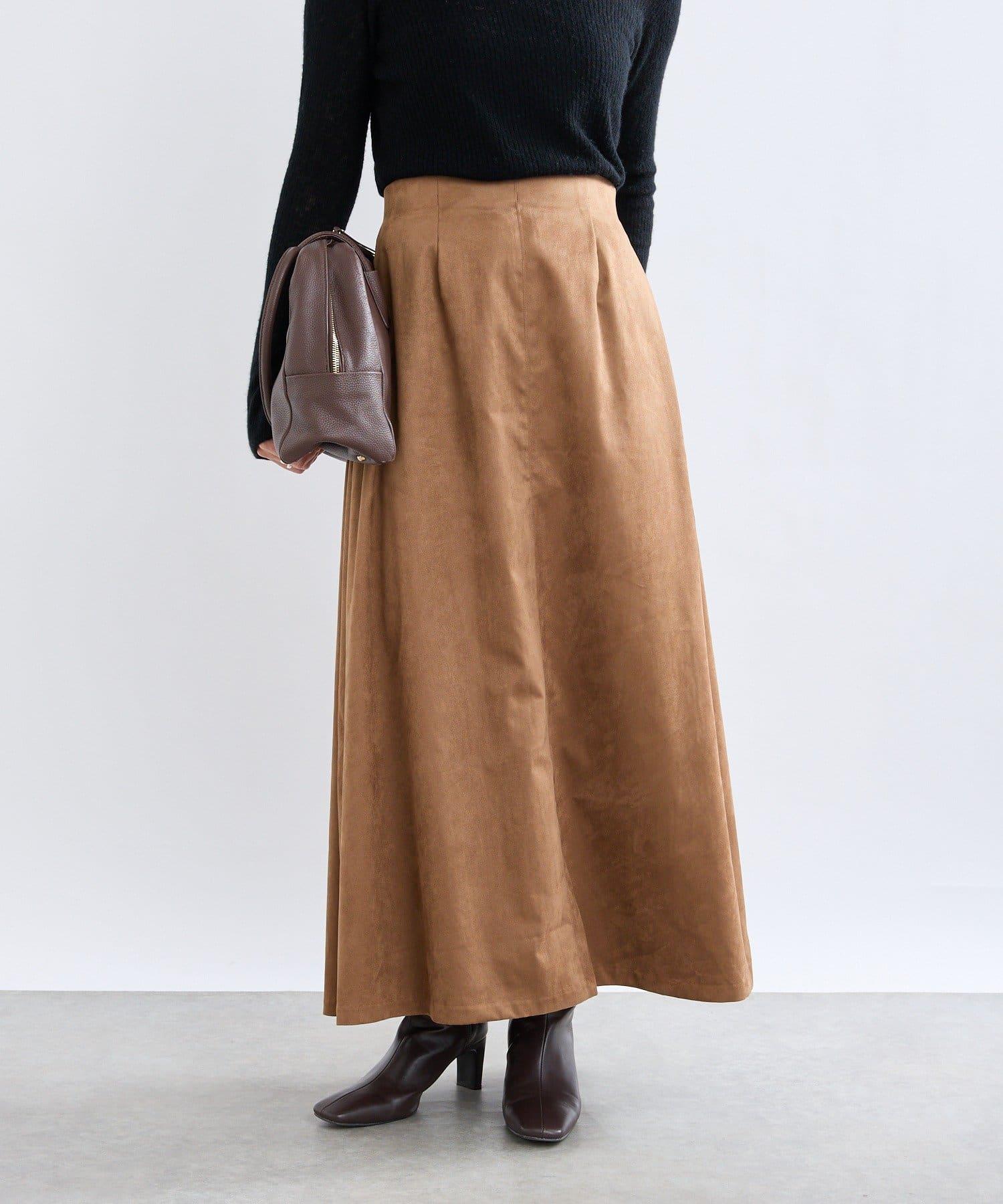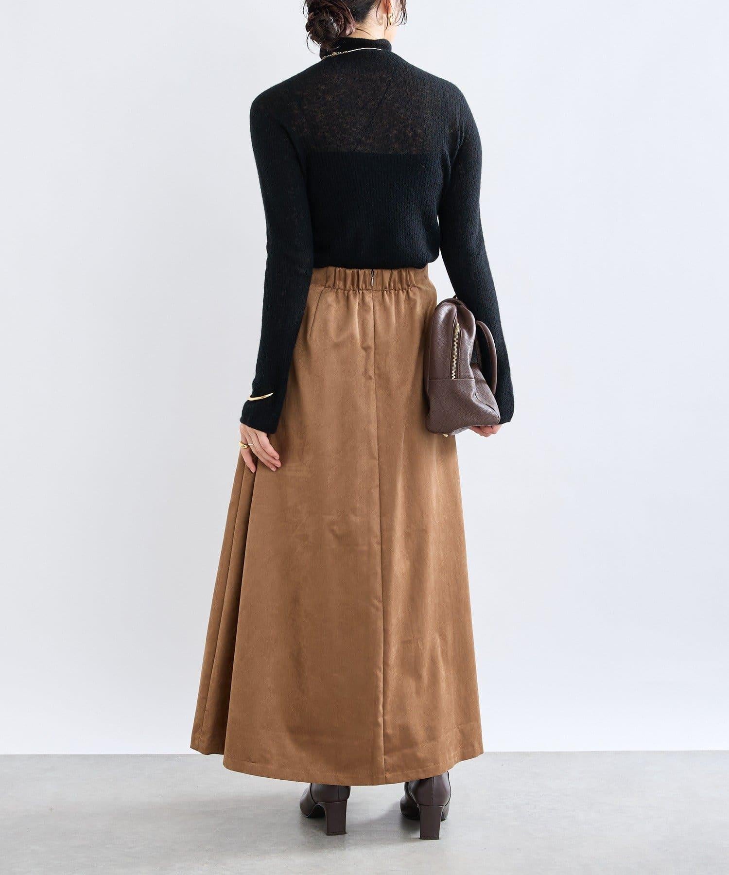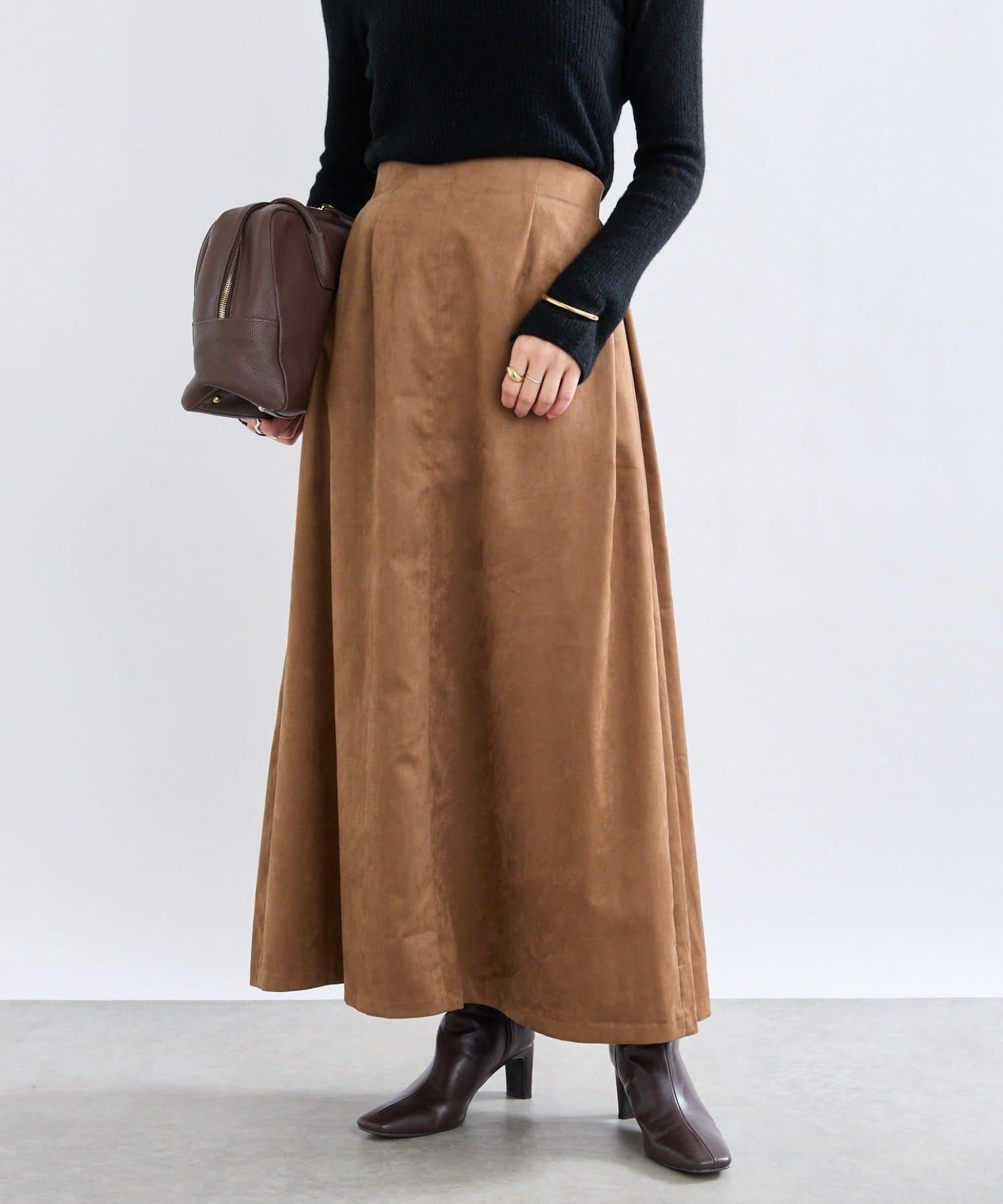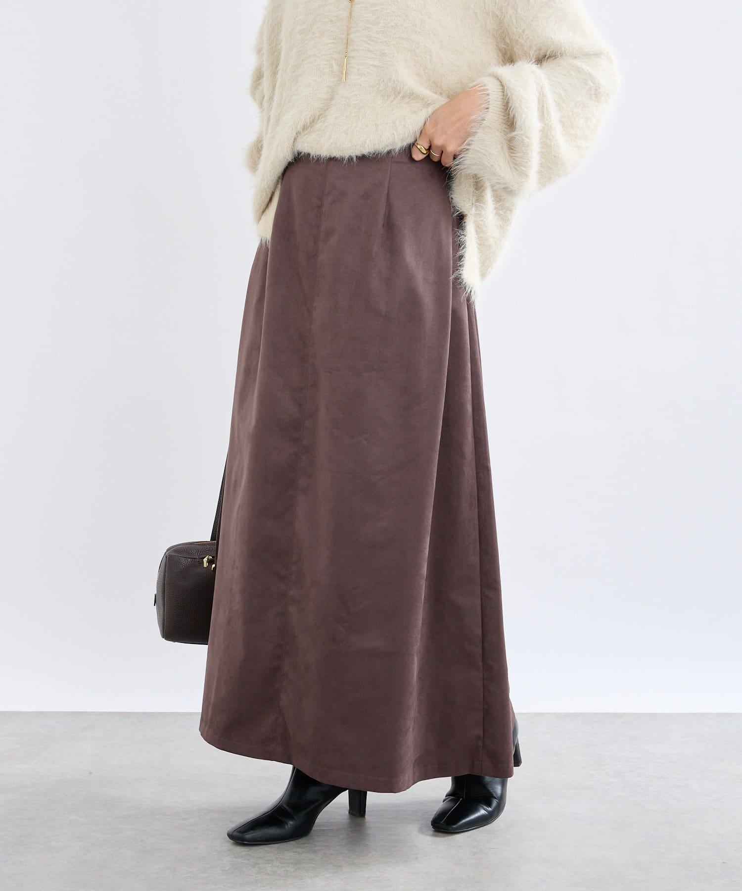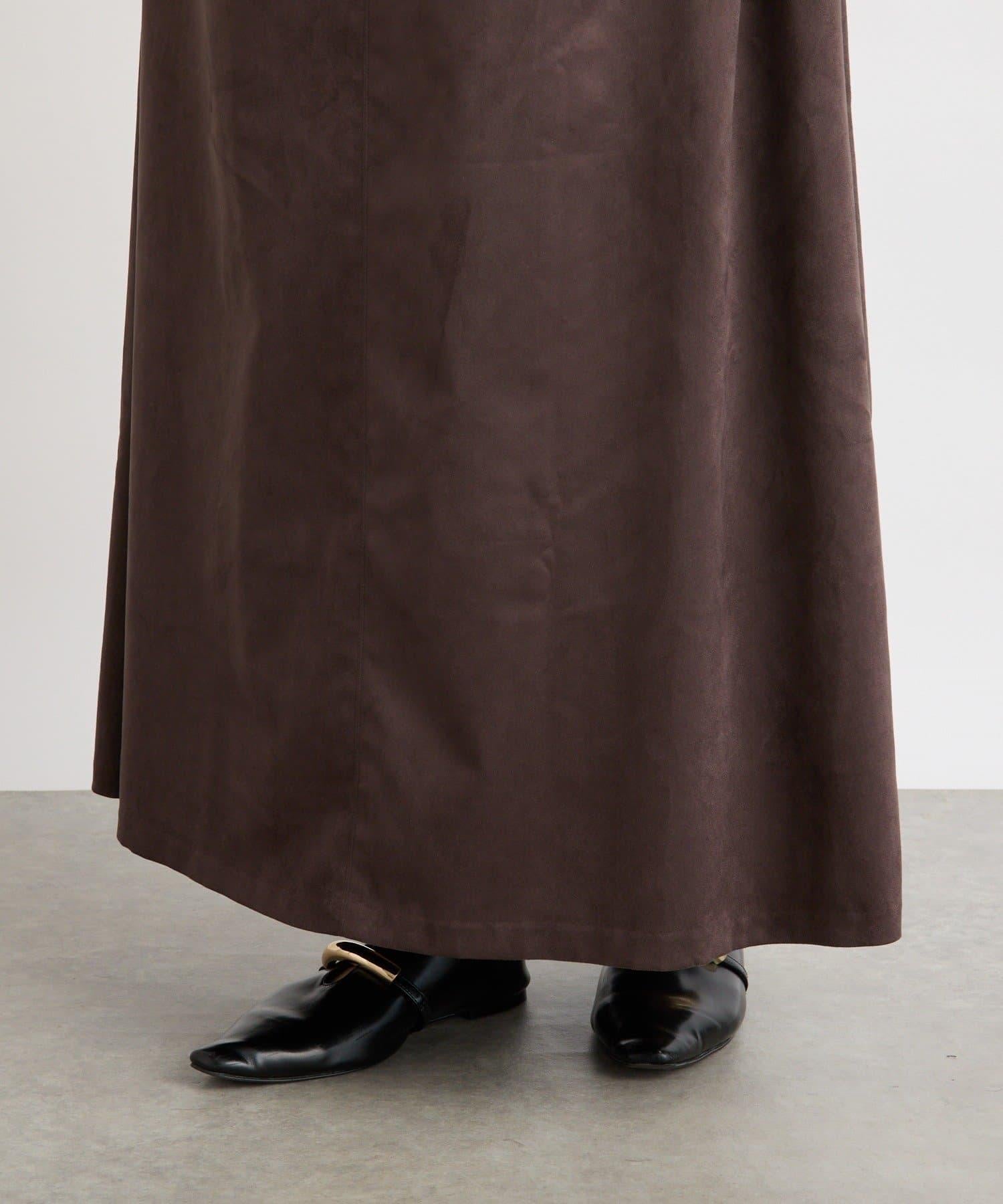 仿麂皮絨材質的喇叭裙,非常適合當季穿著。