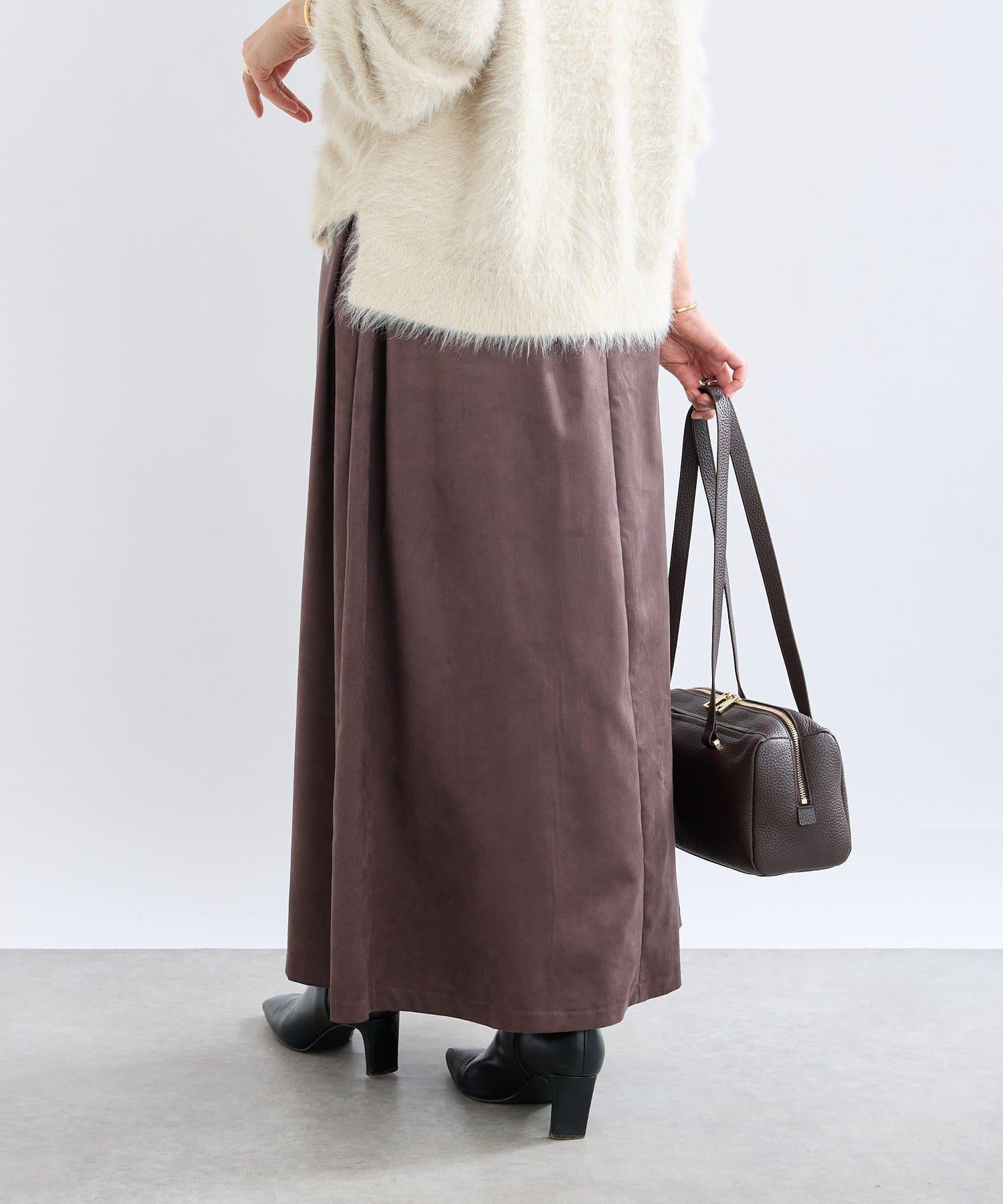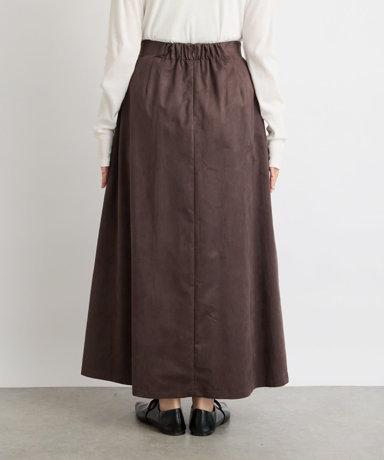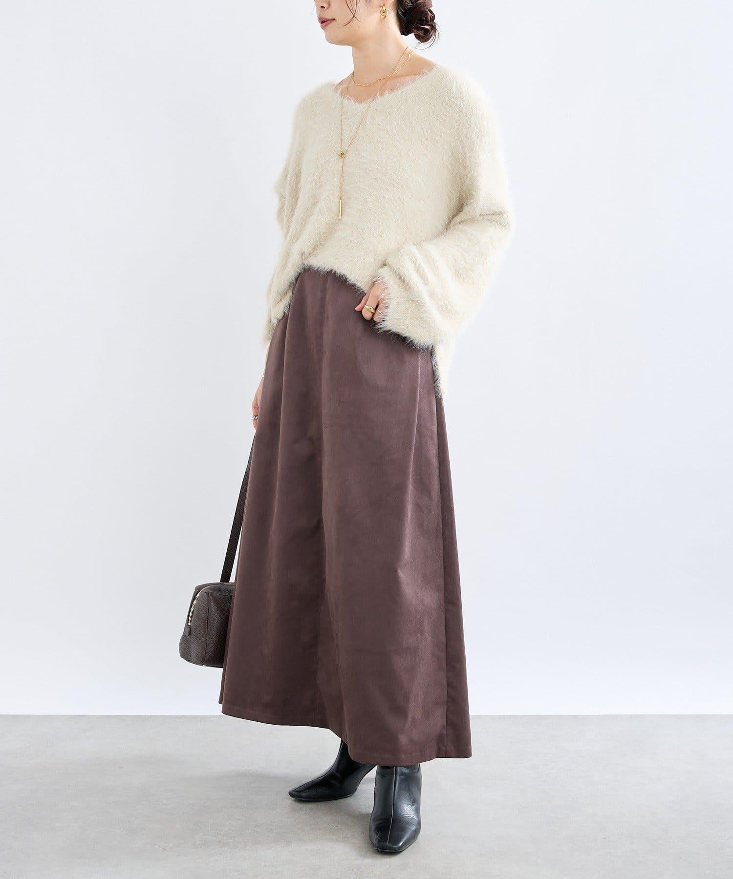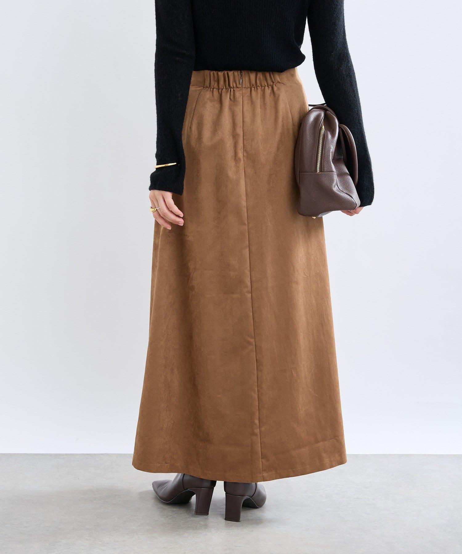 仿麂皮絨材質的喇叭裙,非常適合當季穿著。