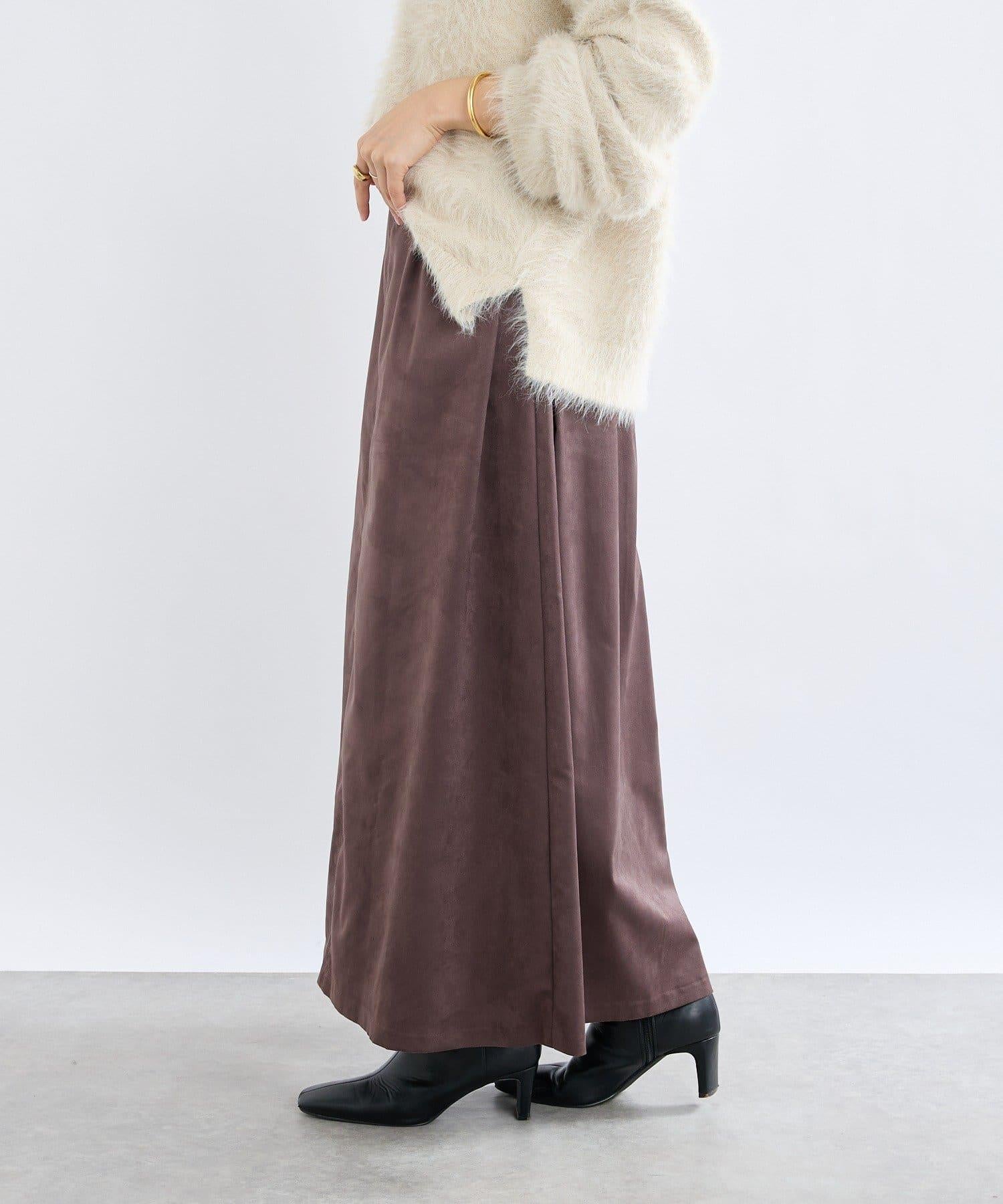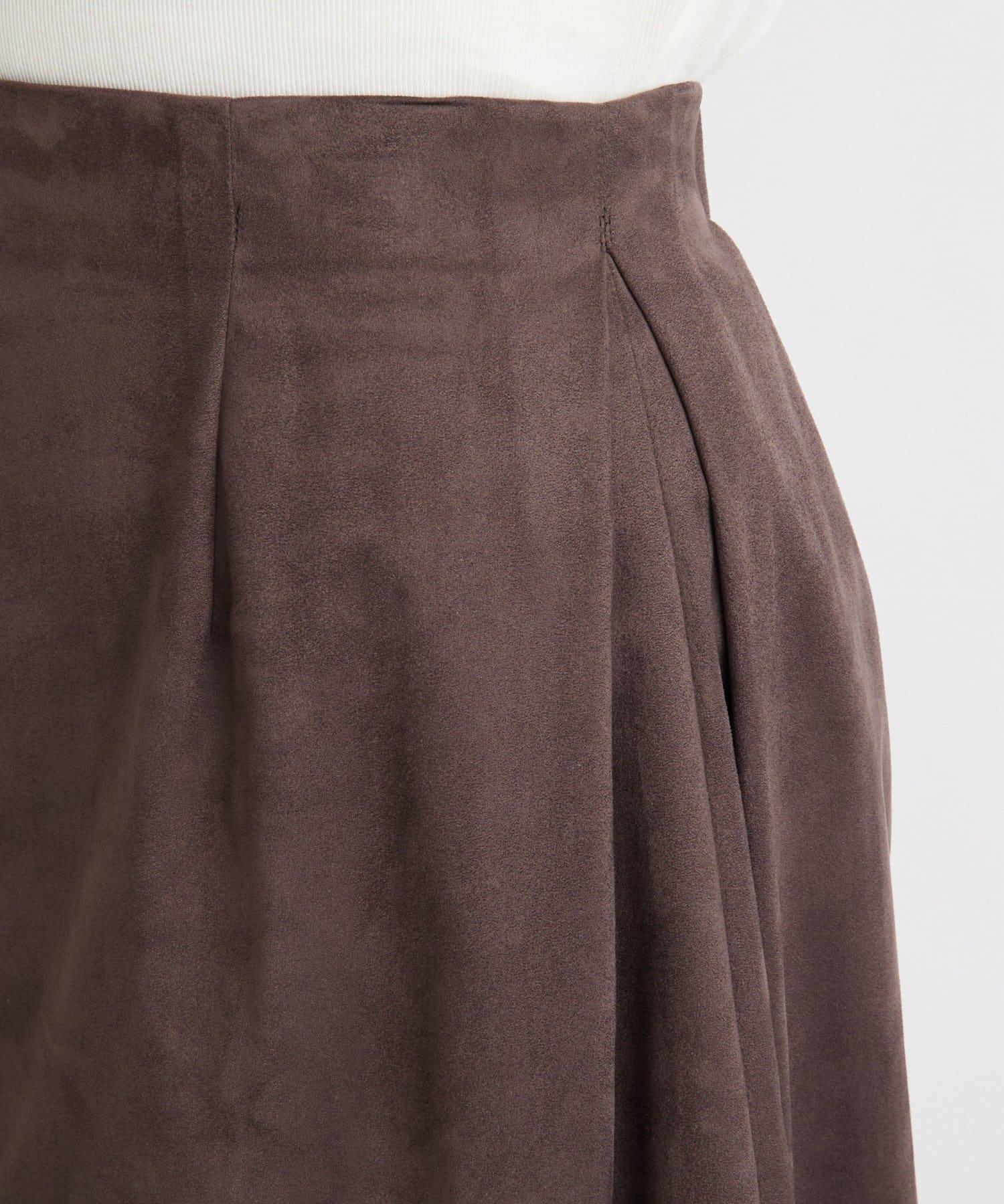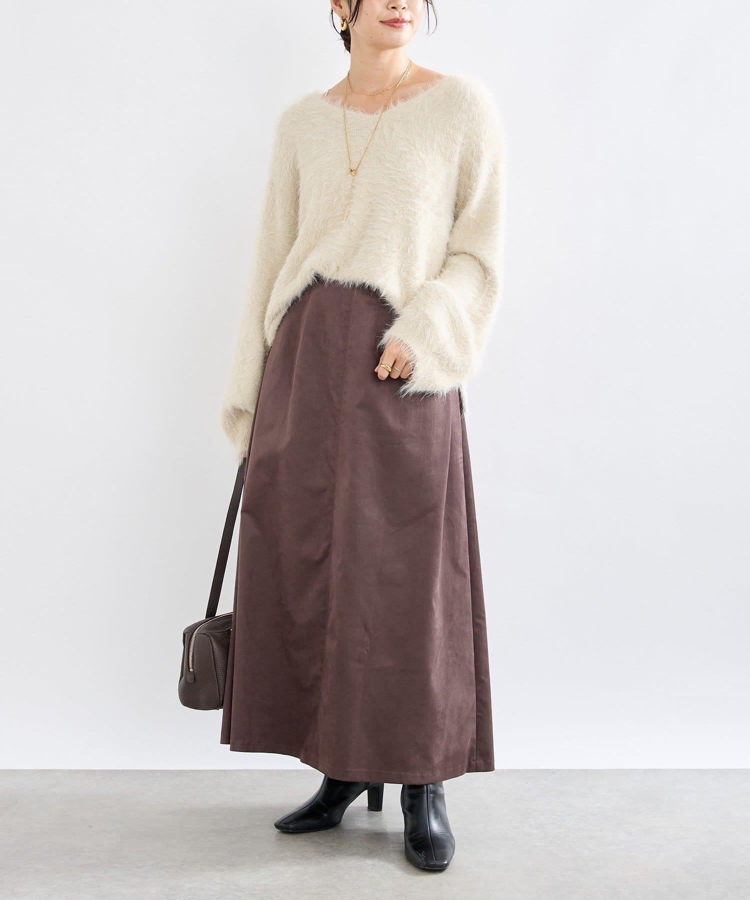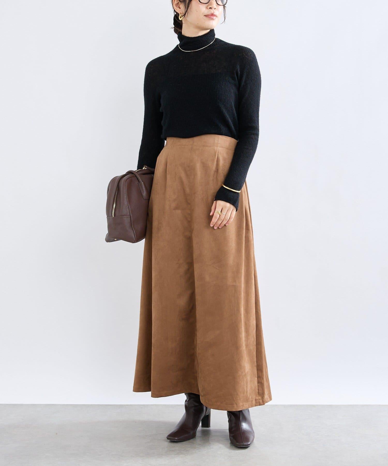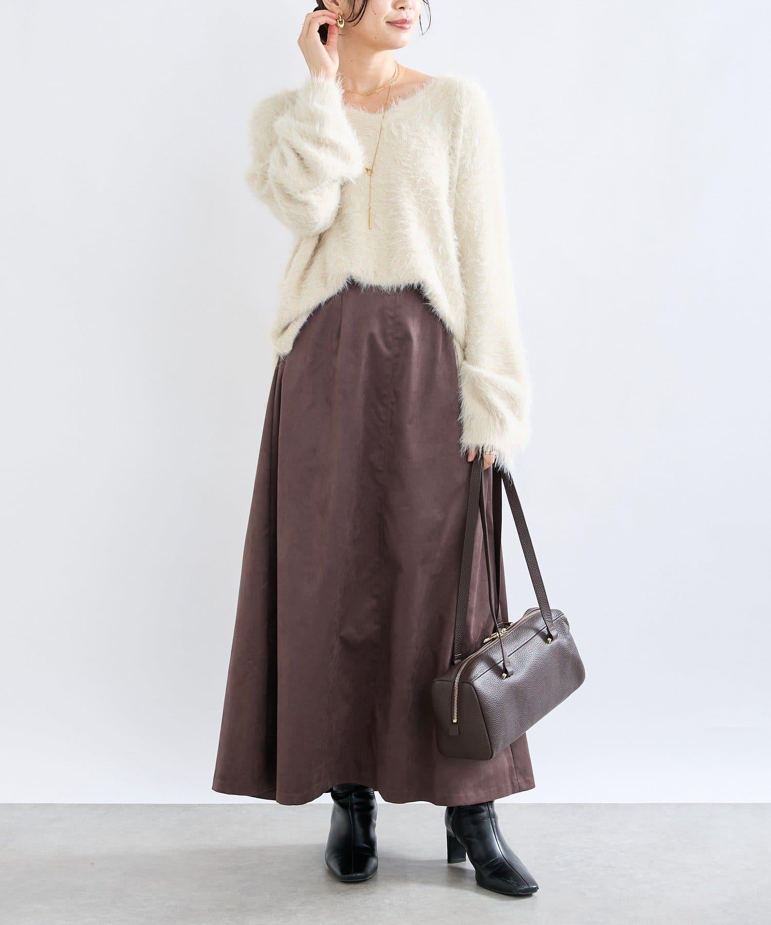 仿麂皮絨材質的喇叭裙,非常適合當季穿著。