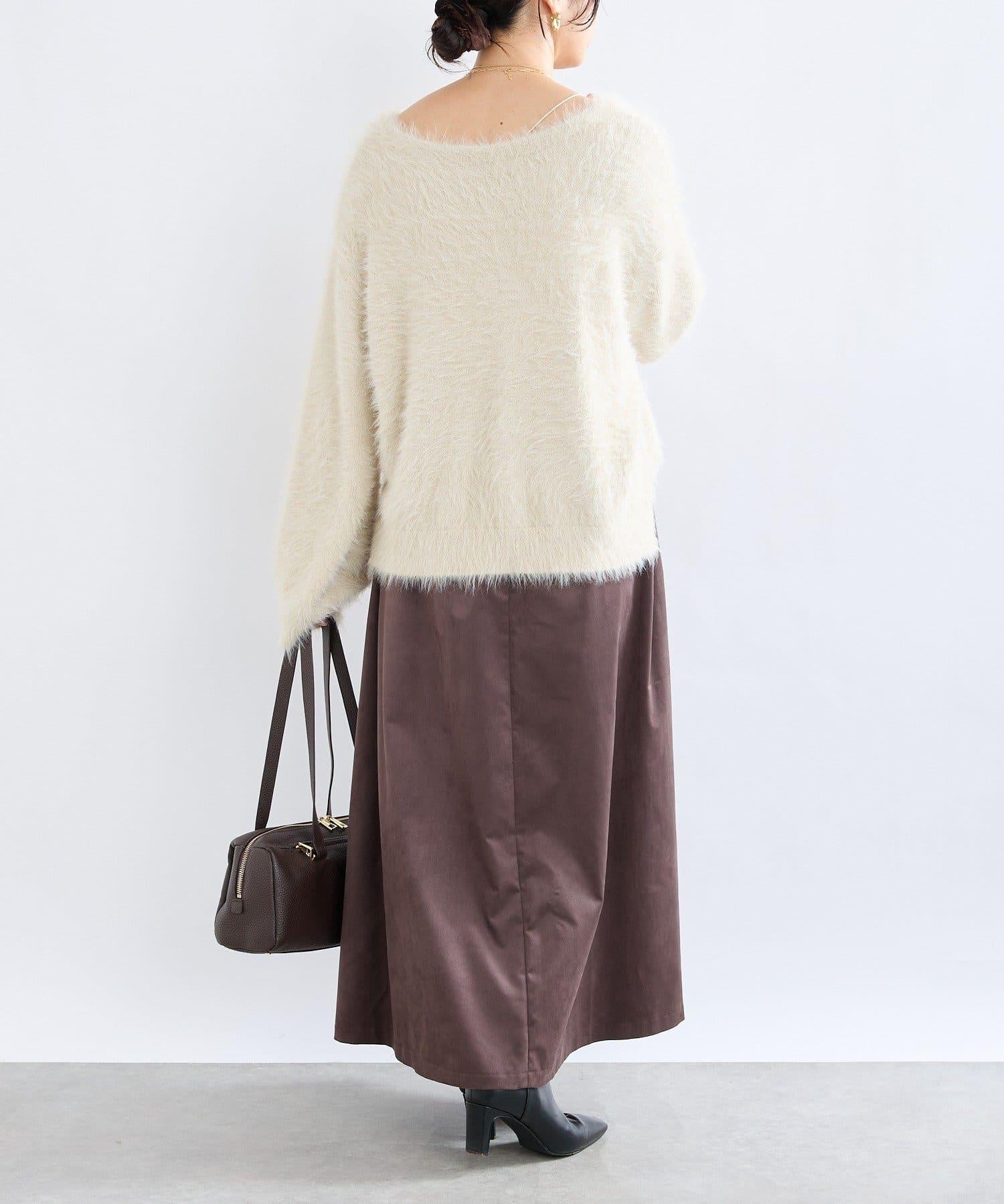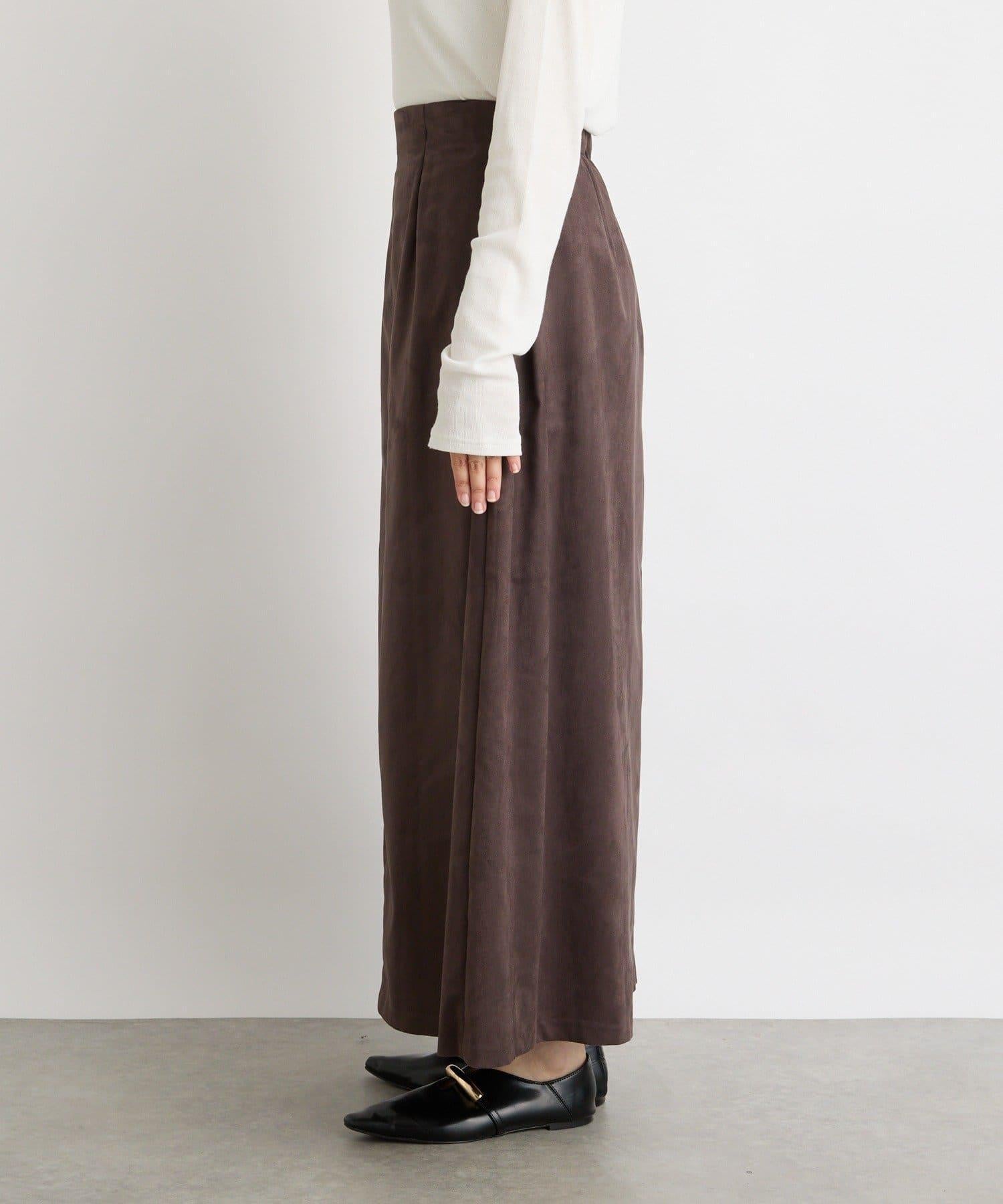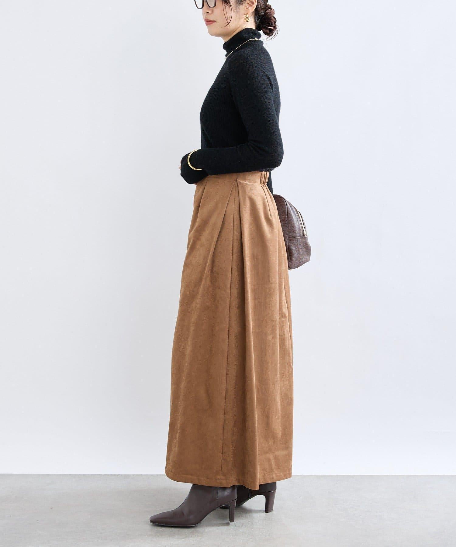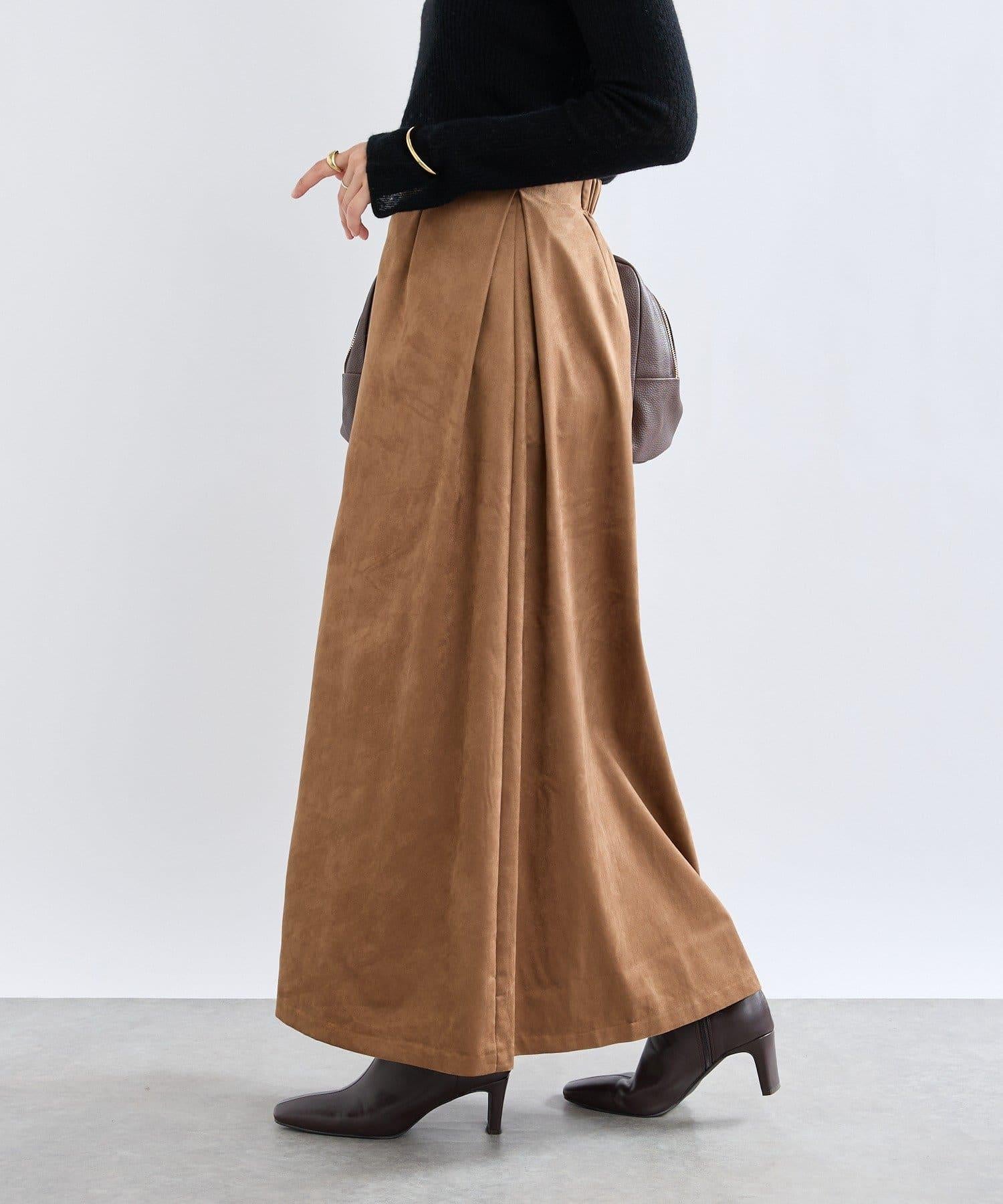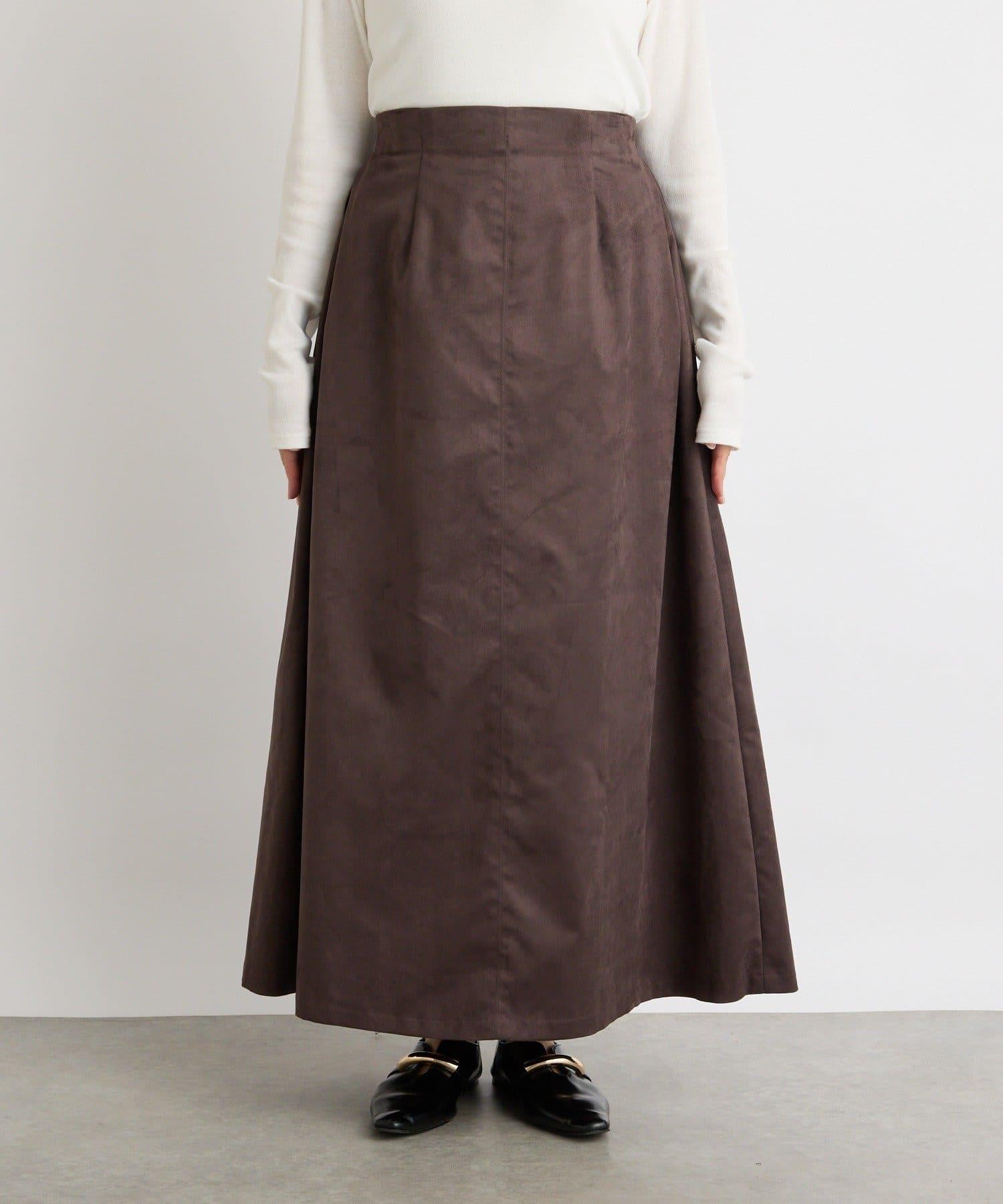 仿麂皮絨材質的喇叭裙,非常適合當季穿著。