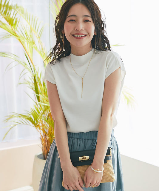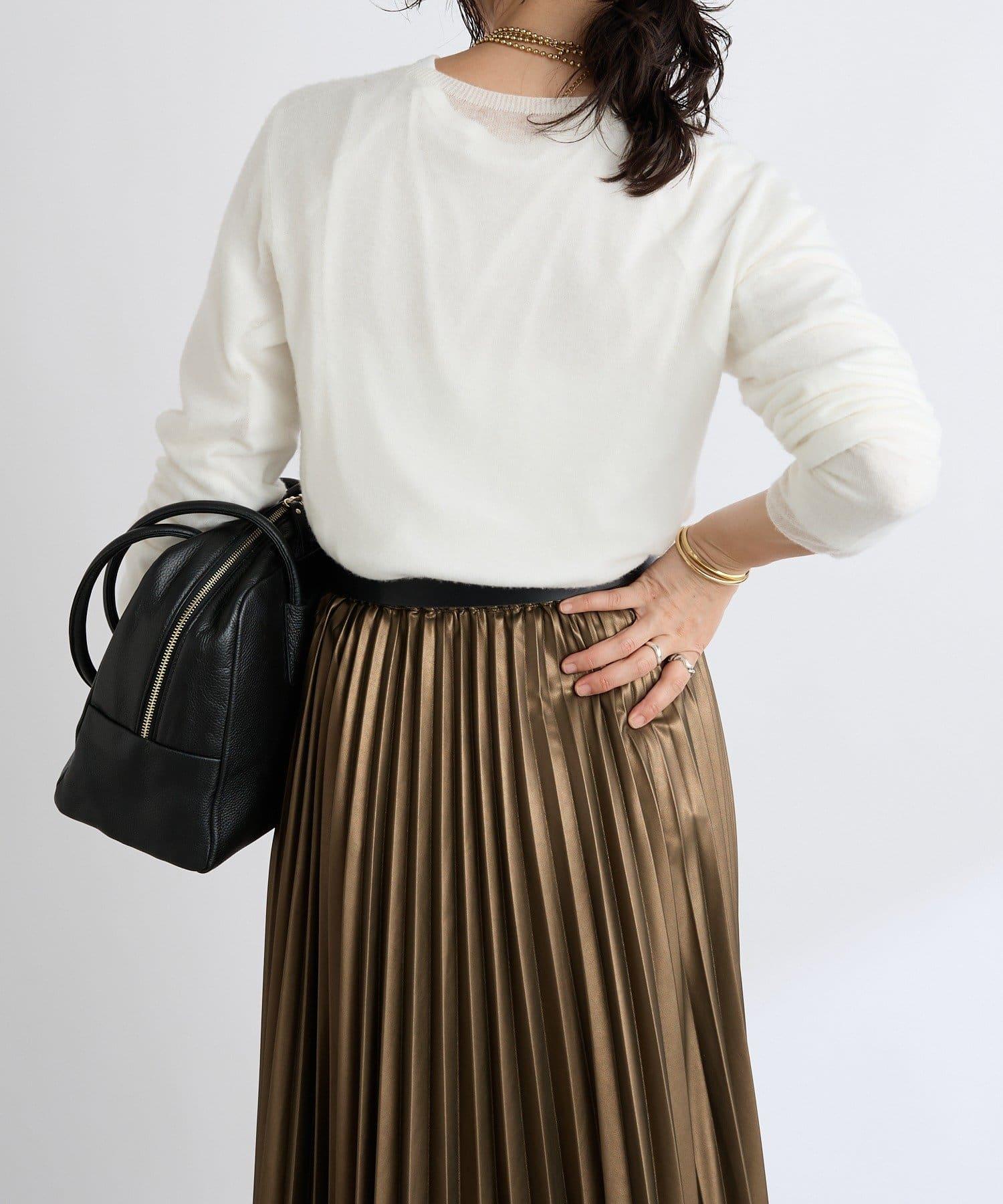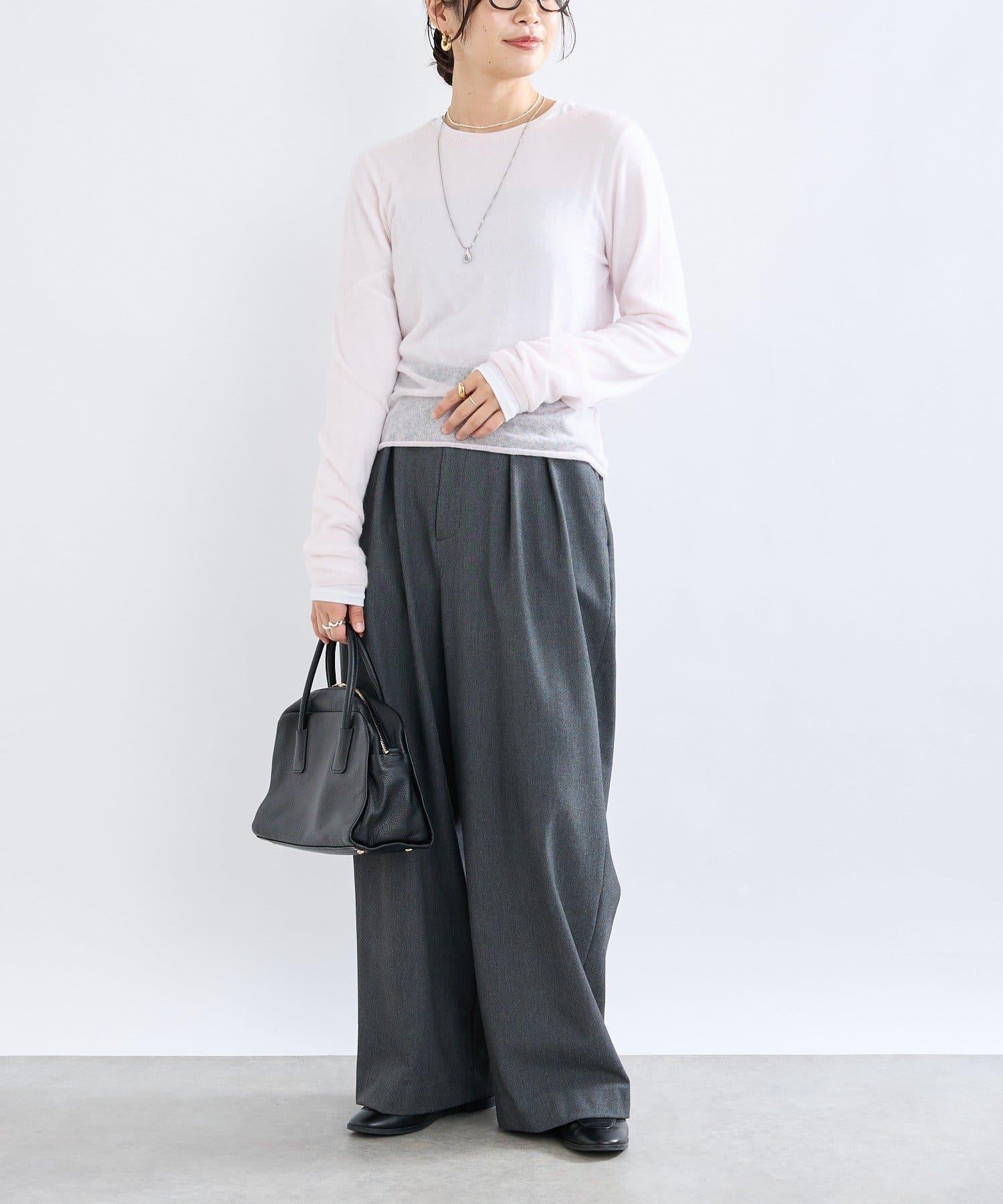 極簡的圓領針織,充分利用了紗線的質感。