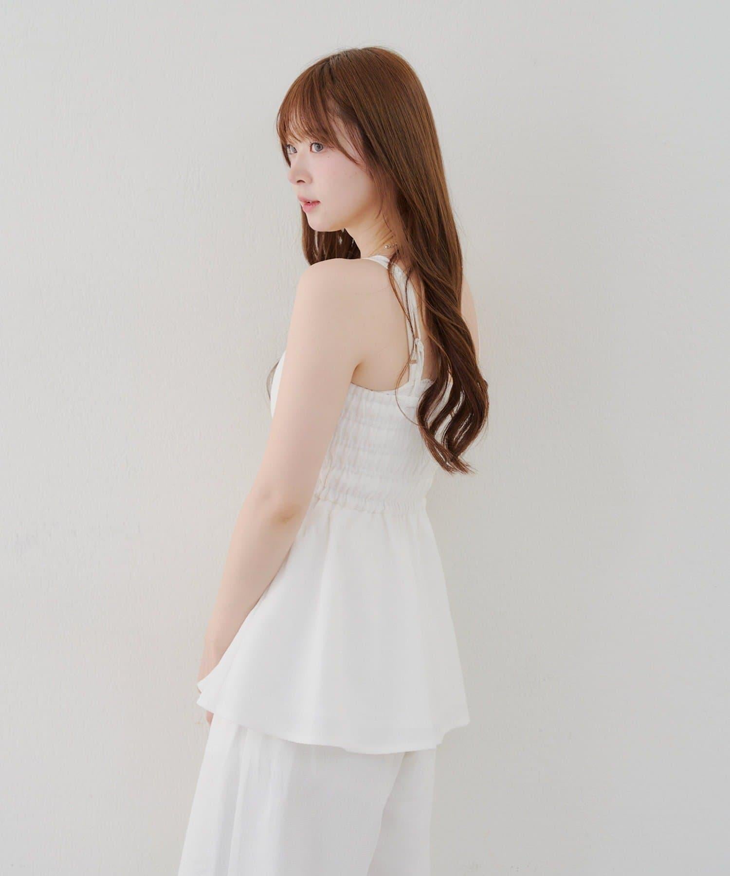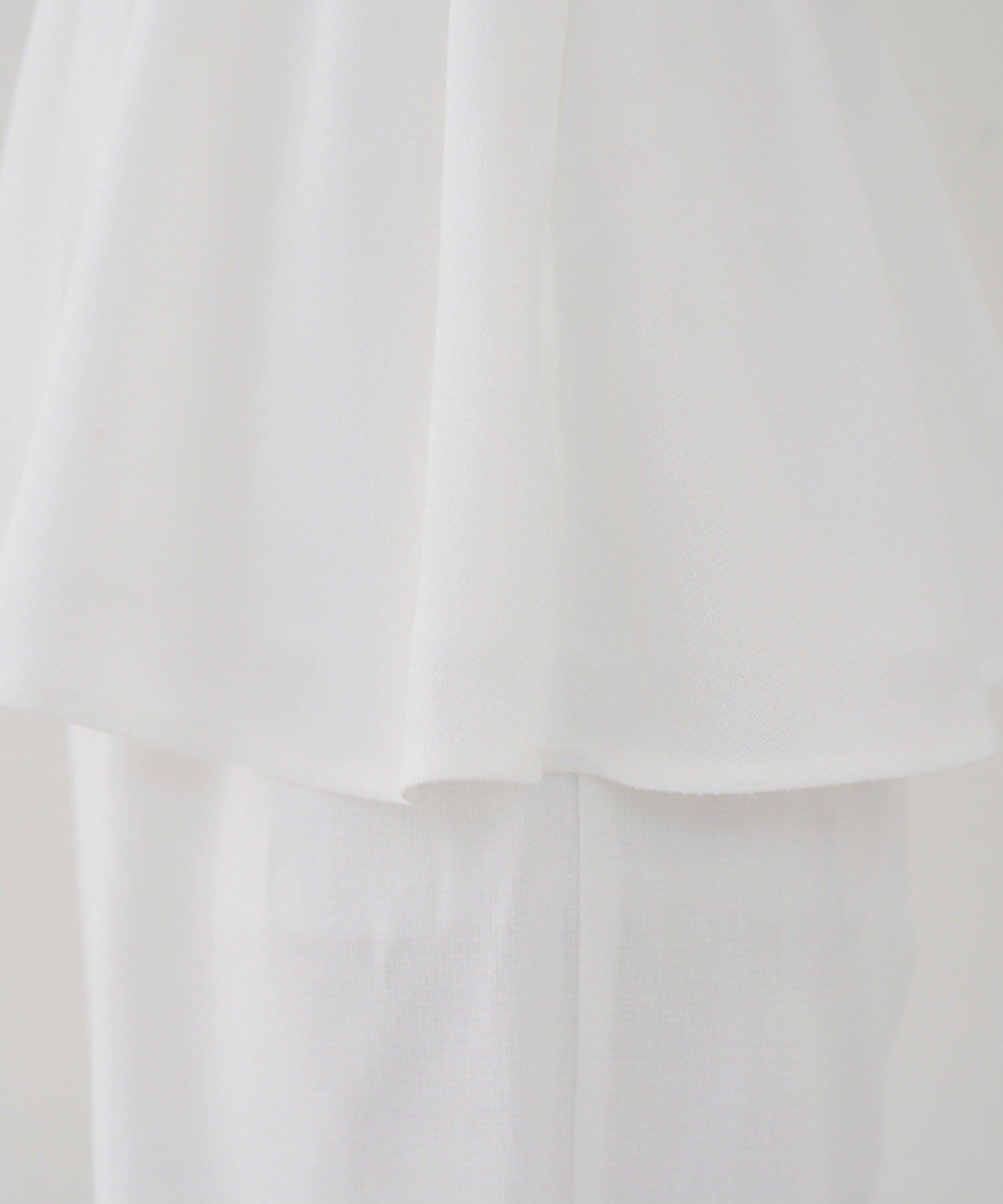 搭配與 saki 合作的花朵圖案薄紗襯衫(貨號:5052040050)。