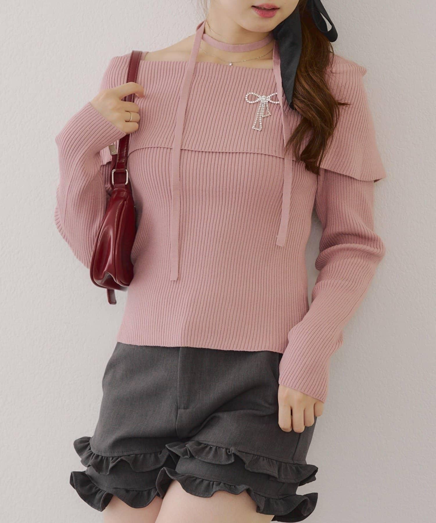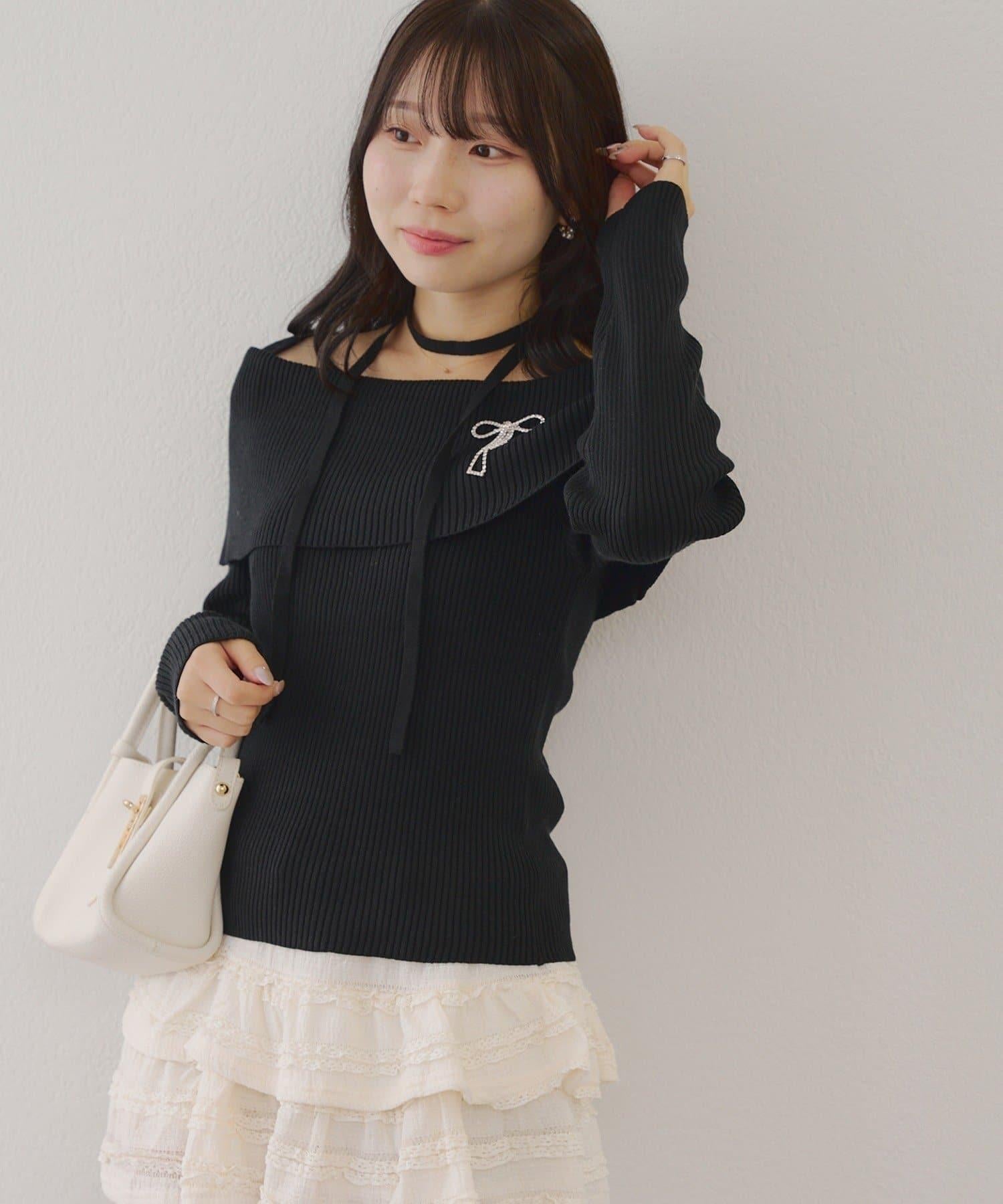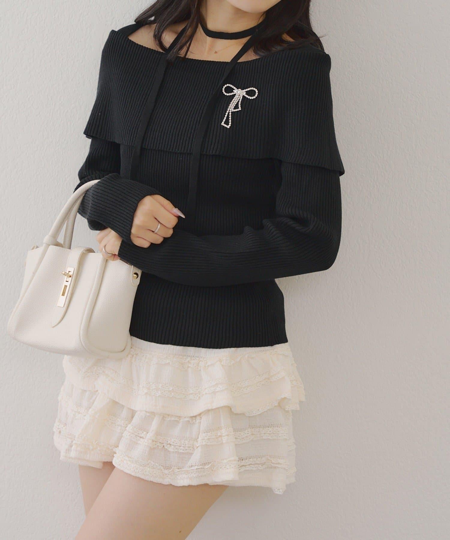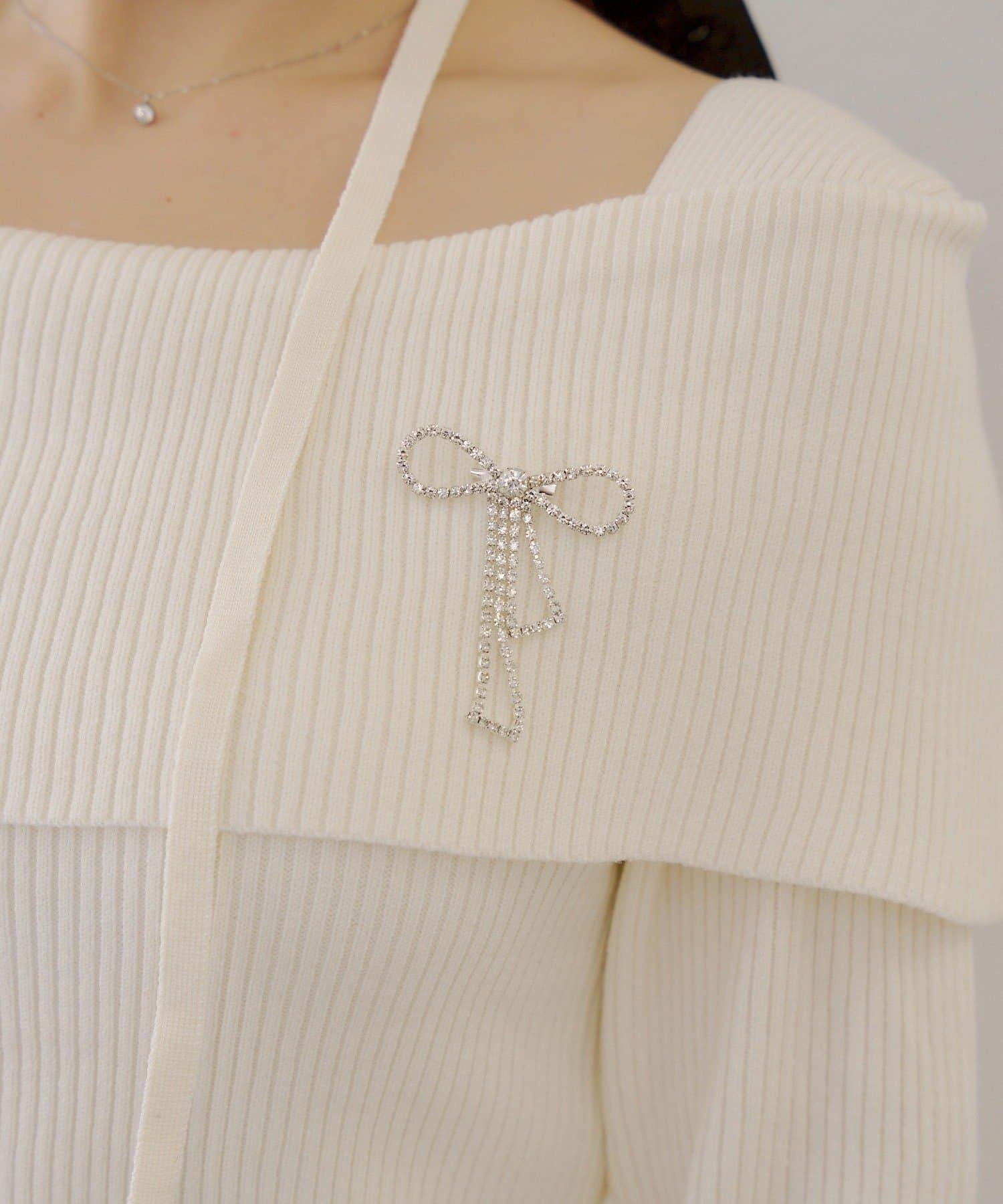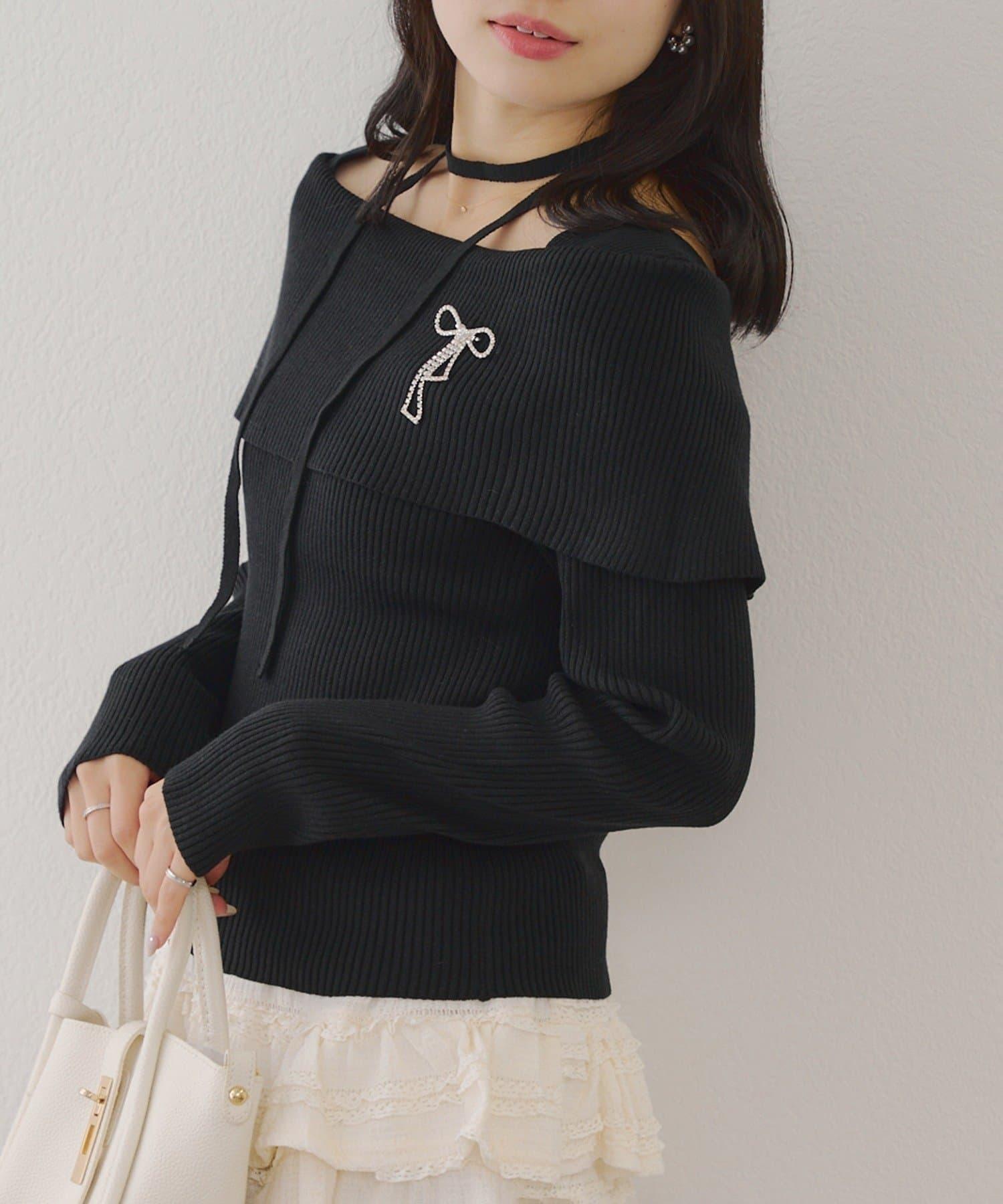 【RMAF】一字肩配胸針針織衫
