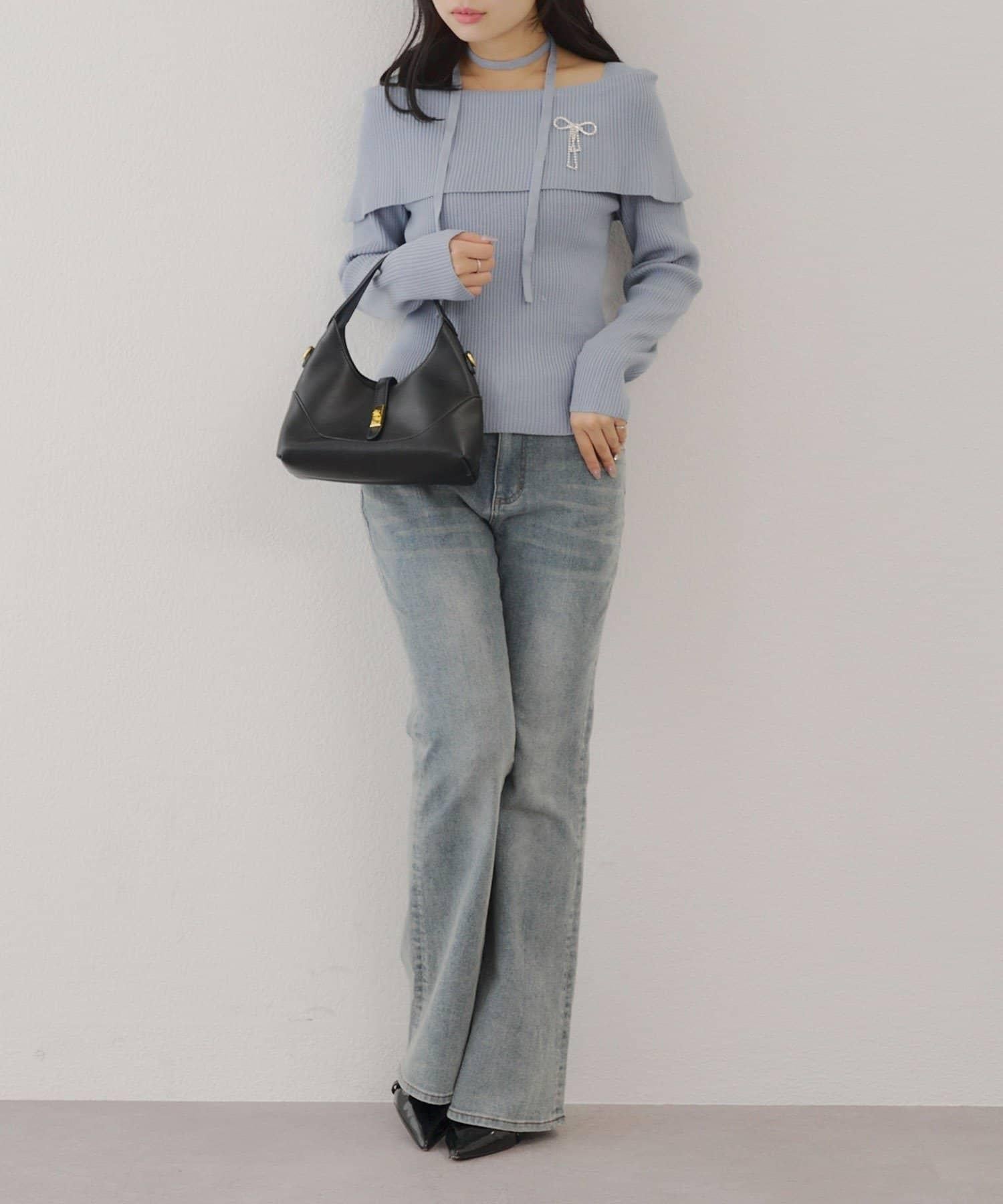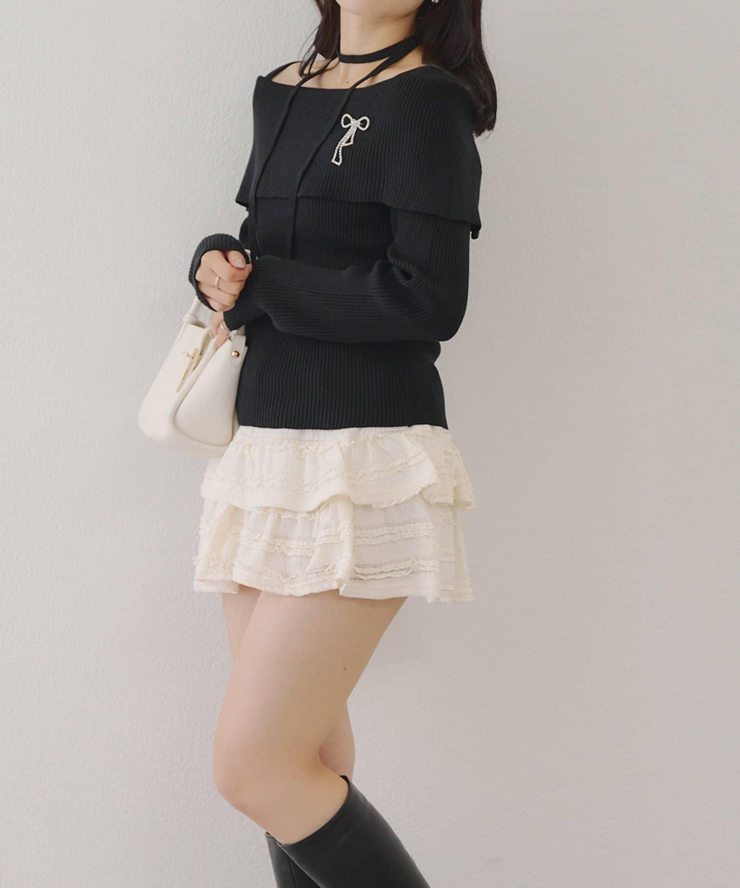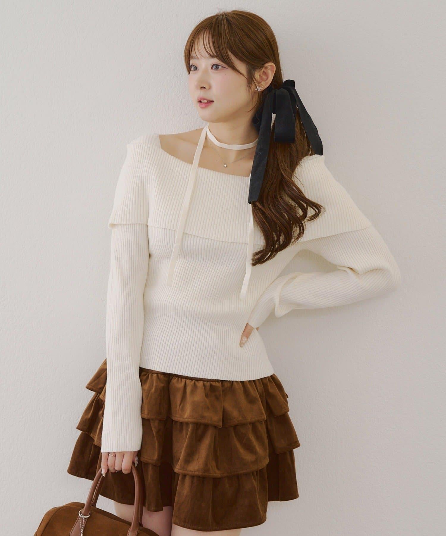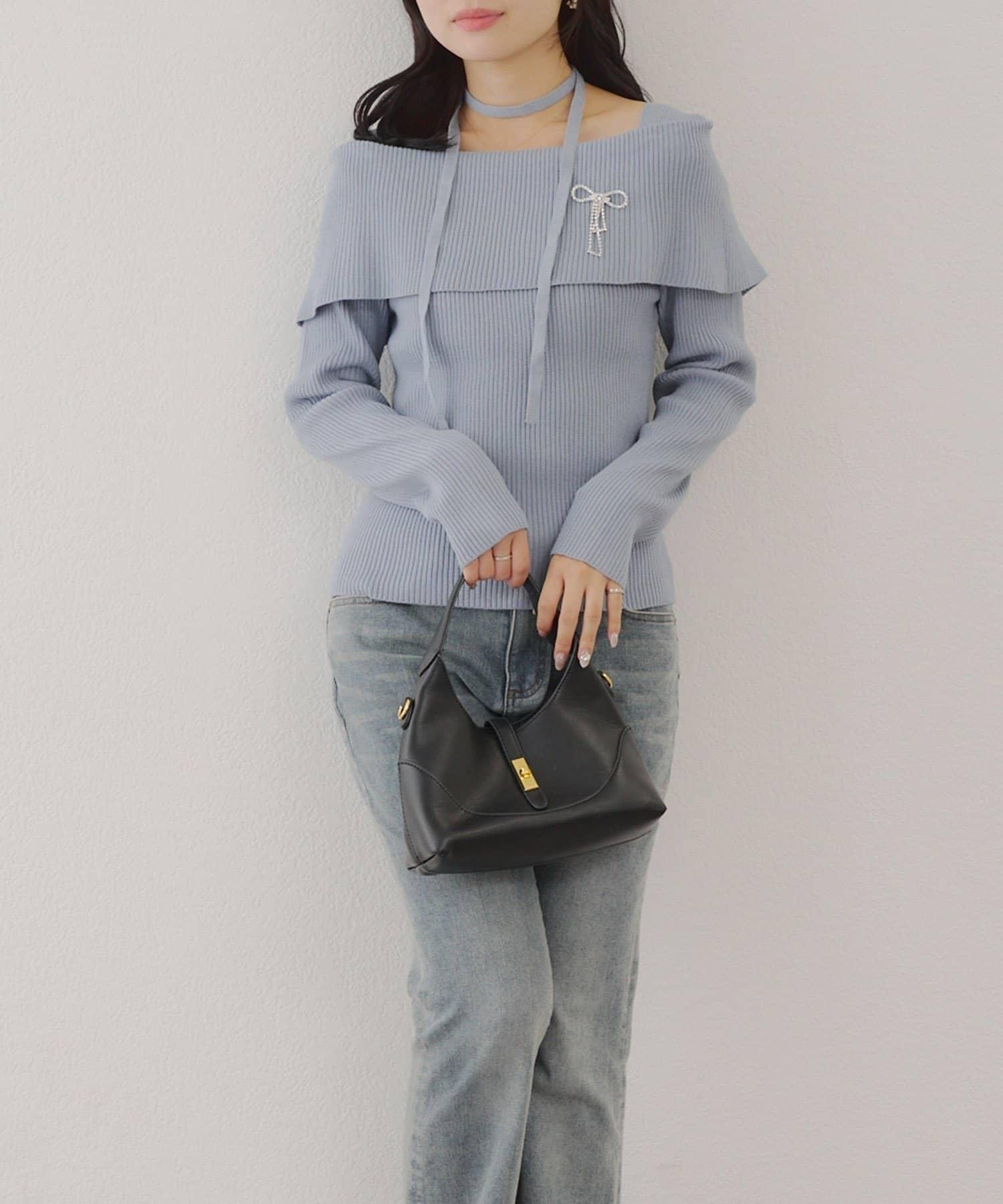 【RMAF】一字肩配胸針針織衫