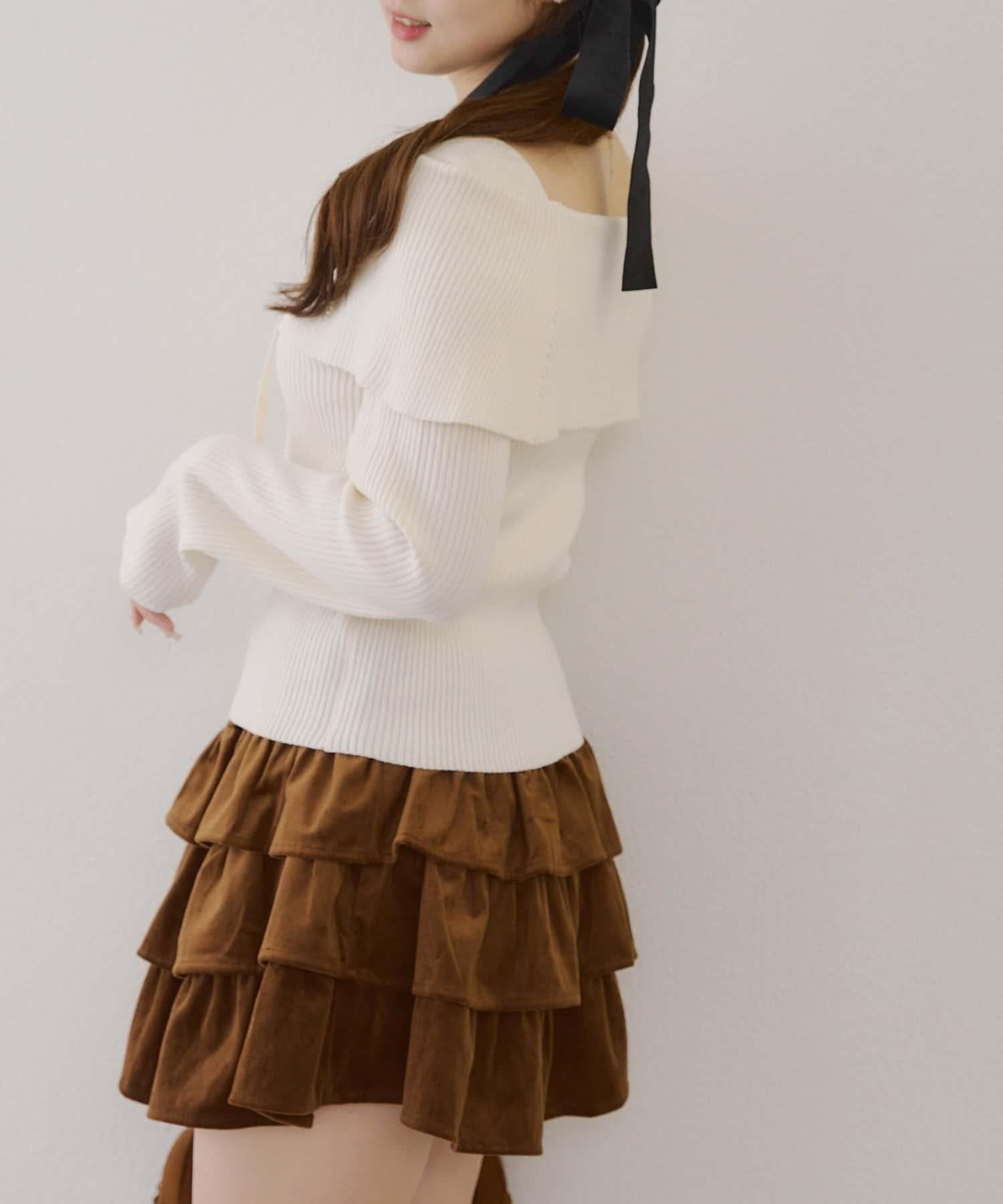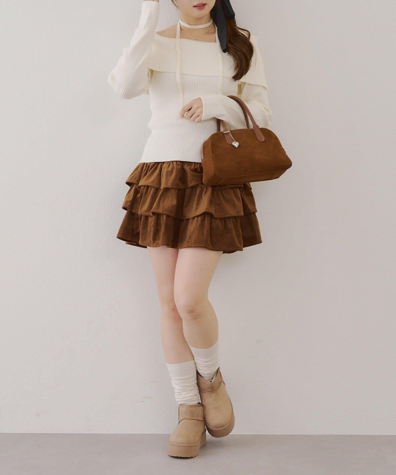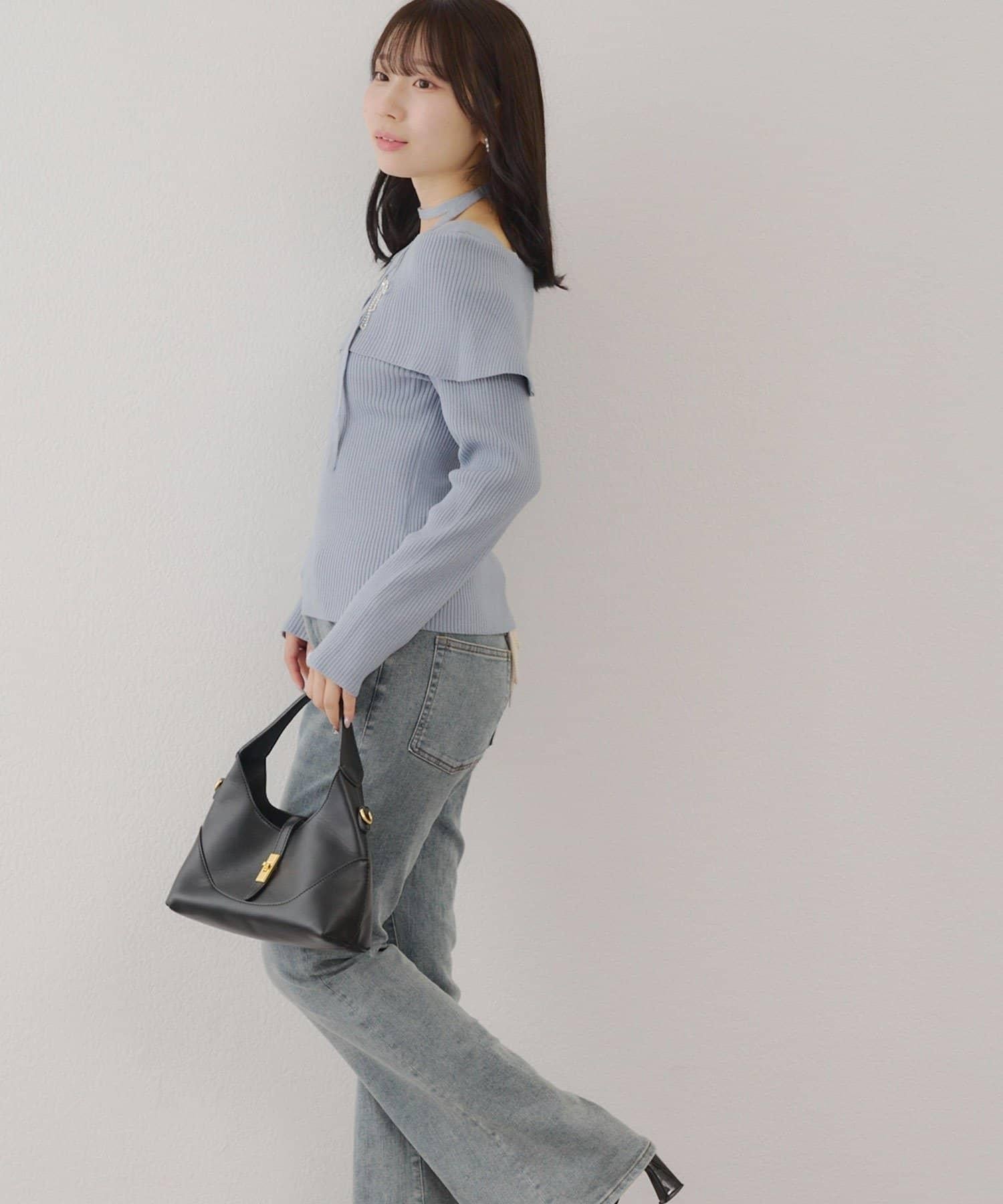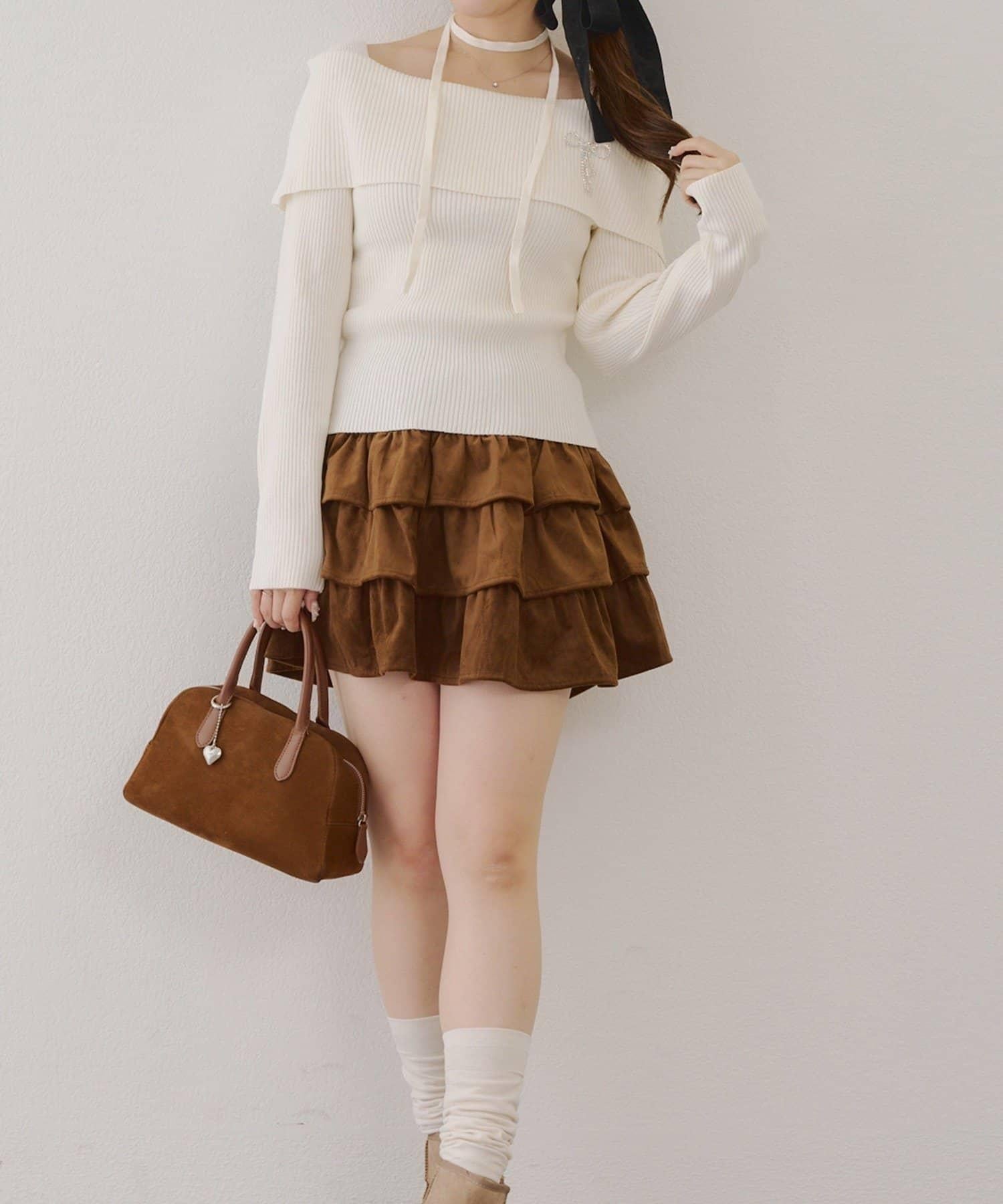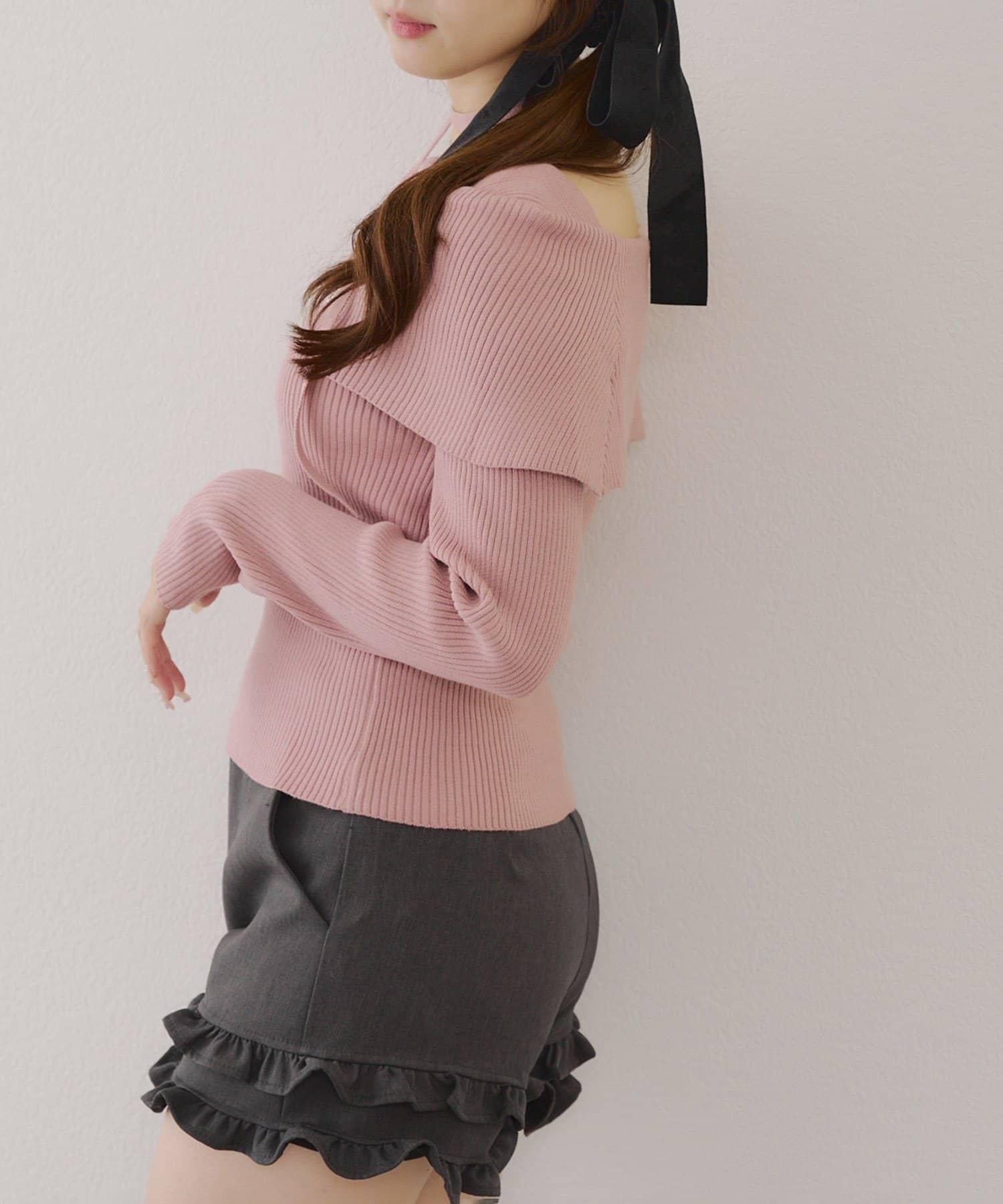 【RMAF】一字肩配胸針針織衫
