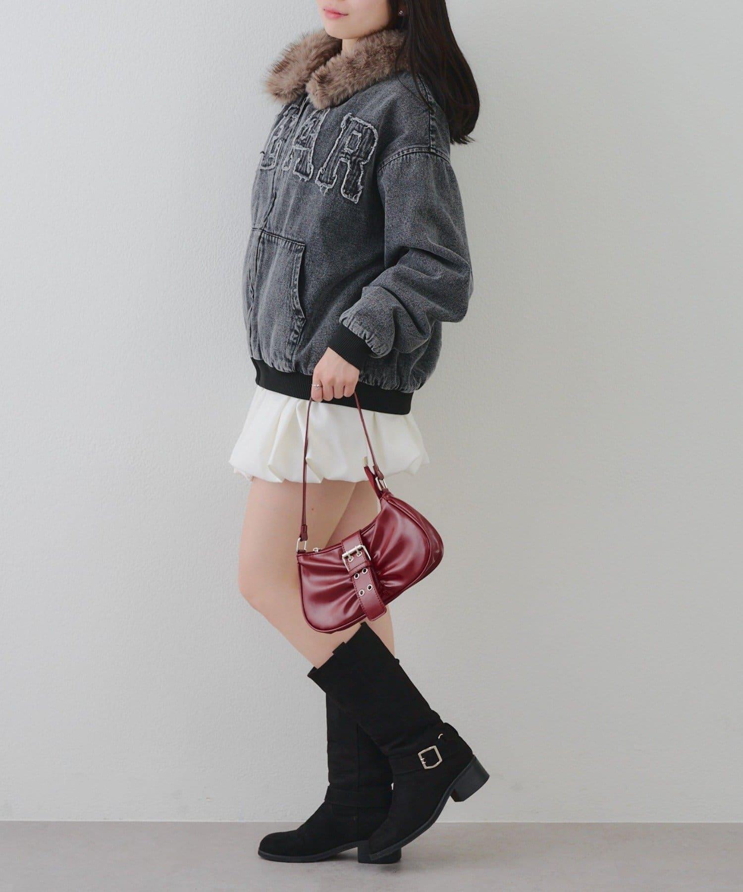 搭配百褶迷你裙和長筒靴,盡顯休閒少女風。