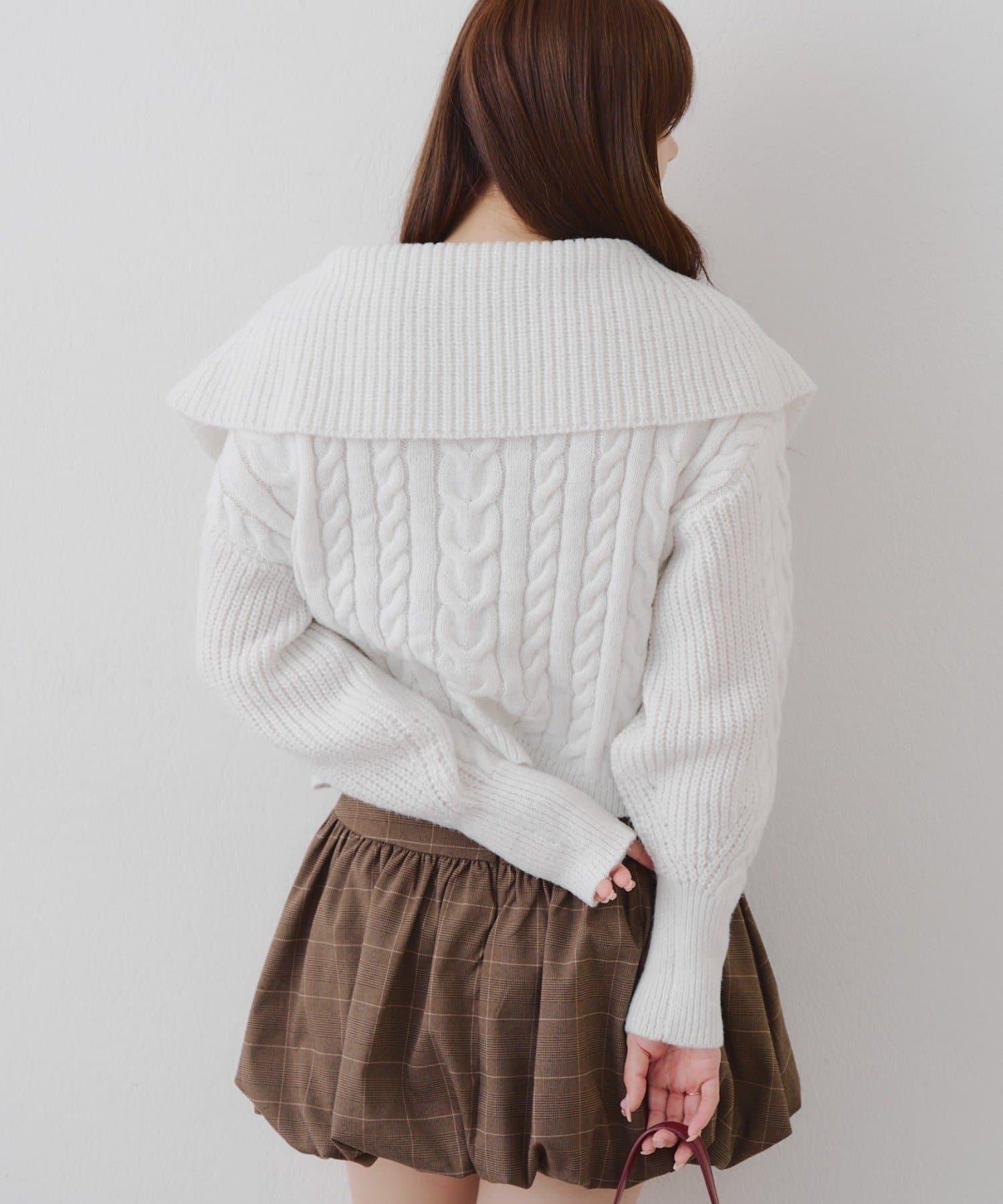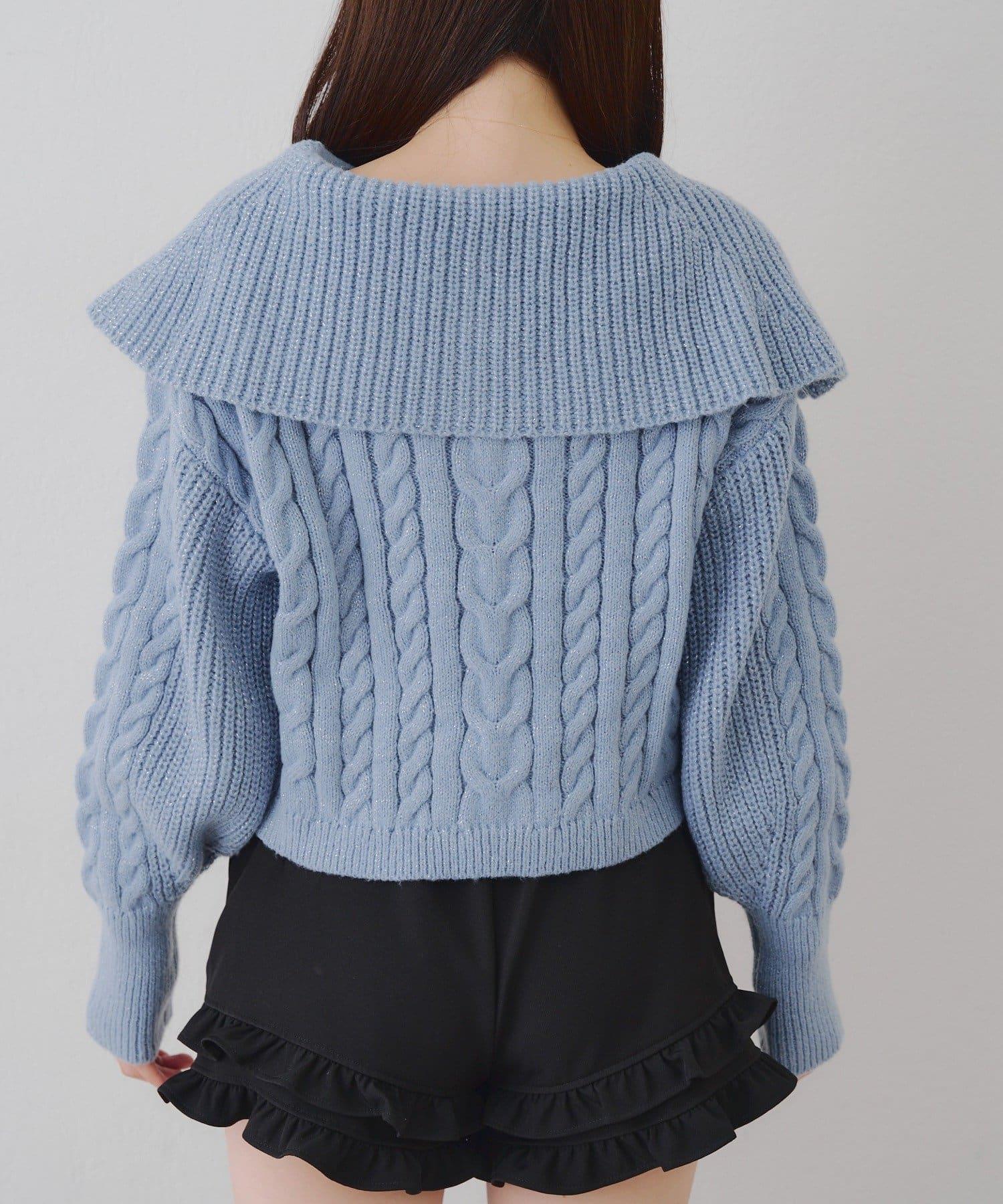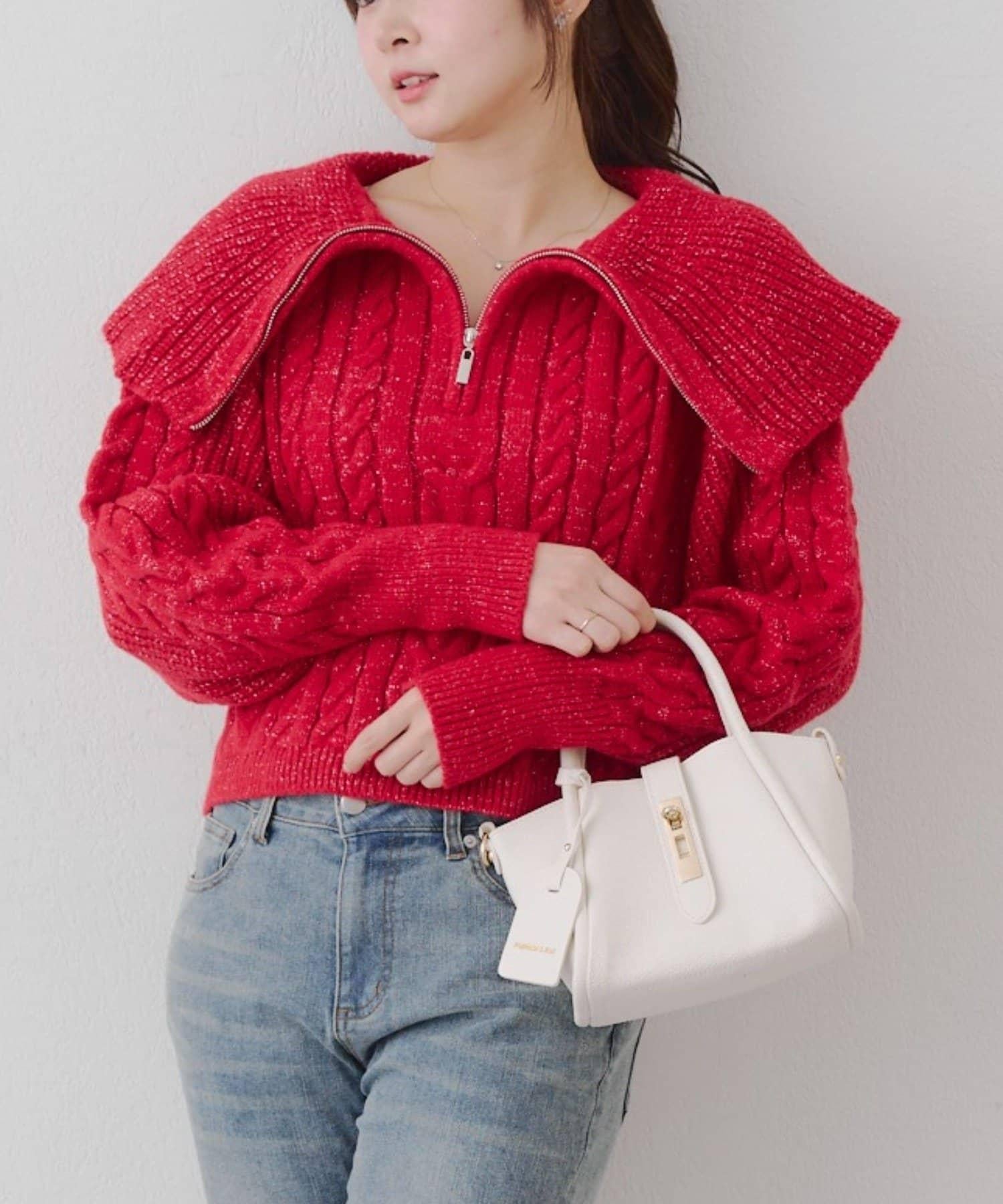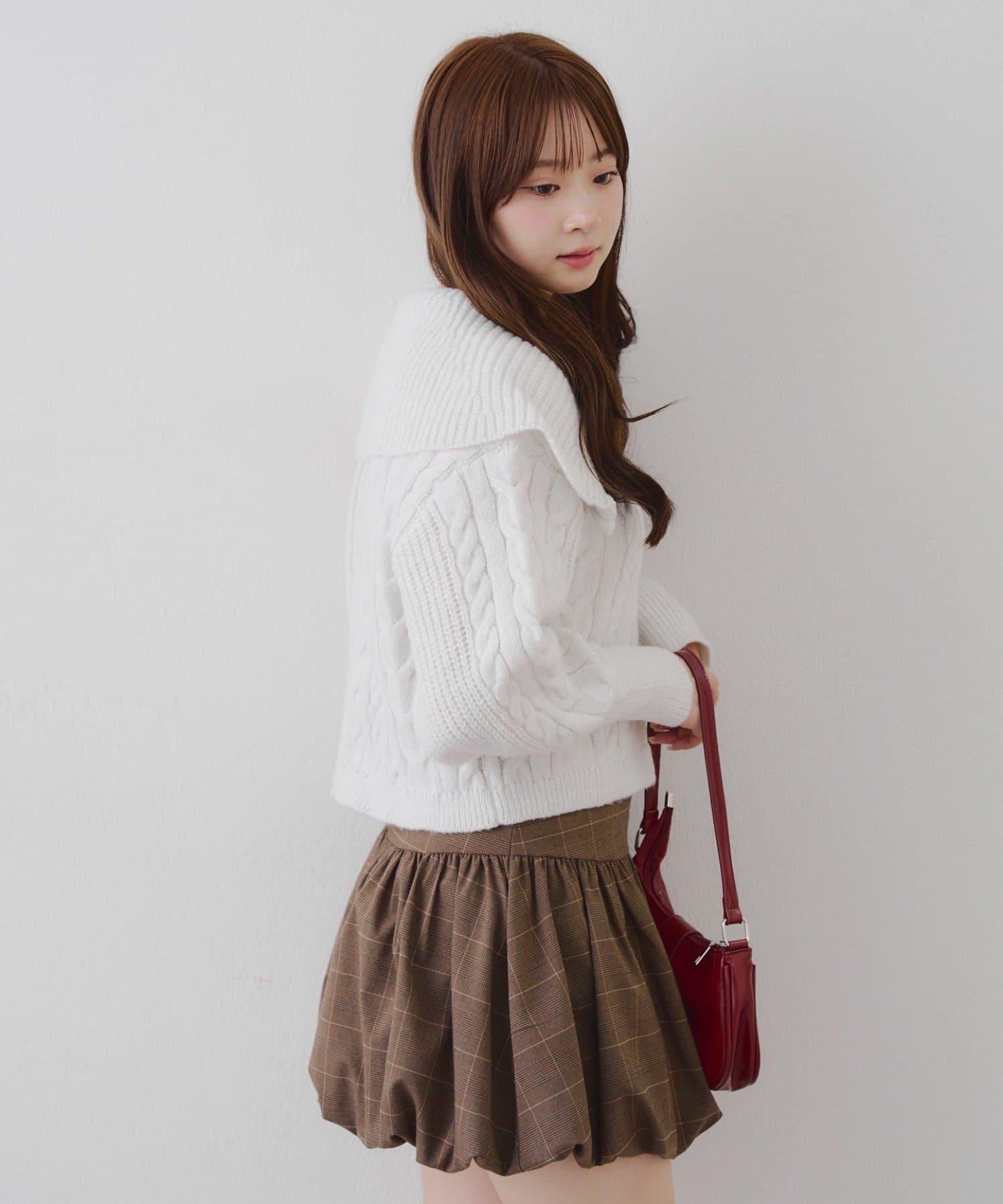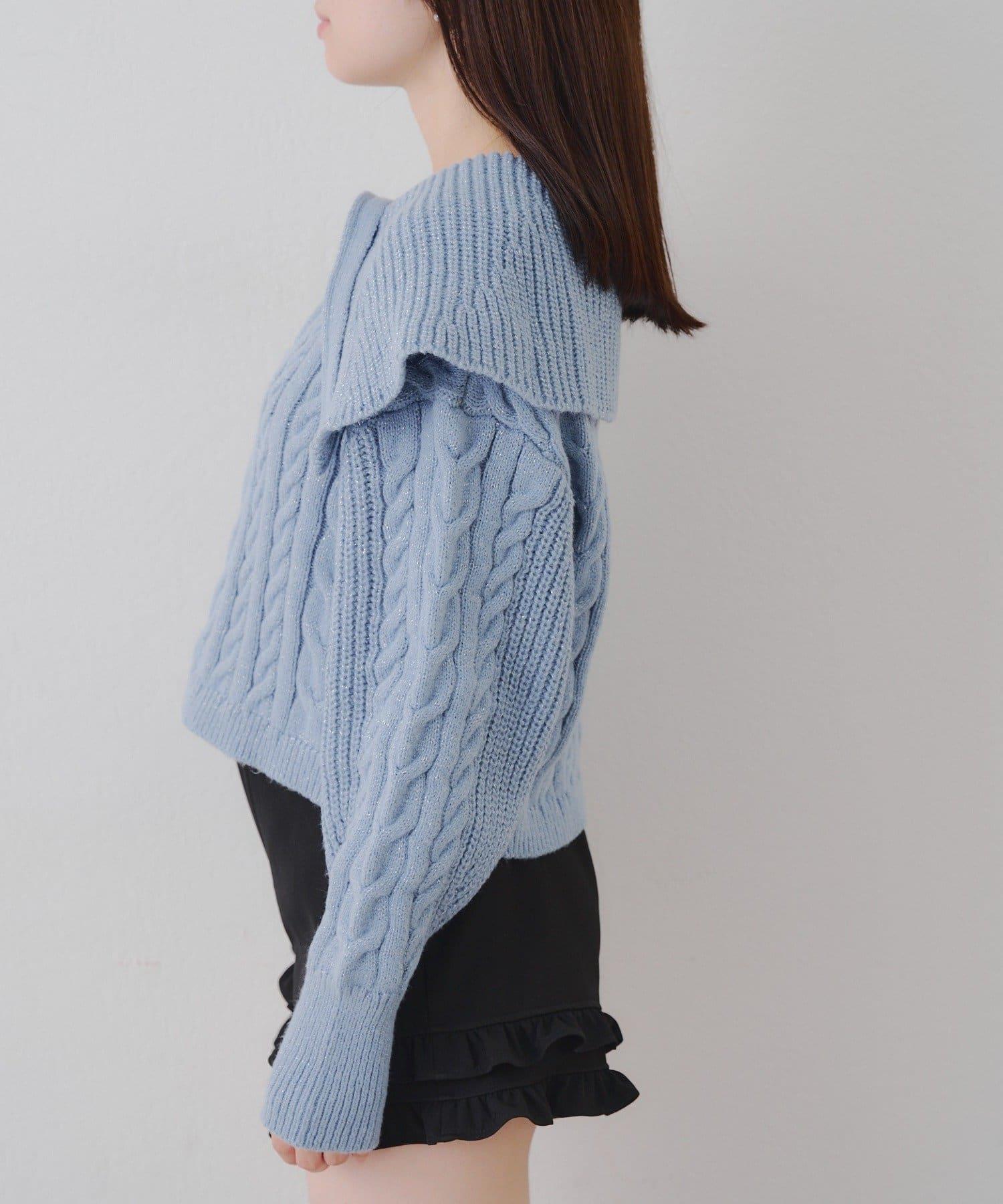 這款針織上衣採用大領設計,具有出色的小臉效果。